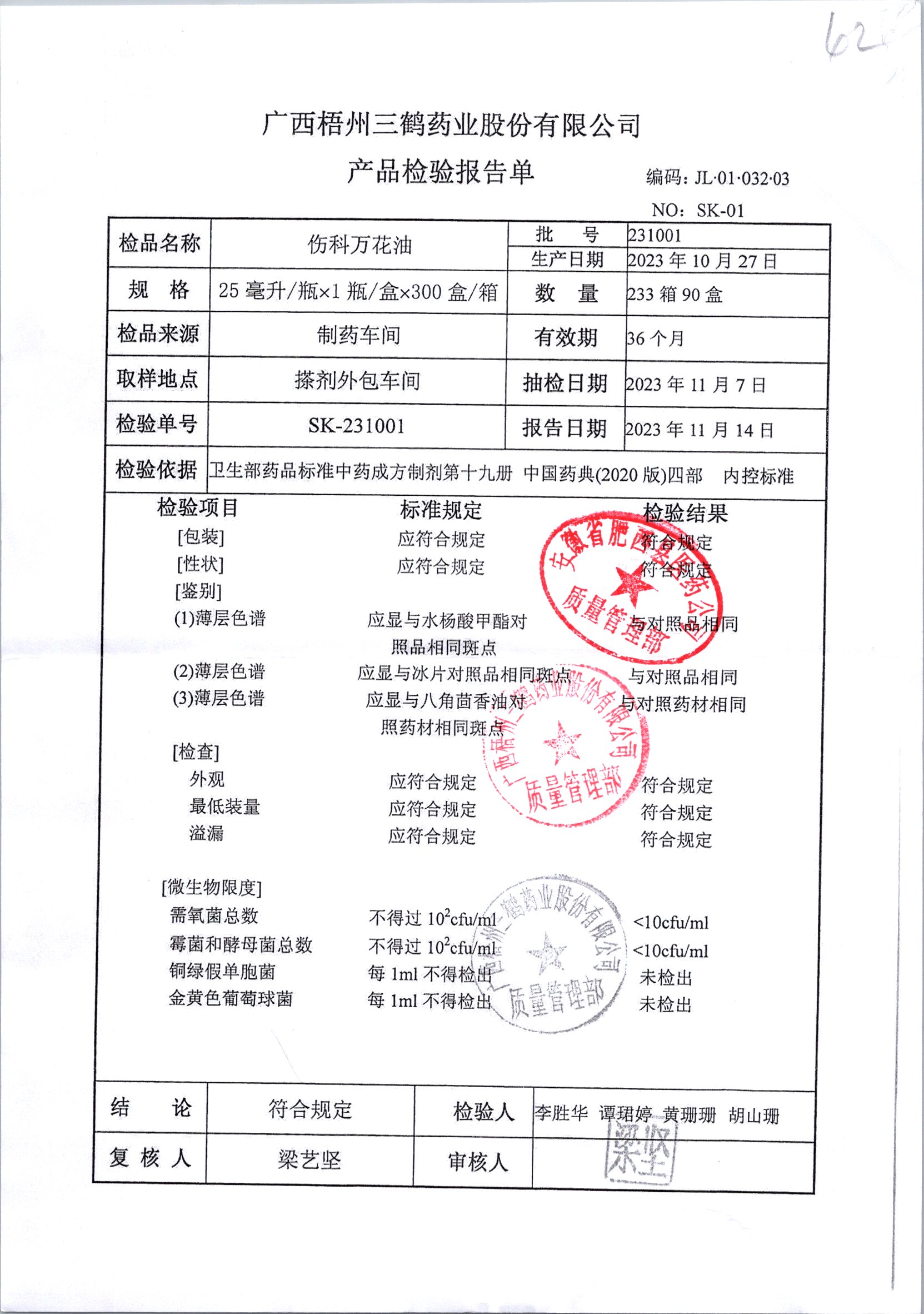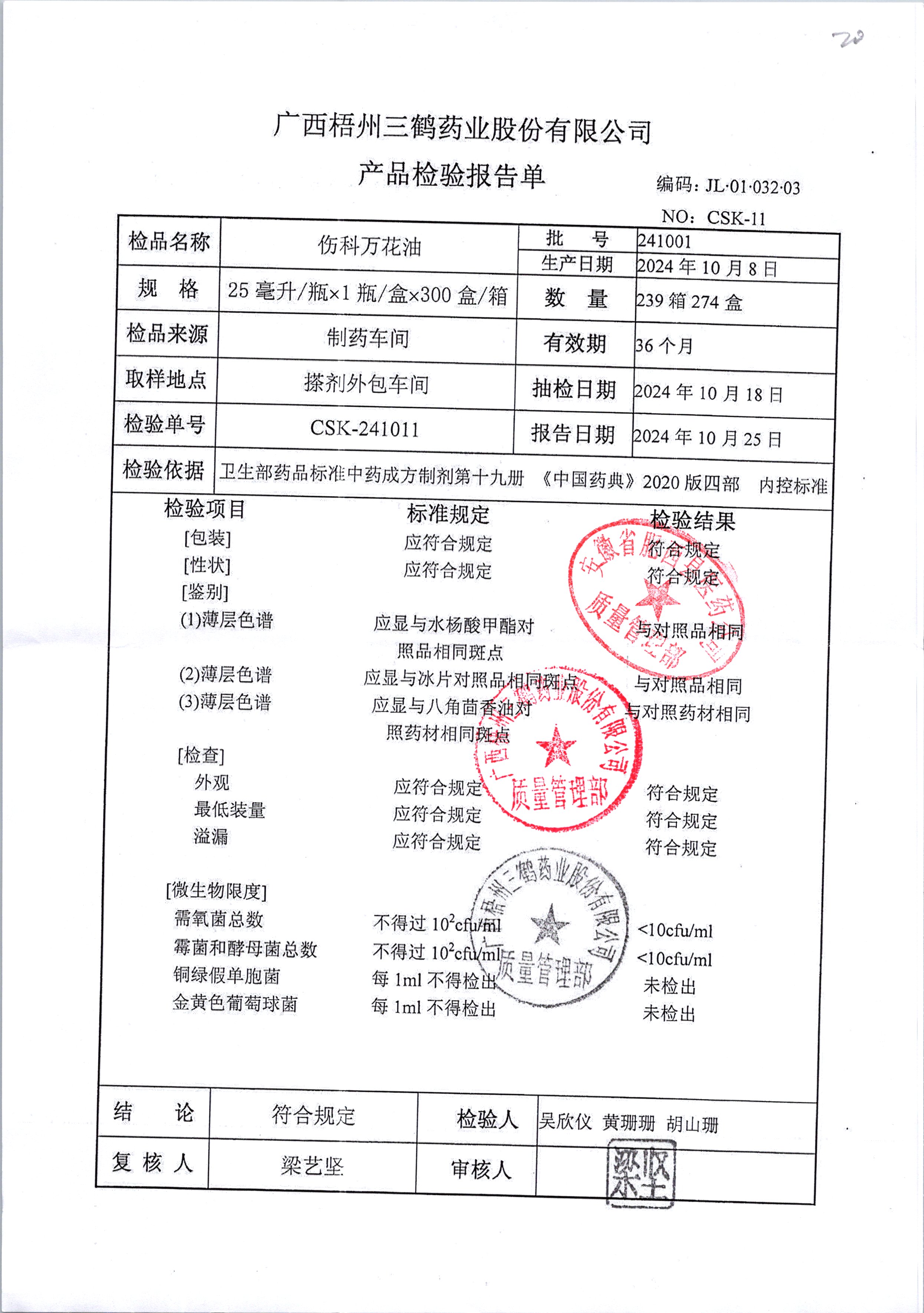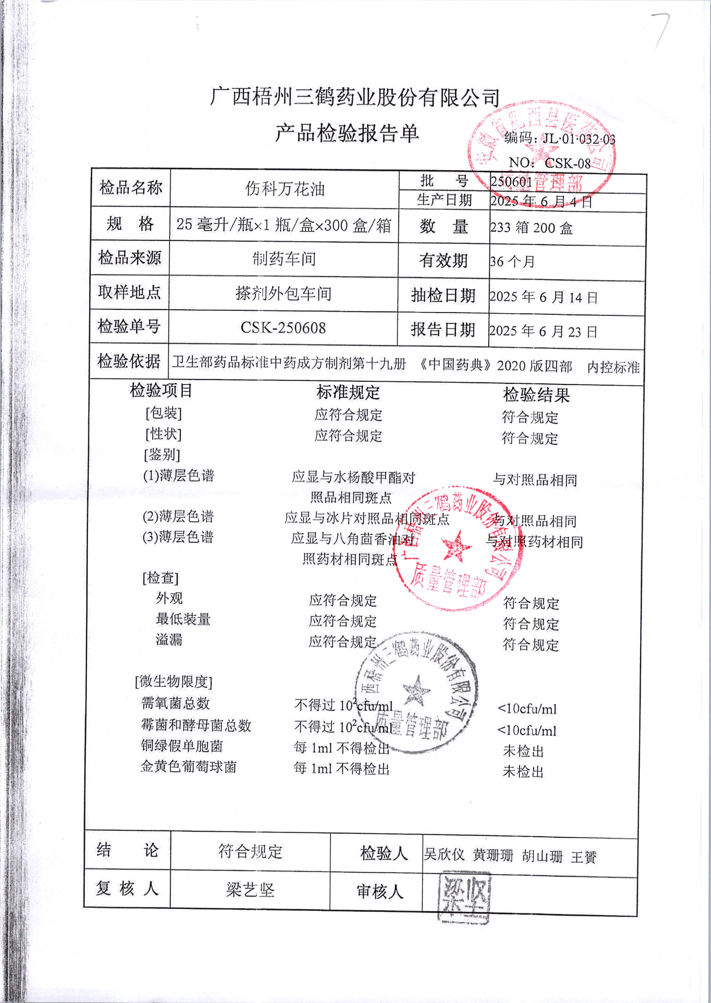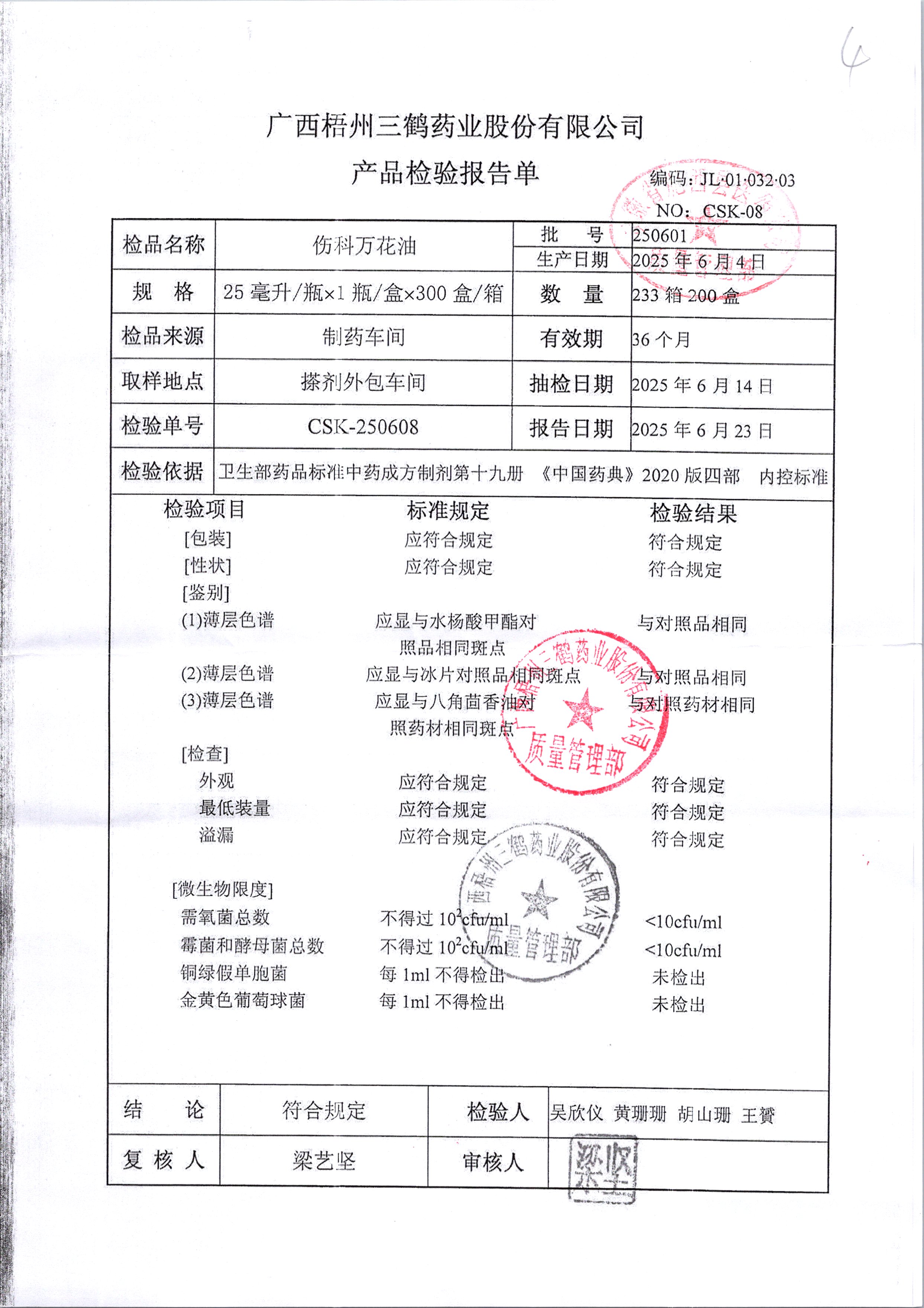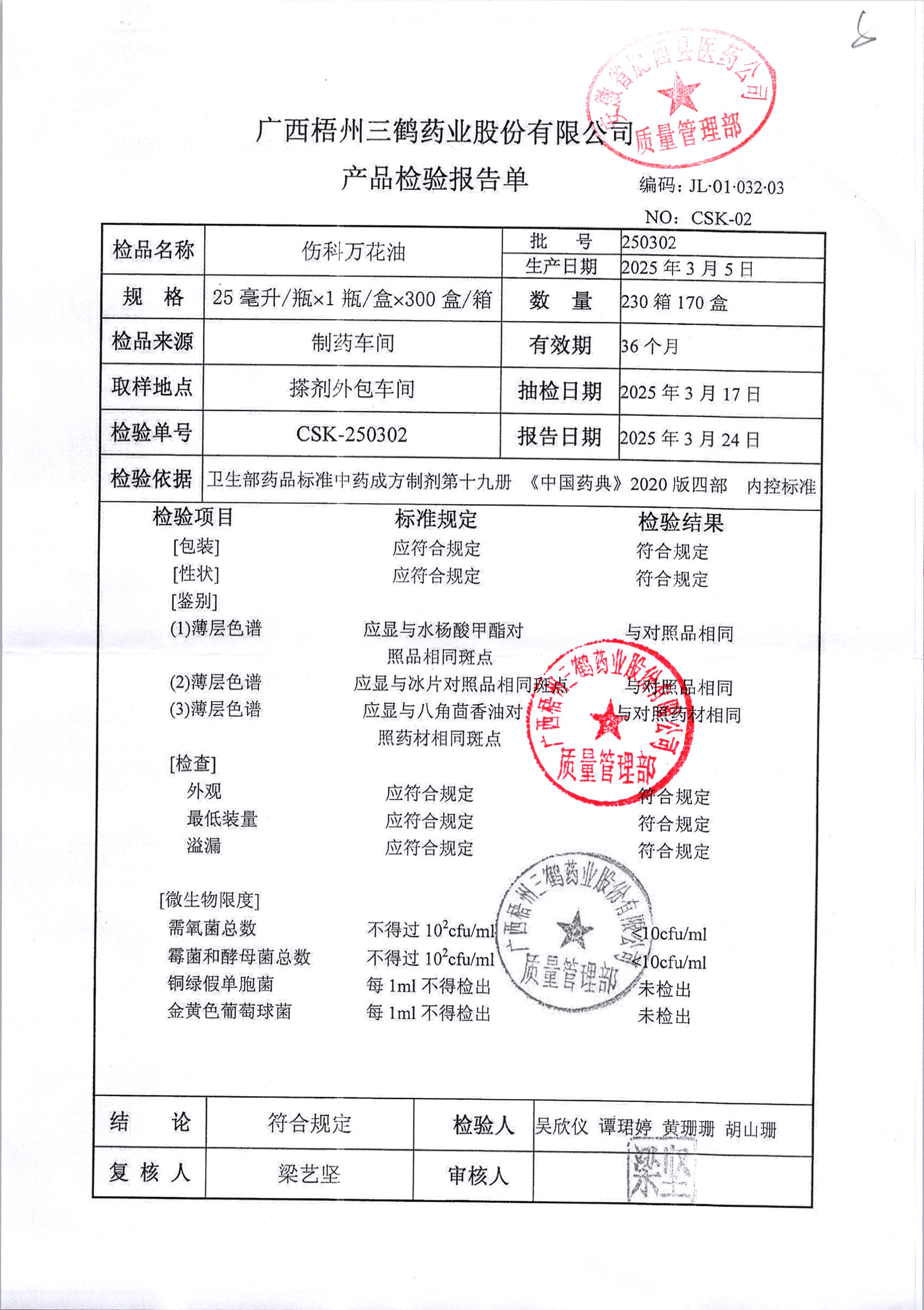 伤科万花油 | 25ml | 240702 | 查看详情 |