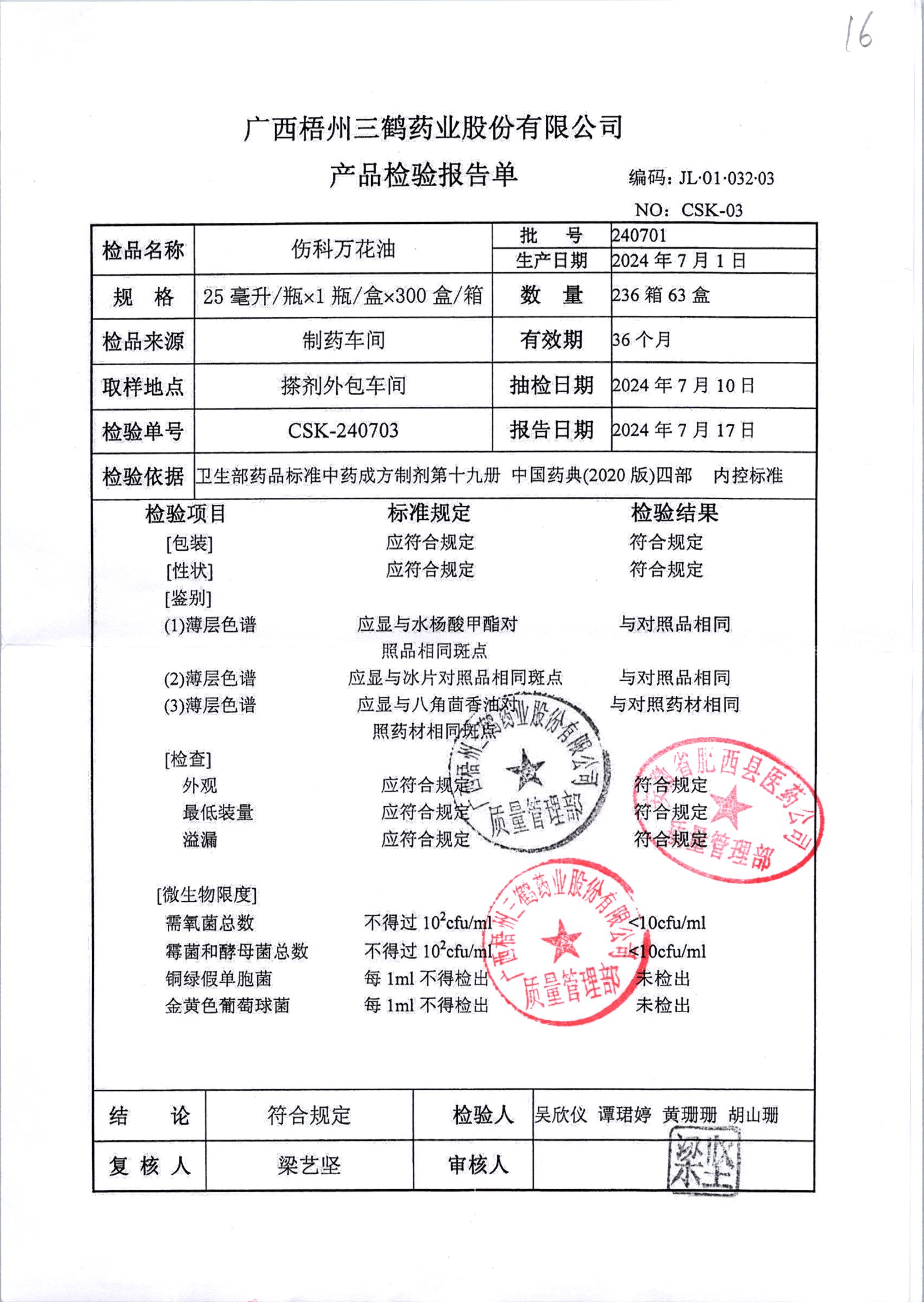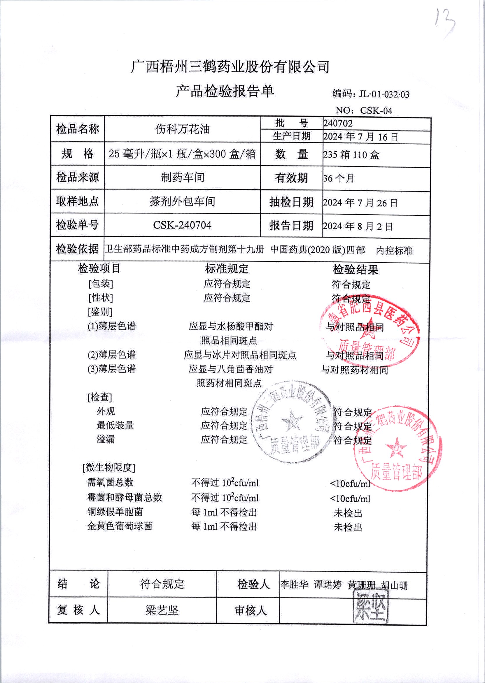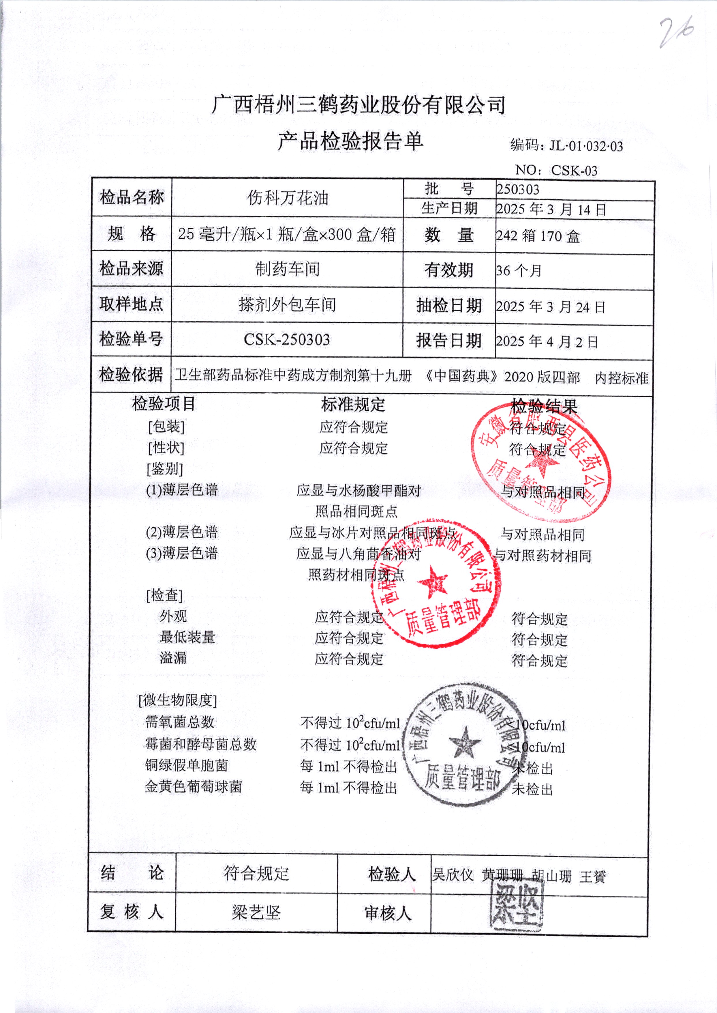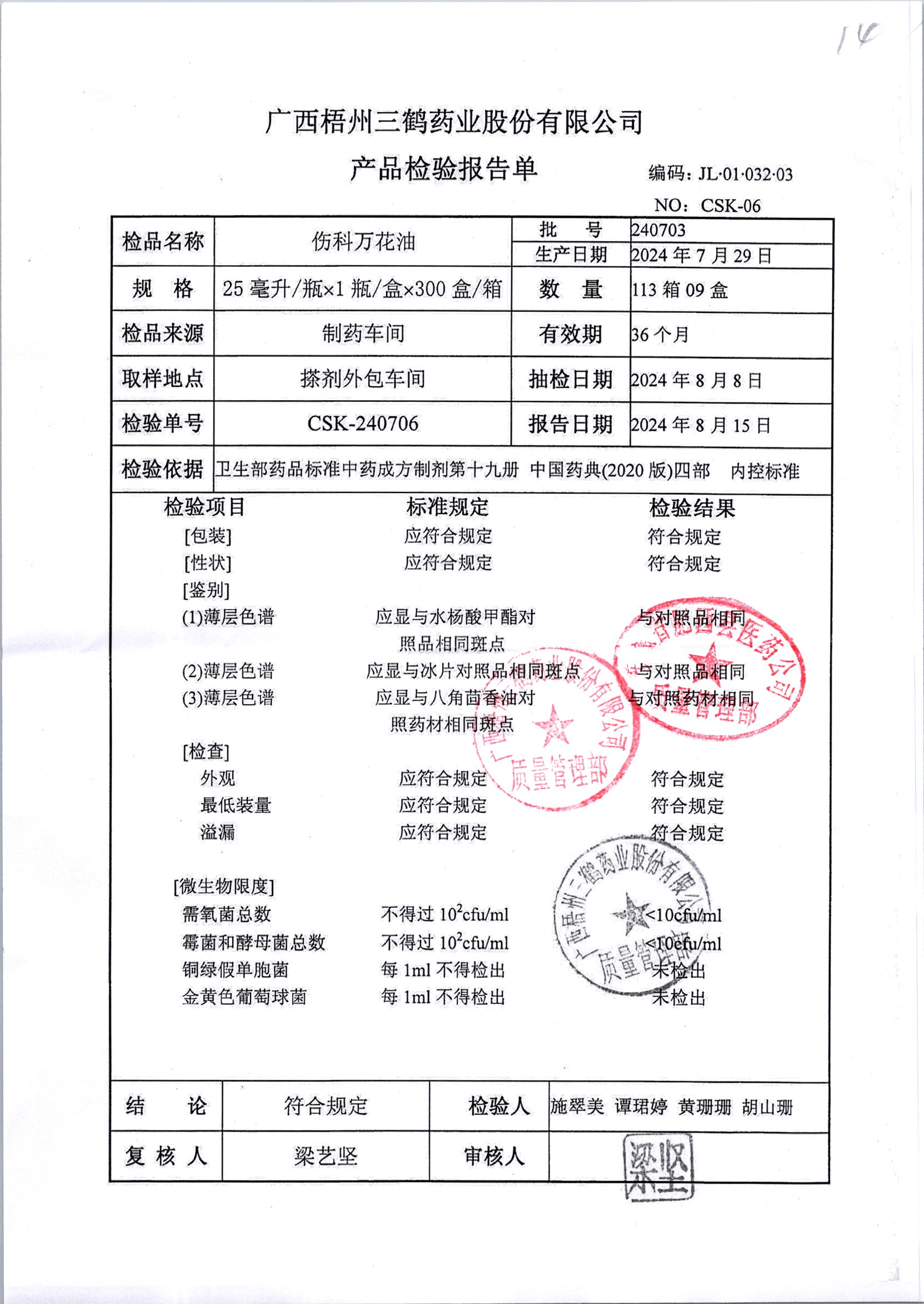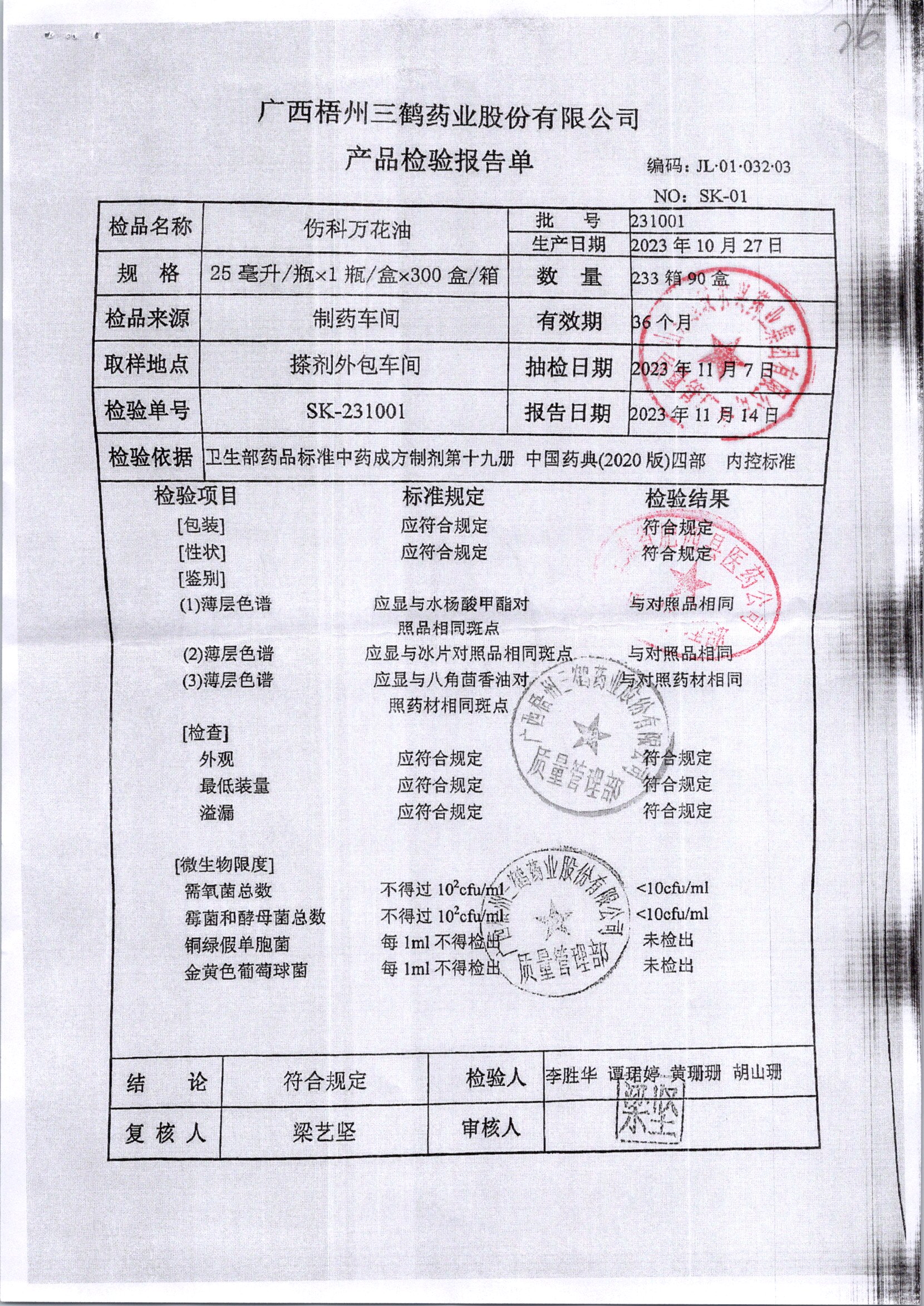 伤科万花油 | 25ml | 240703 | 查看详情 |
