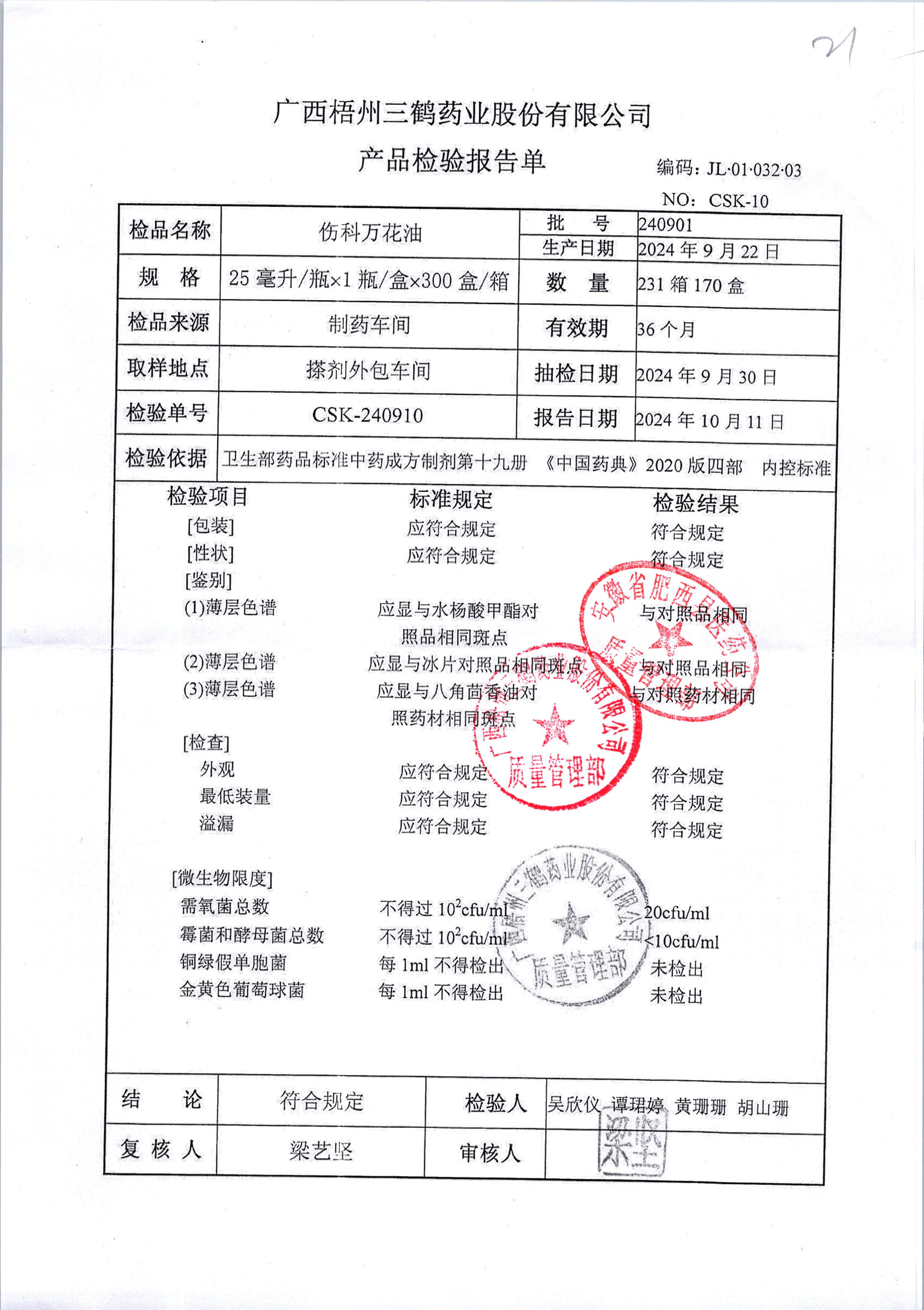伤科万花油 | 25ml | 240901 | 查看详情 |
