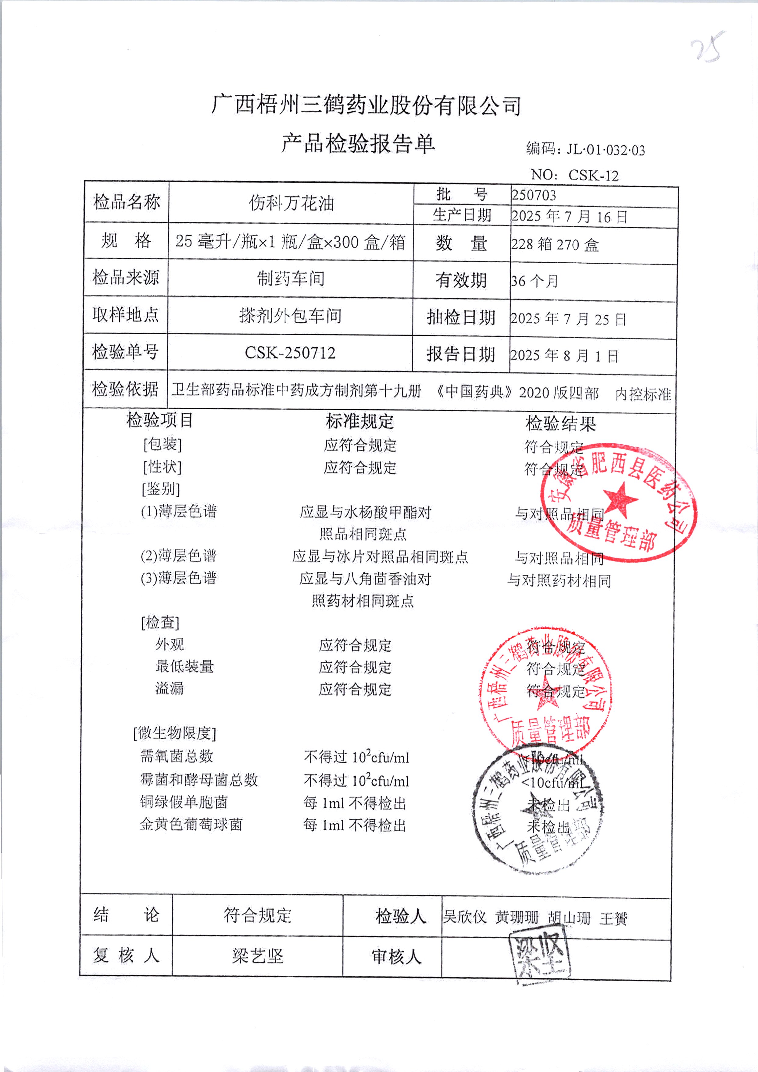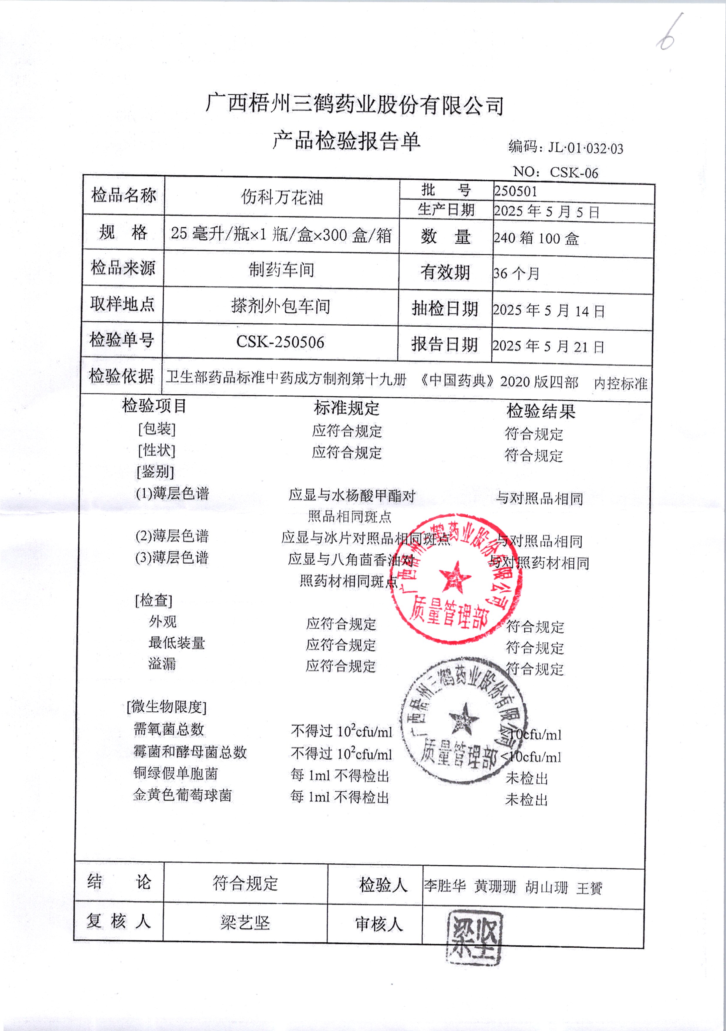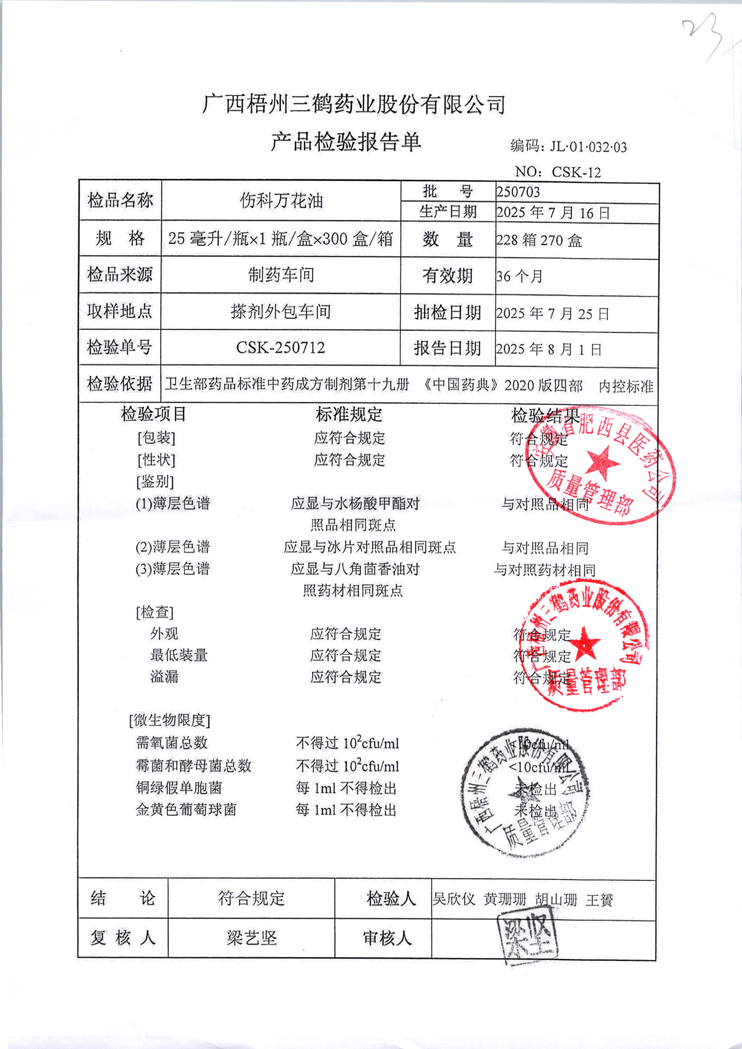 伤科万花油 | 25ml | 250703 | 查看详情 |