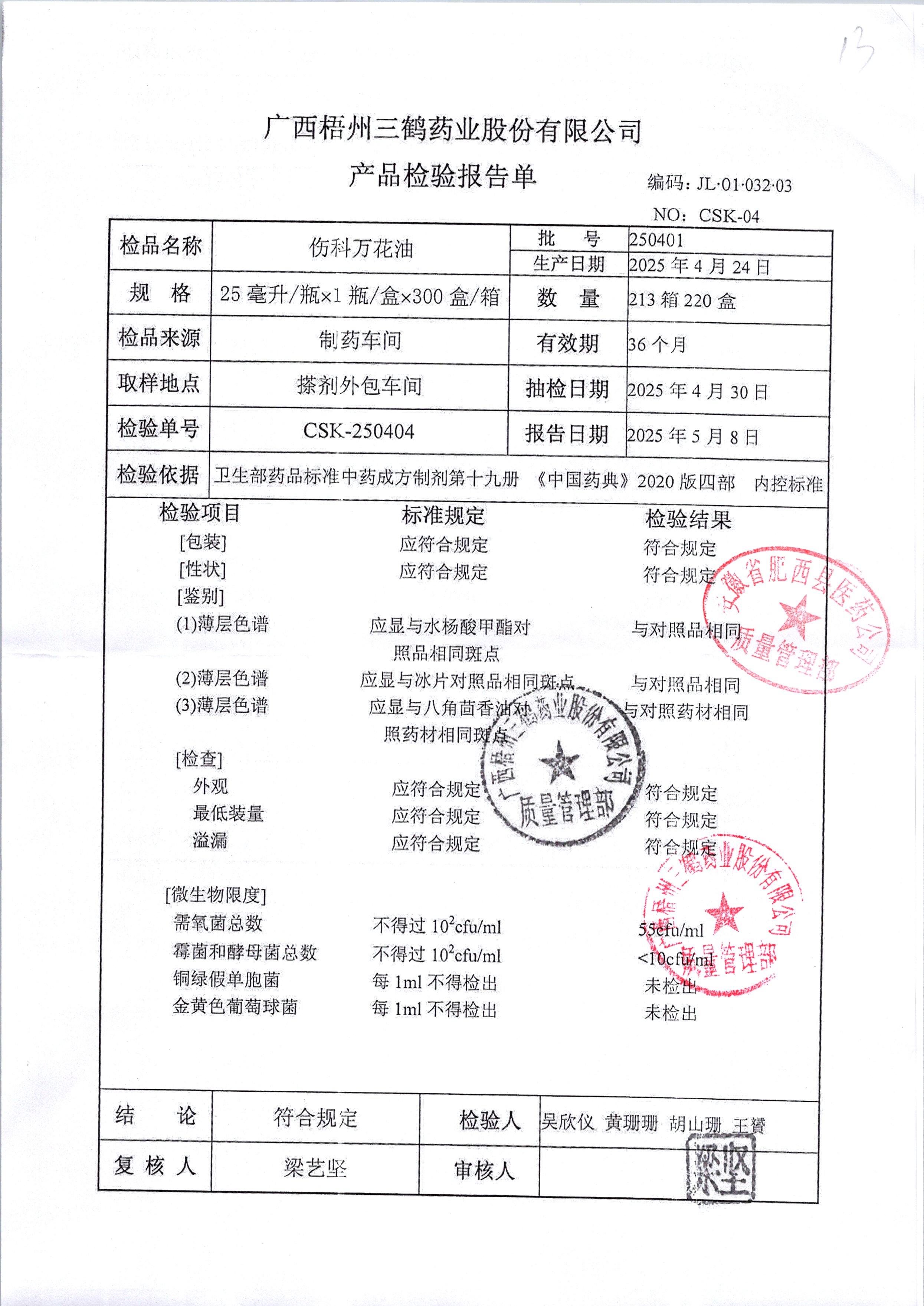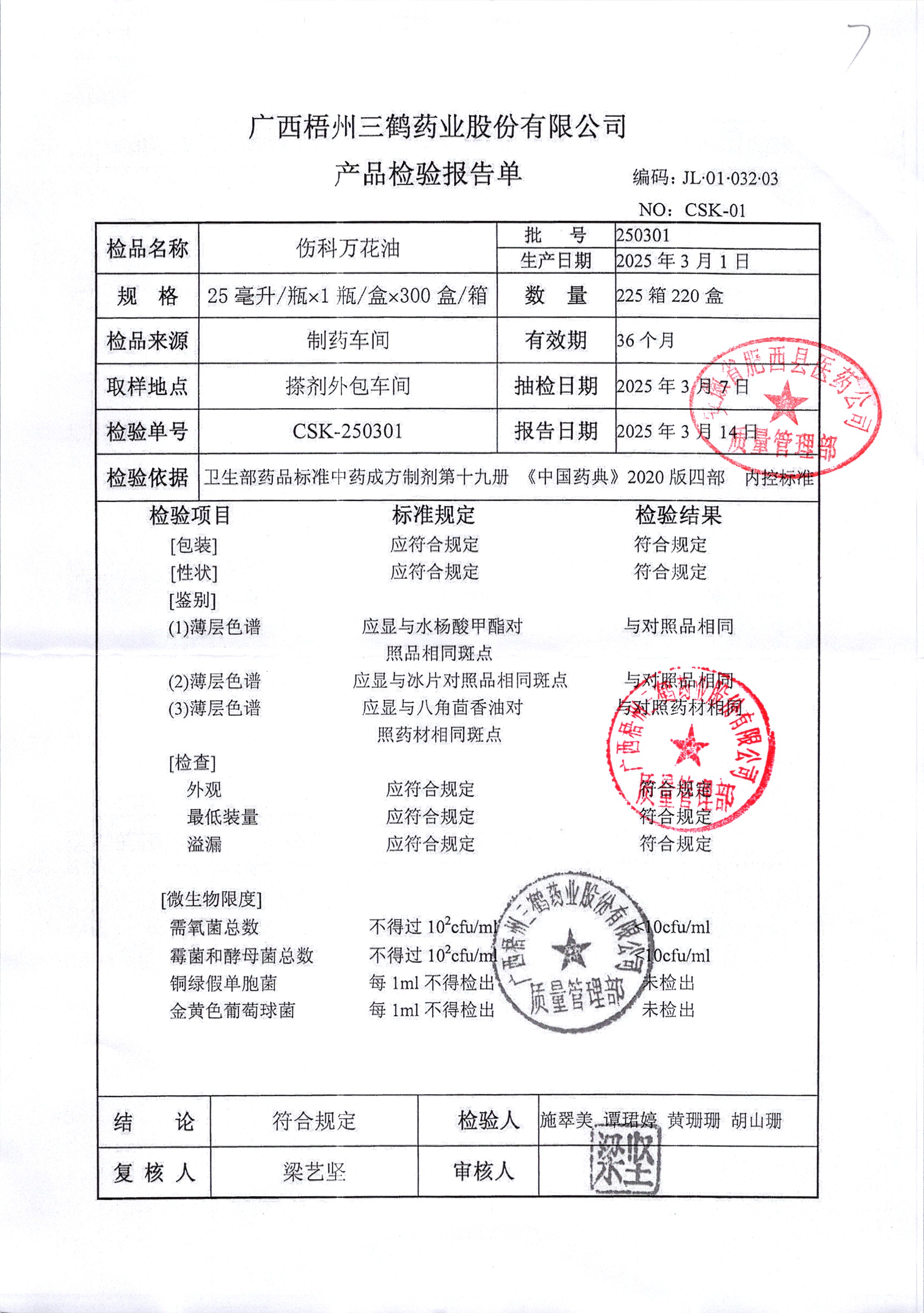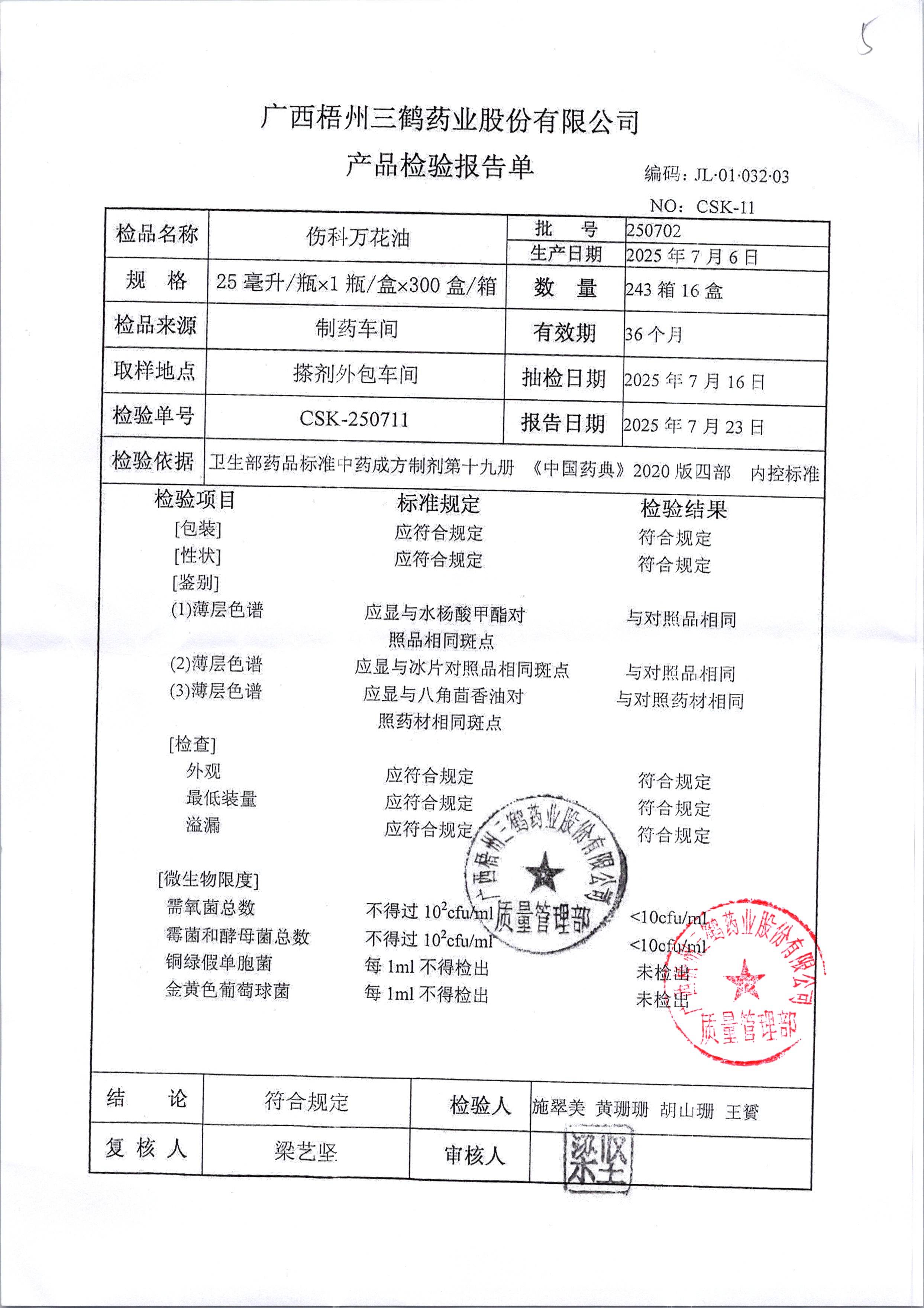 伤科万花油 | 25ml | 250703 | 查看详情 |