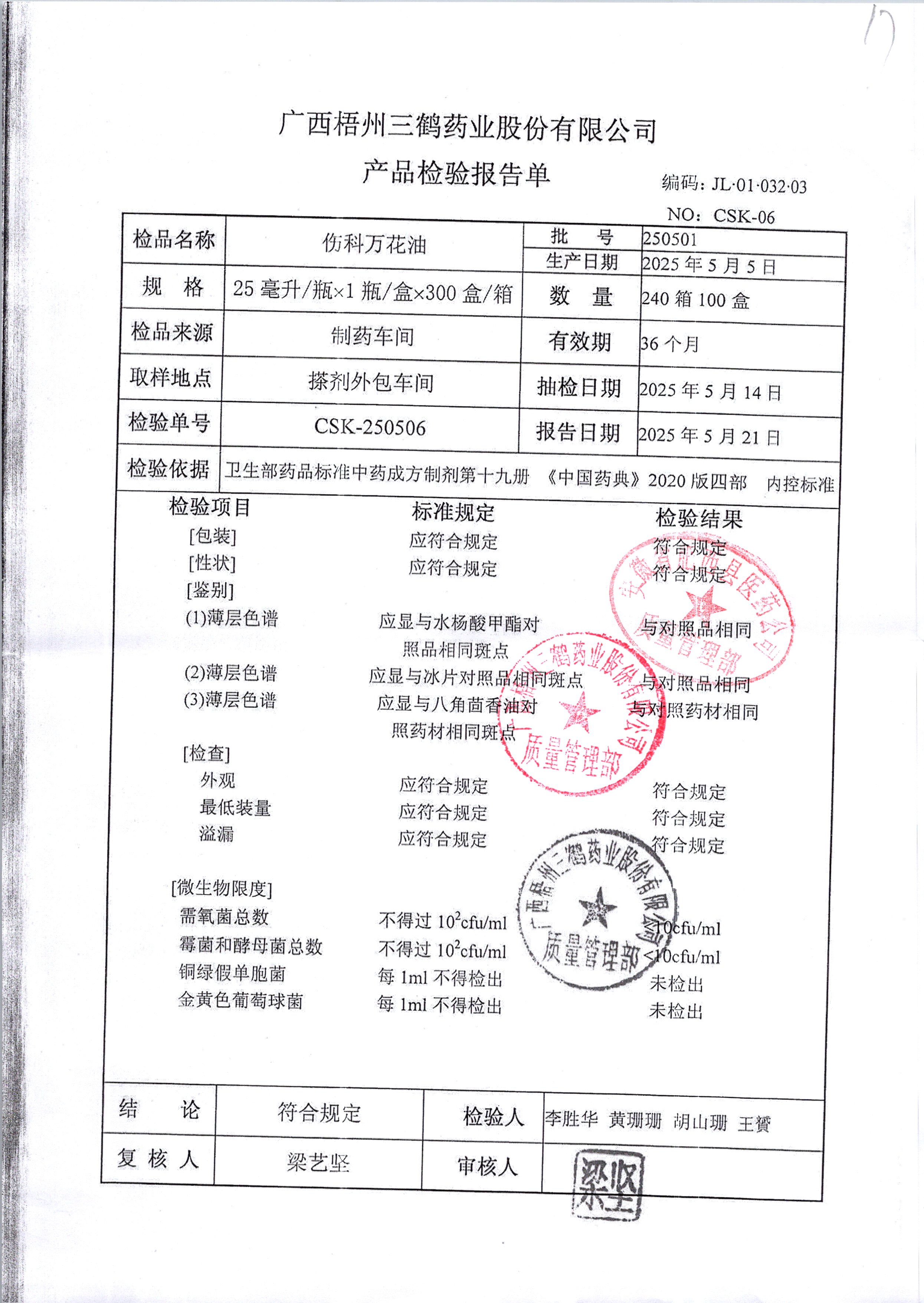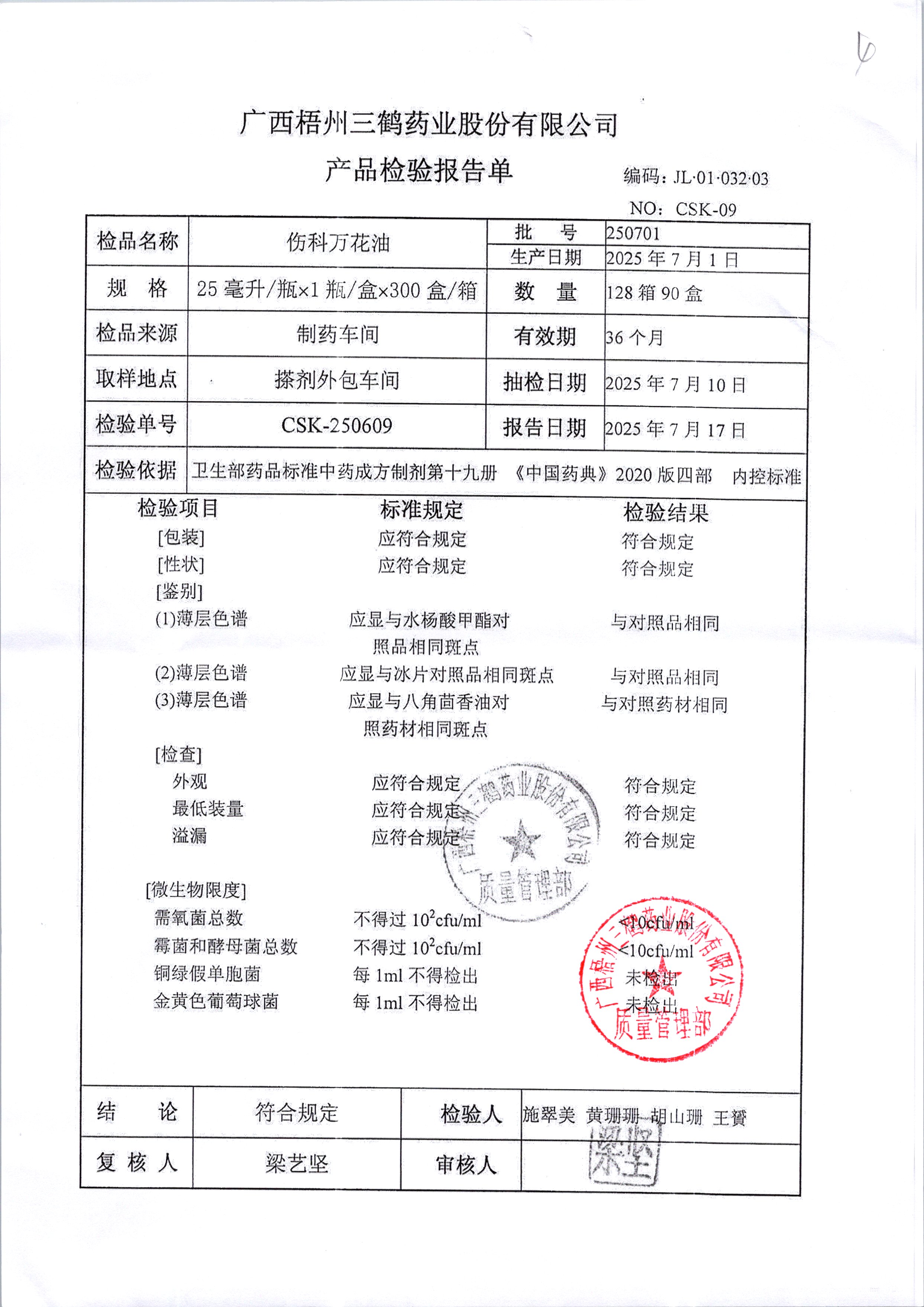 伤科万花油 | 25ml | 250701 | 查看详情 |