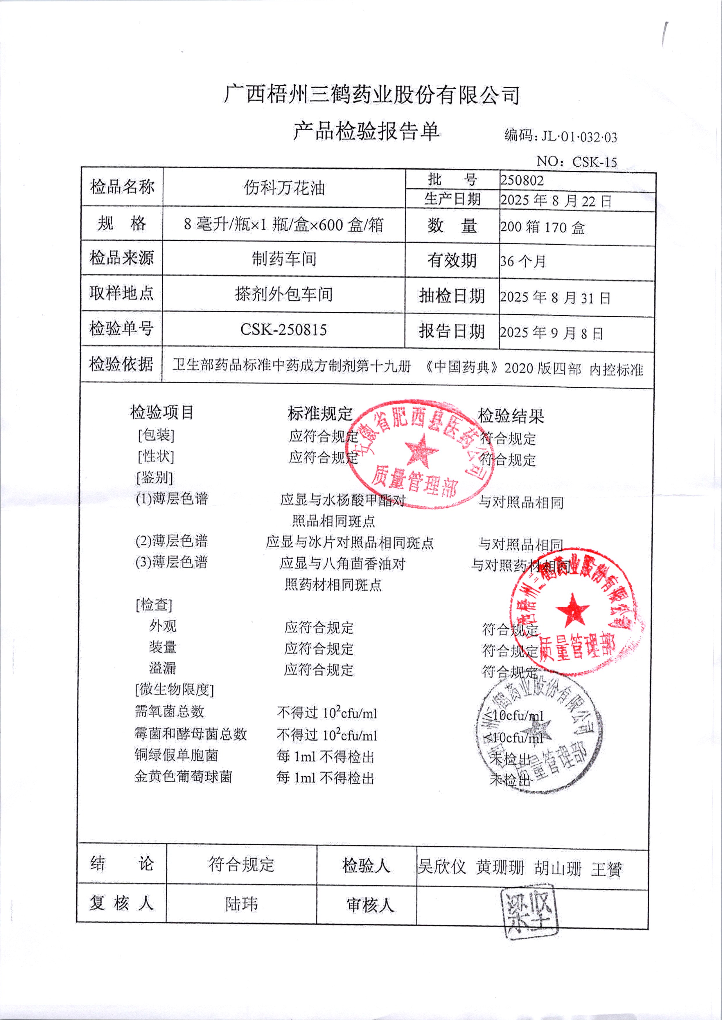 伤科万花油 | 25ml | 250802 | 查看详情 |