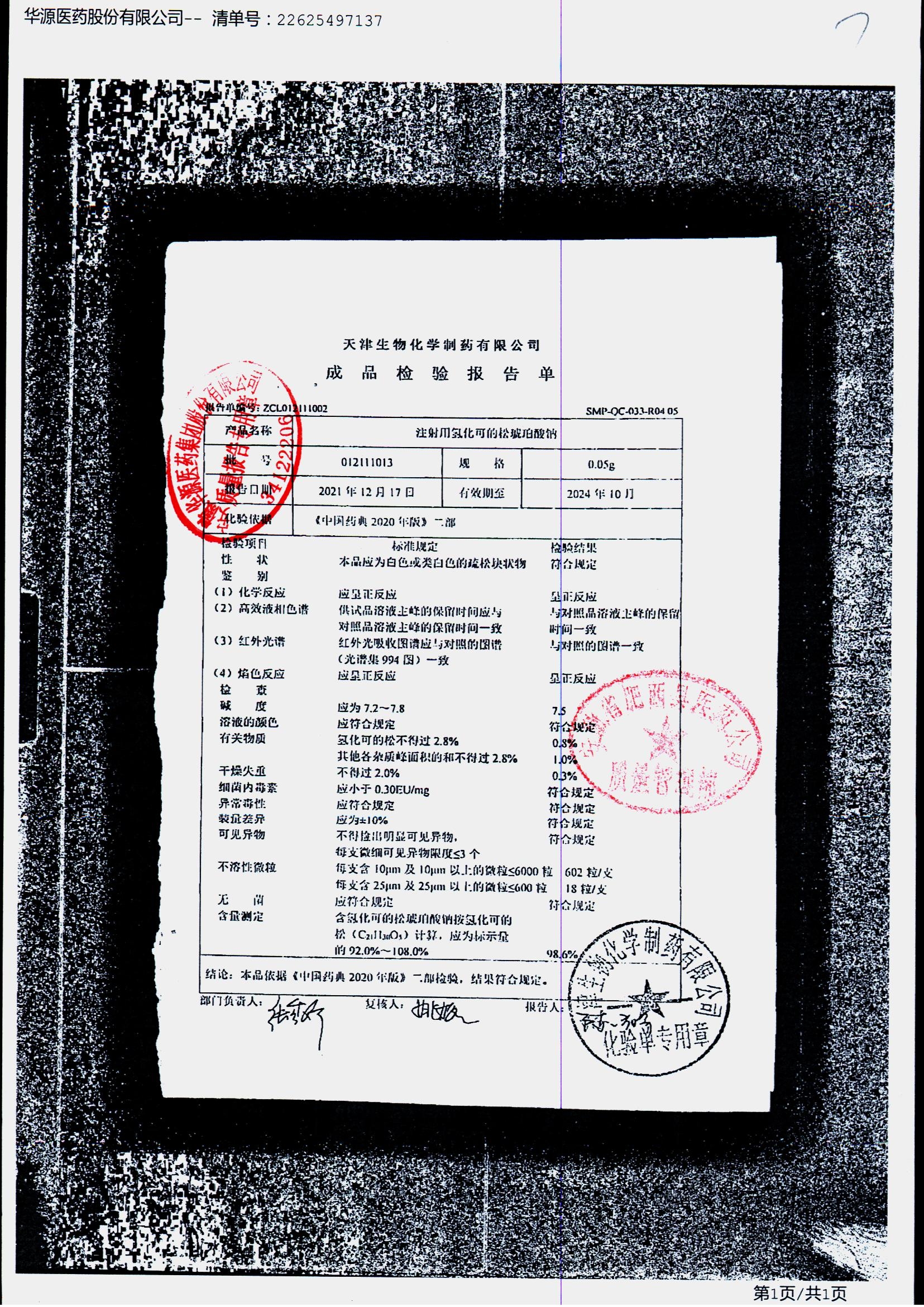注射用氢化可的松琥珀酸钠 | 0.05g | 012107012 | 查看详情 |