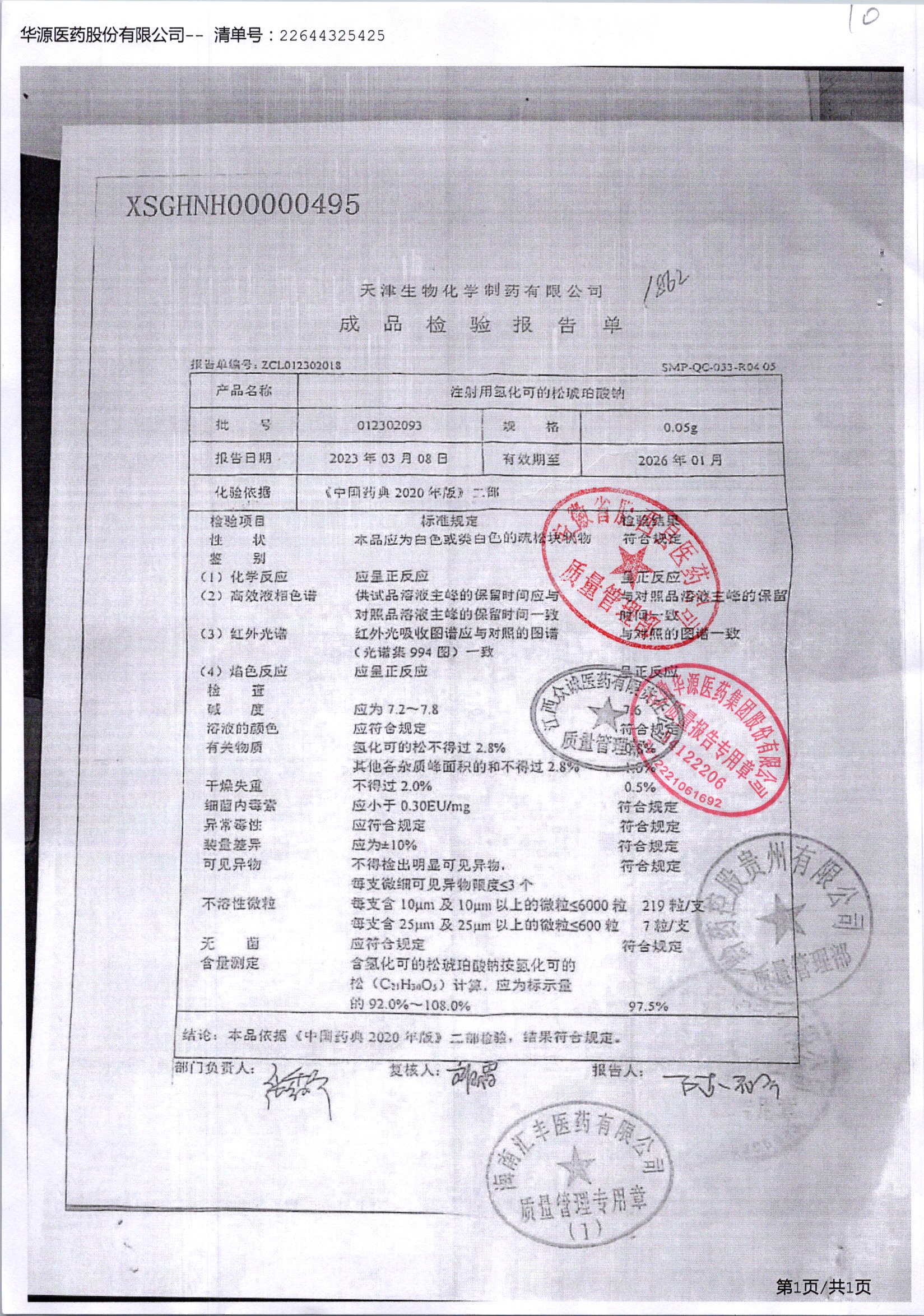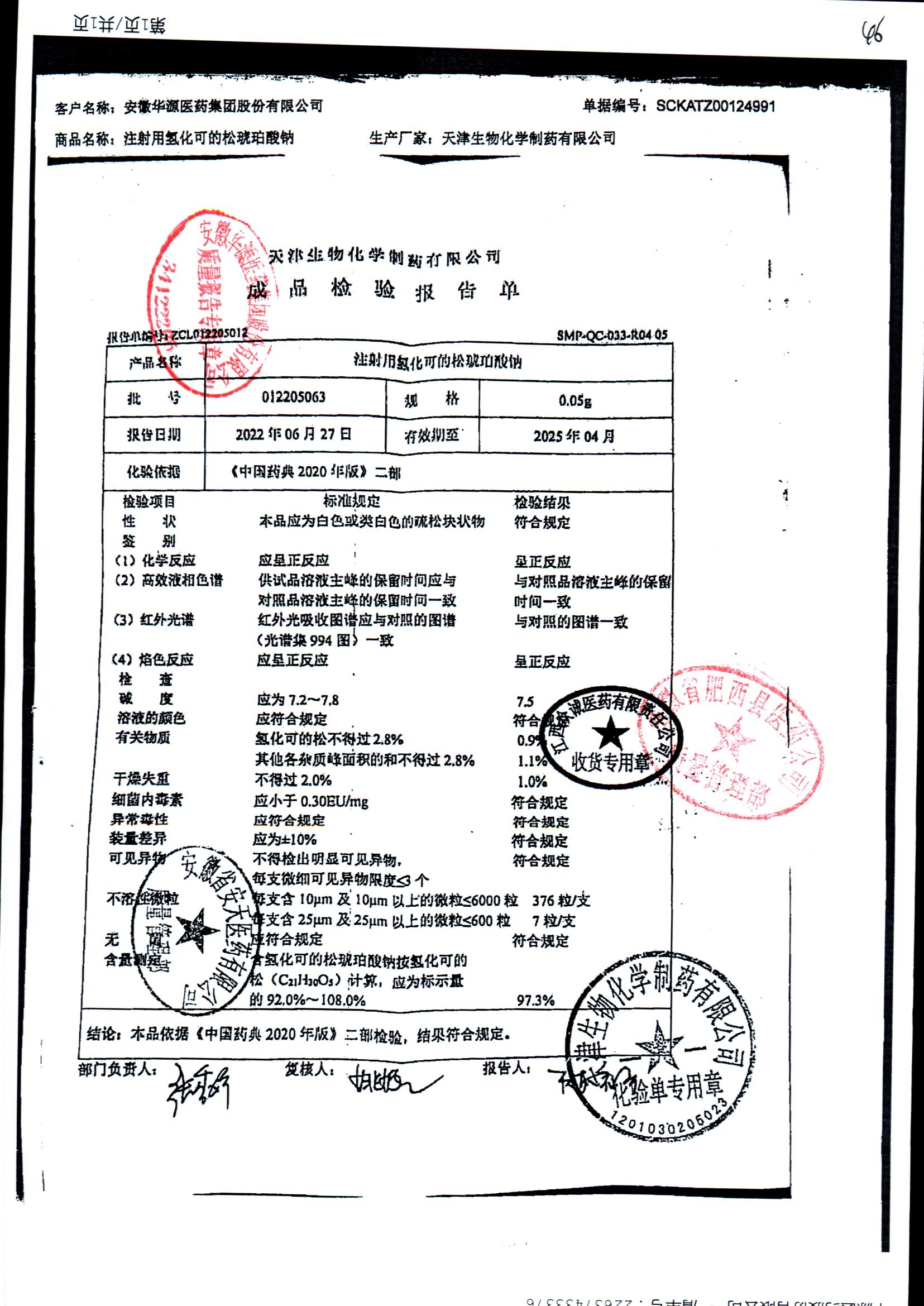 注射用氢化可的松琥珀酸钠 | 0.05g | 012302093 | 查看详情 |