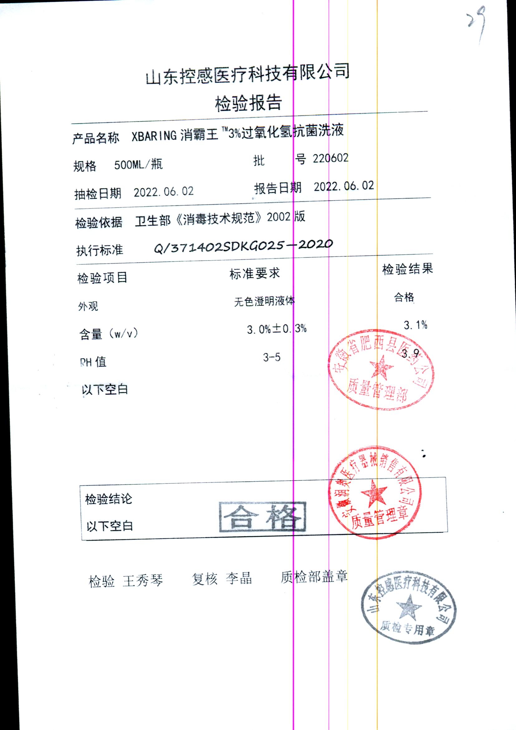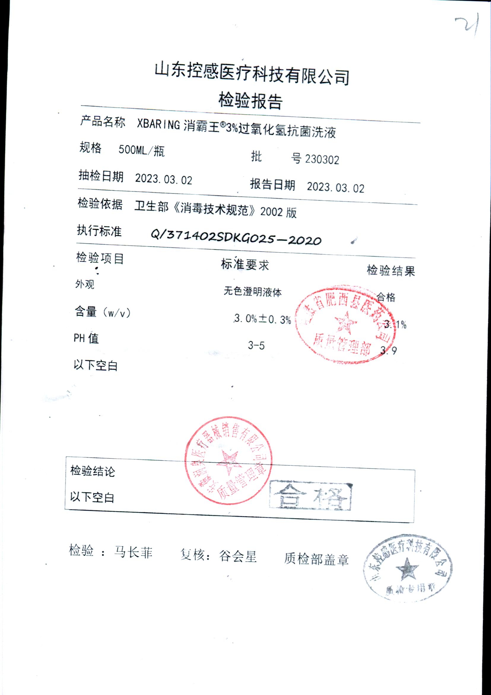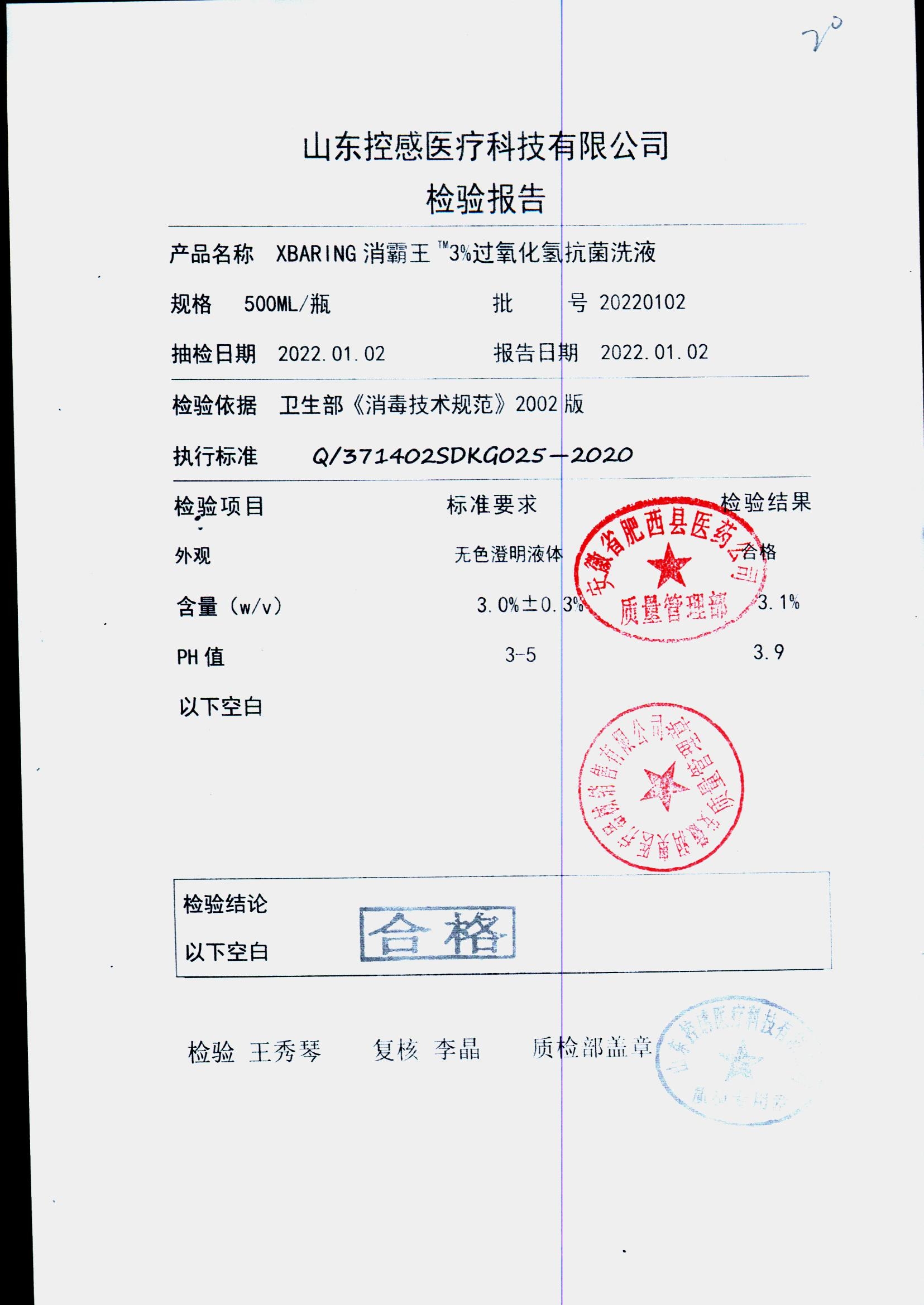 XBARING消霸王3%过氧化氢抗菌洗液 | 500ml | 20220102 | 查看详情 |
