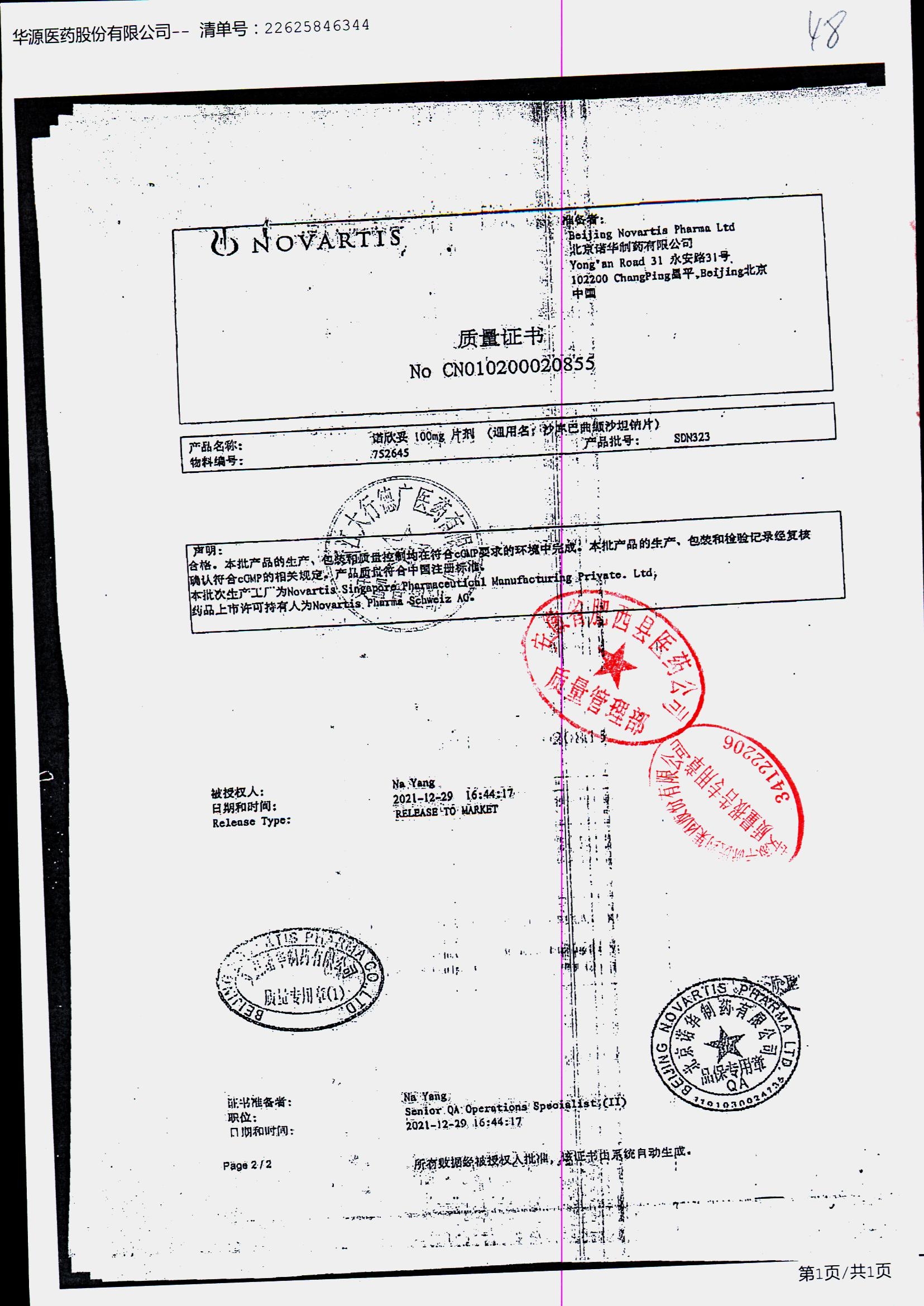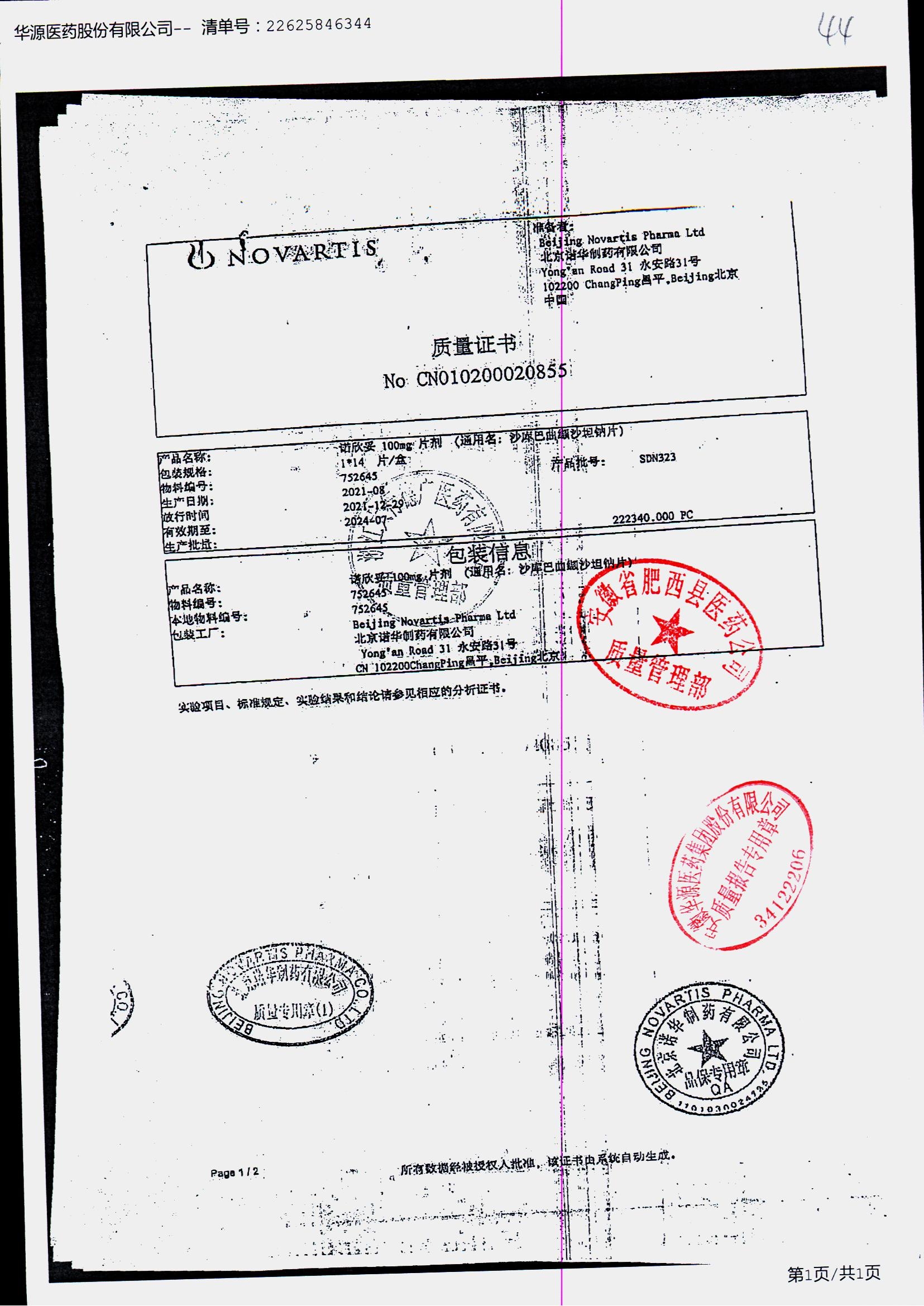 沙库巴曲缬沙坦钠片 | 100mg | SDN323/5 | 查看详情 |