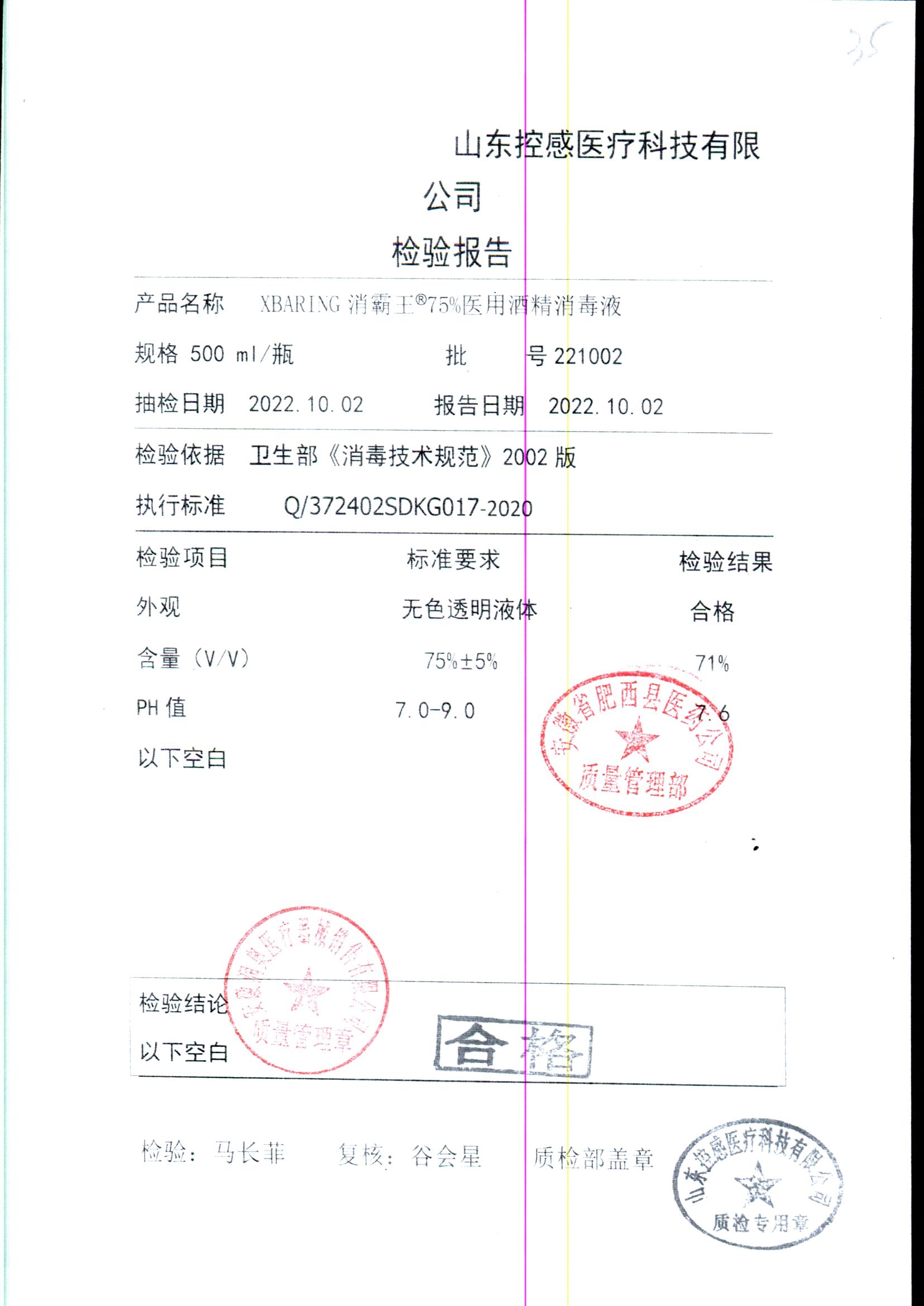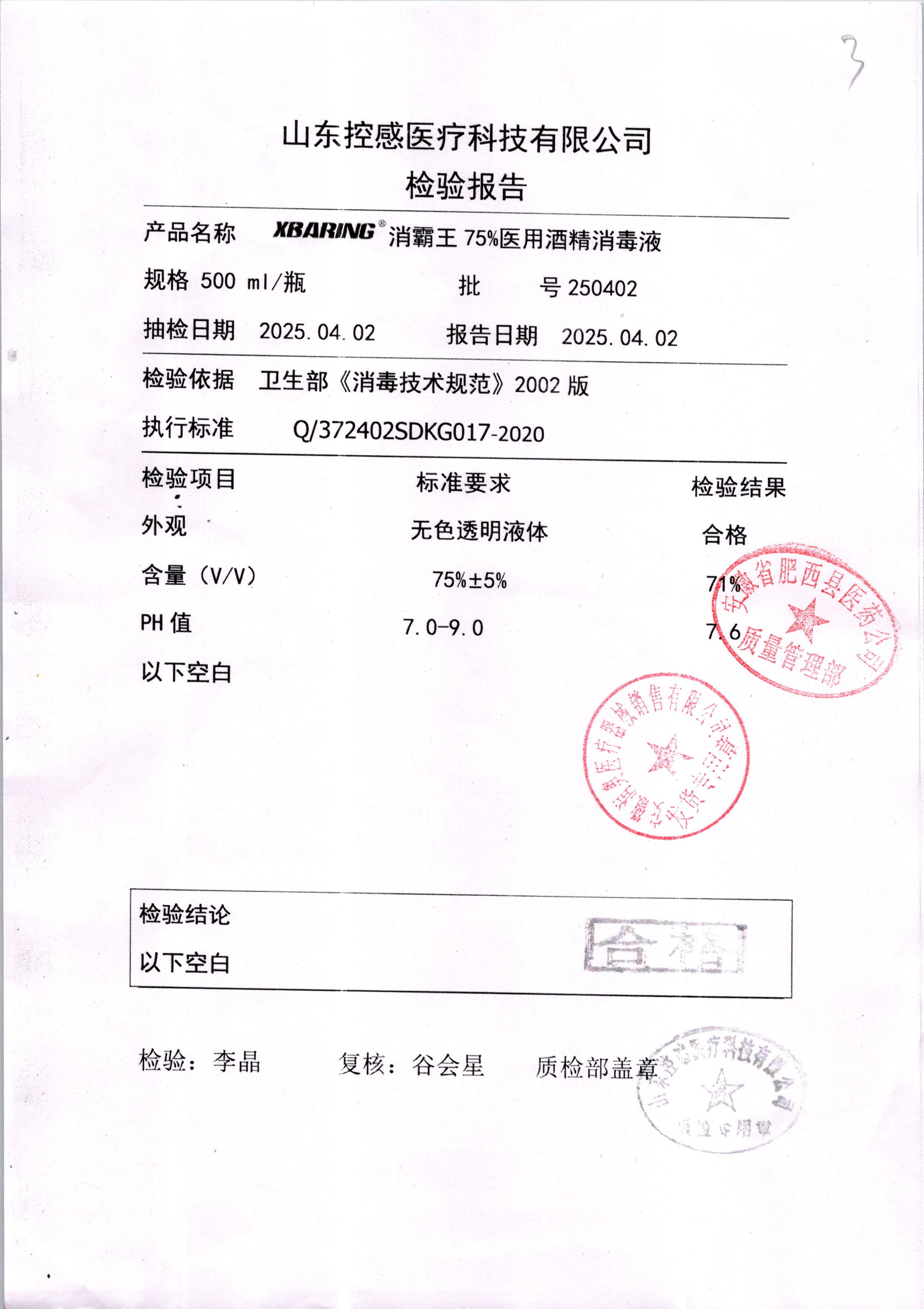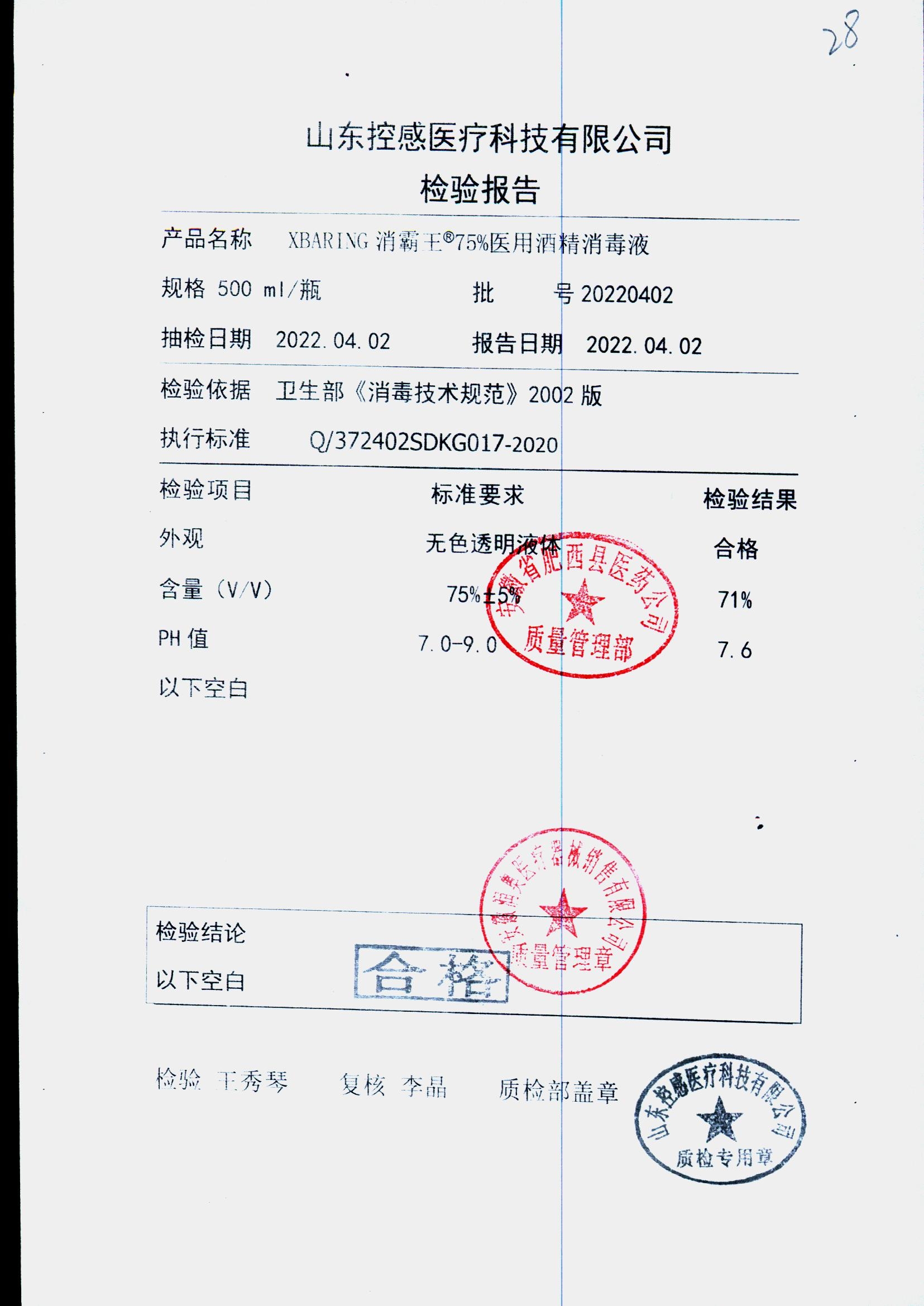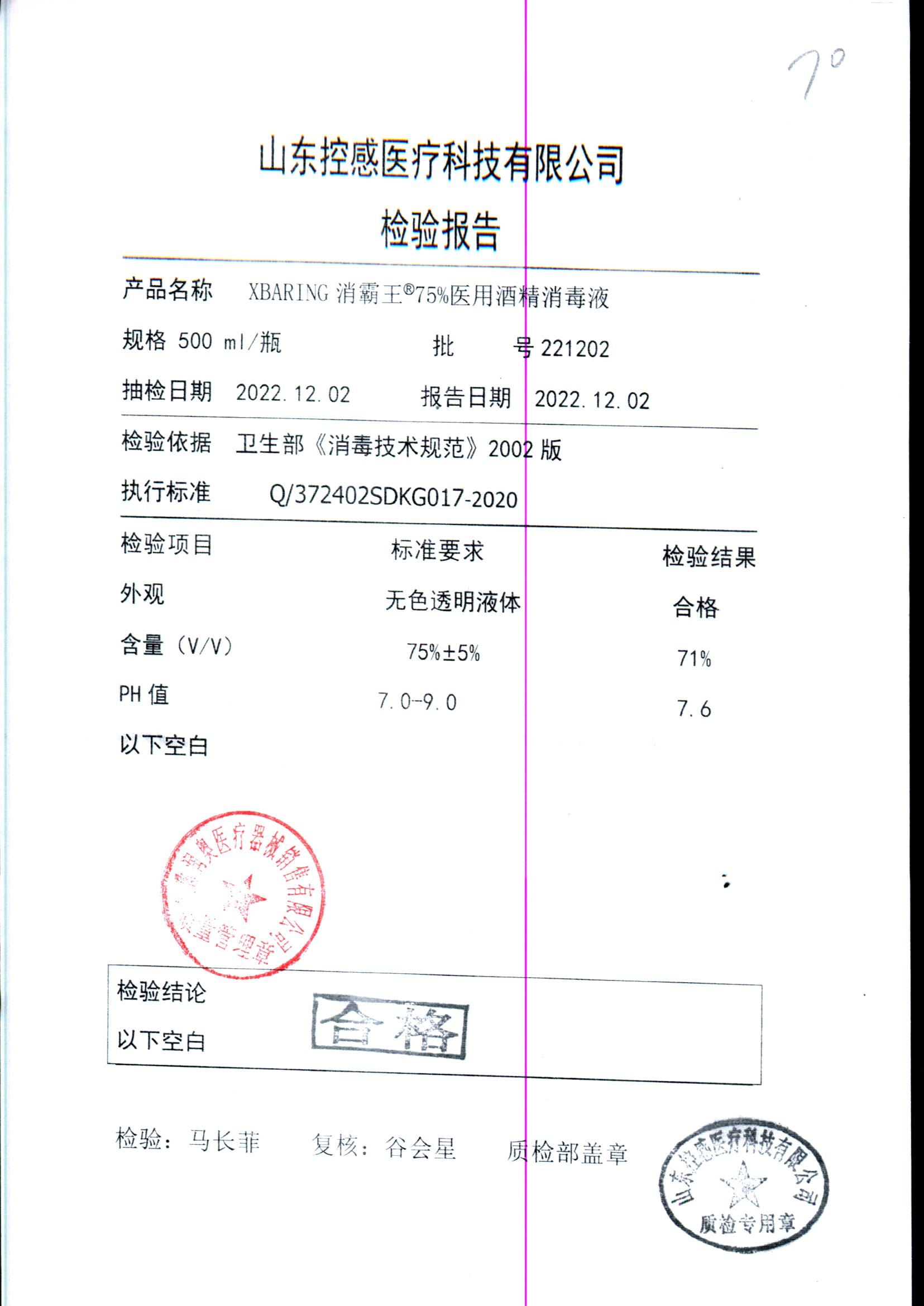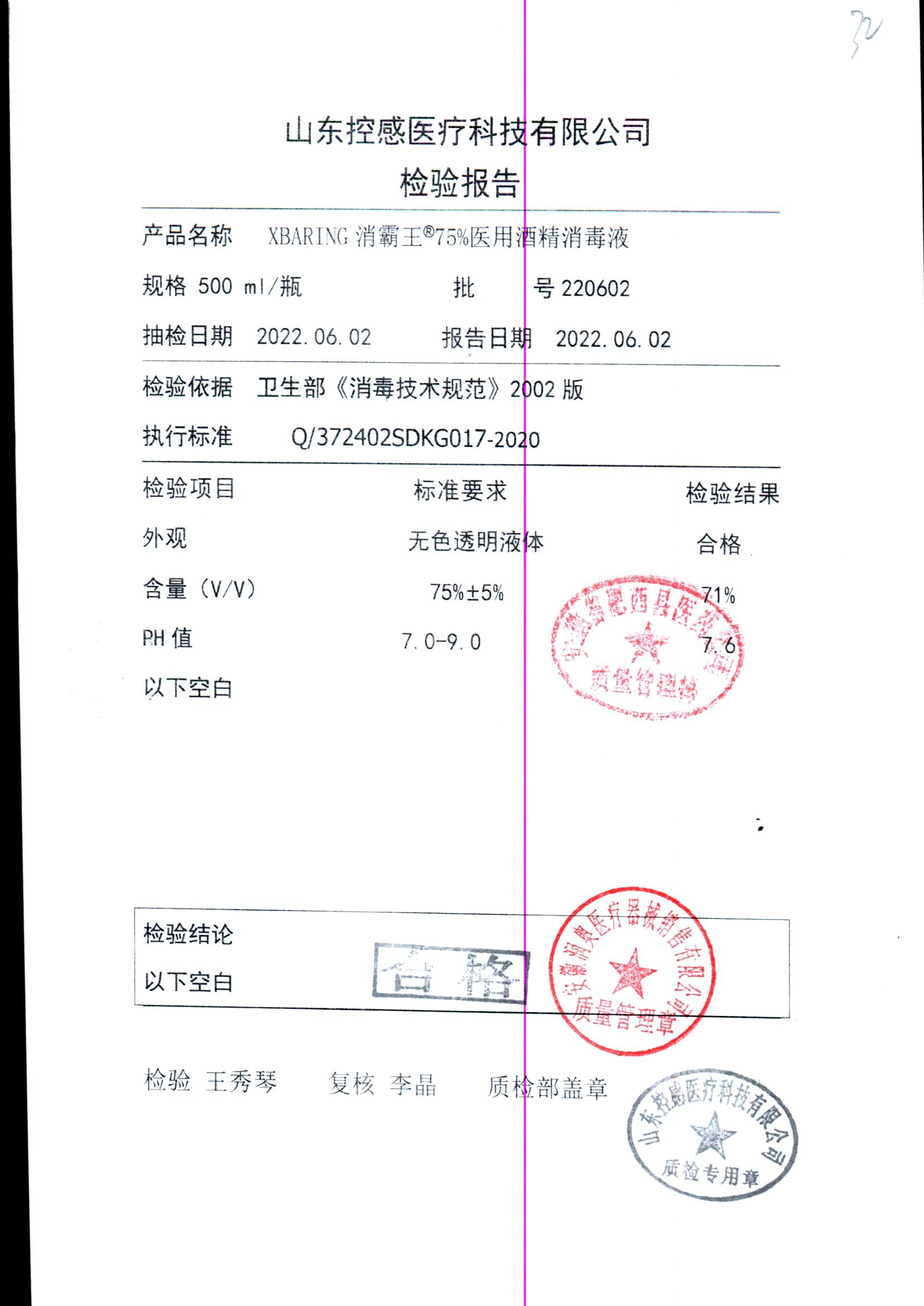 消霸王75%医用酒精消毒液 | 500ml | 20220402 | 查看详情 |