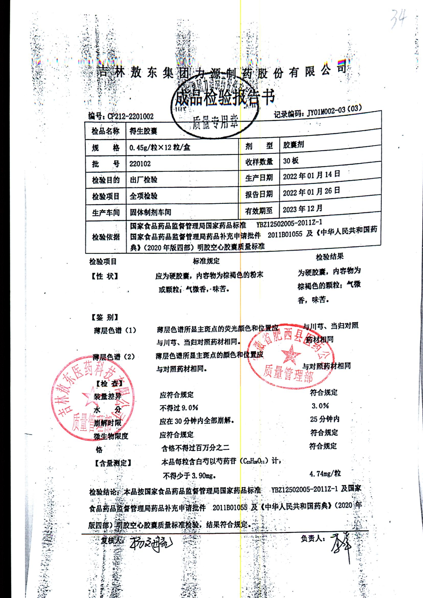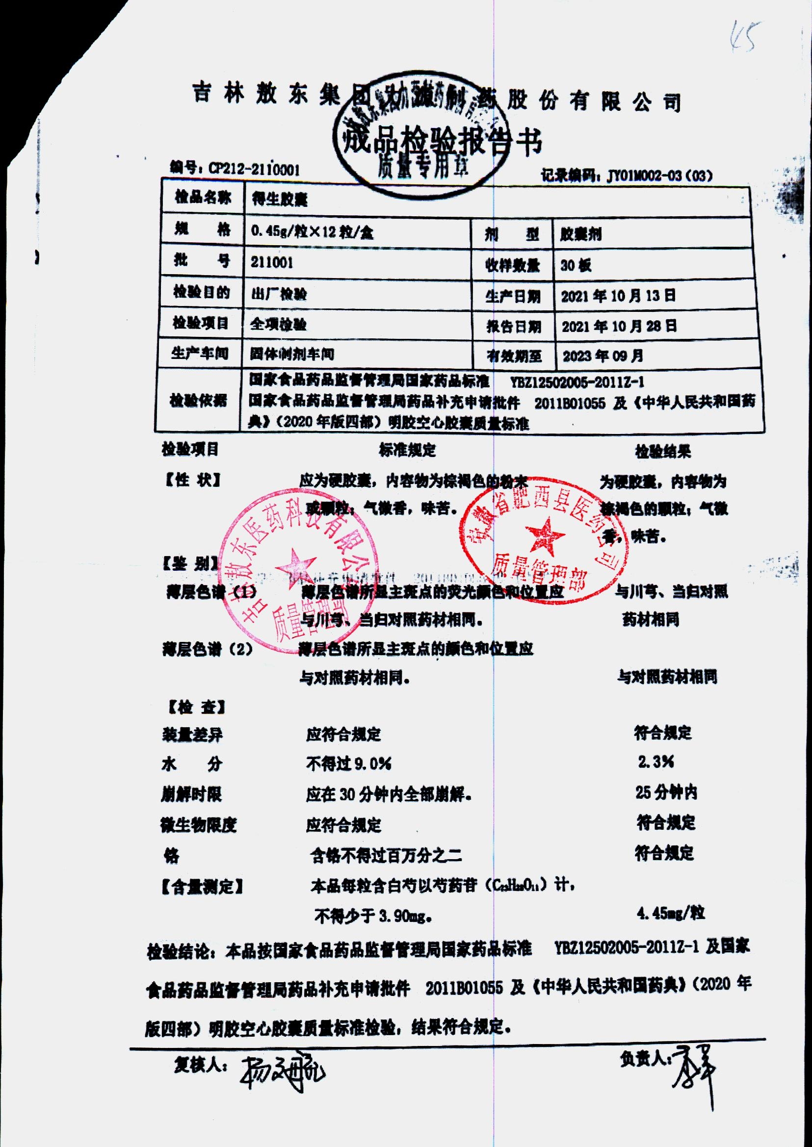 得生胶囊 | 0.45g*12粒 | 220102 | 查看详情 |