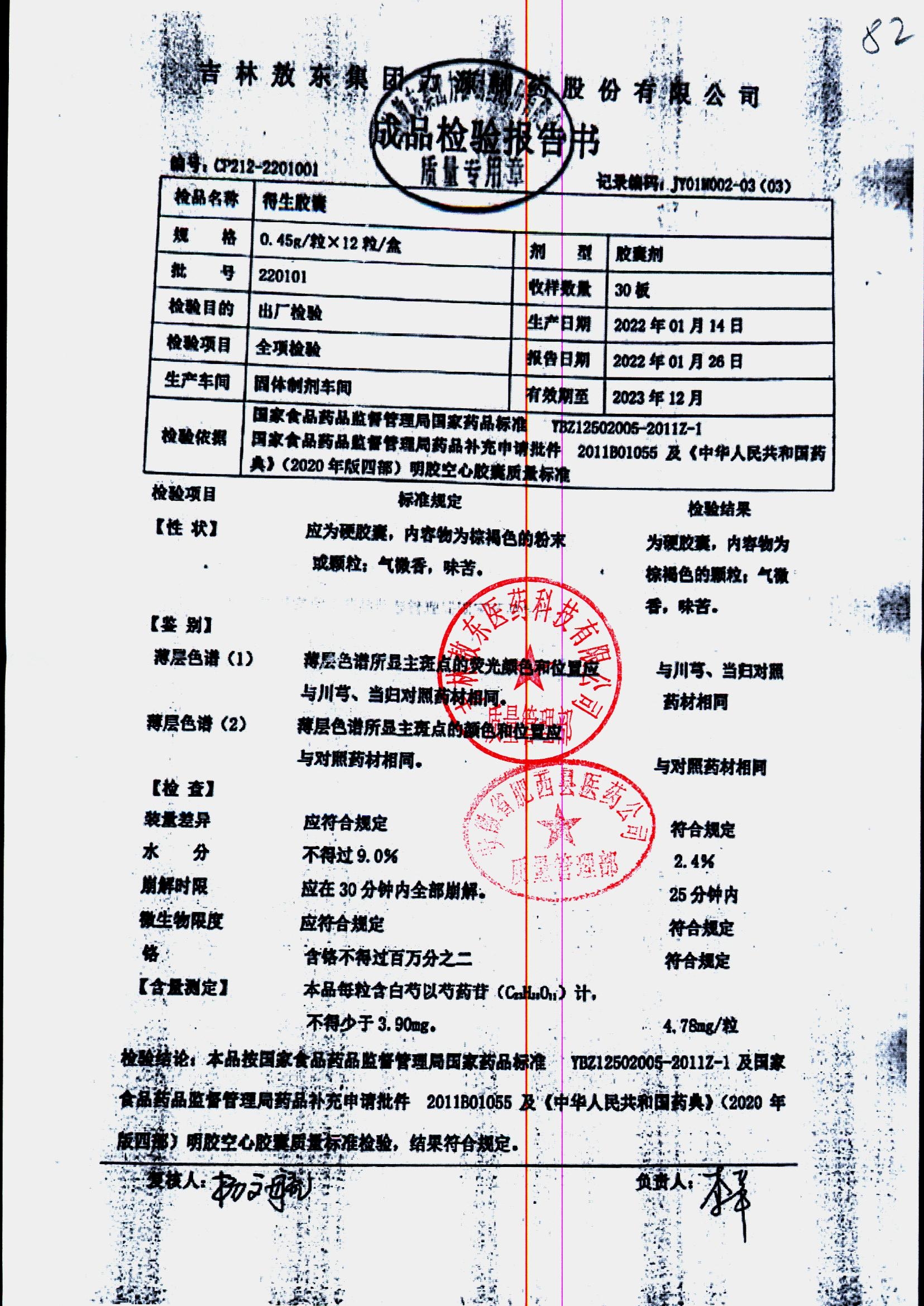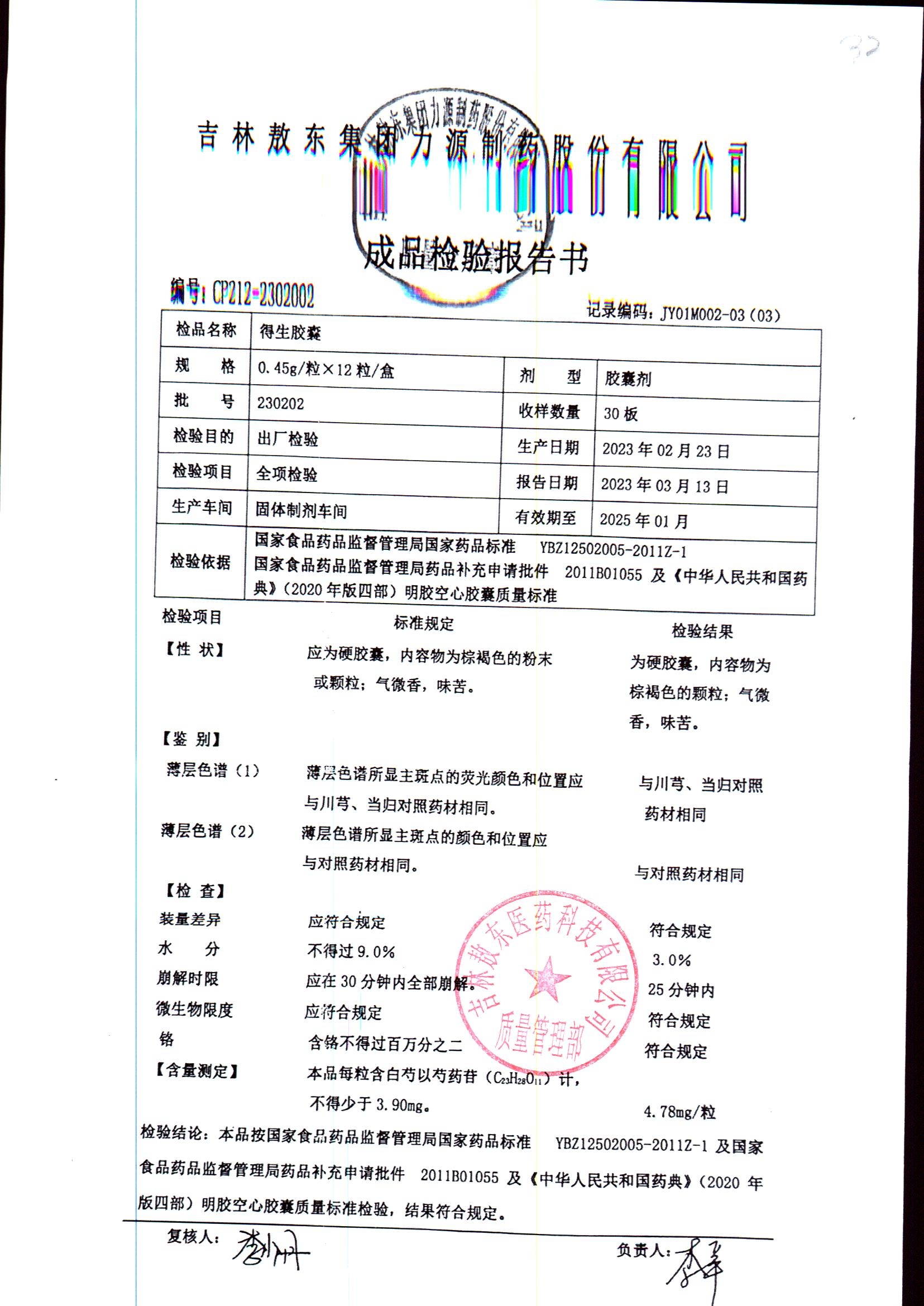 得生胶囊 | 0.45g*12粒 | 230202 | 查看详情 |