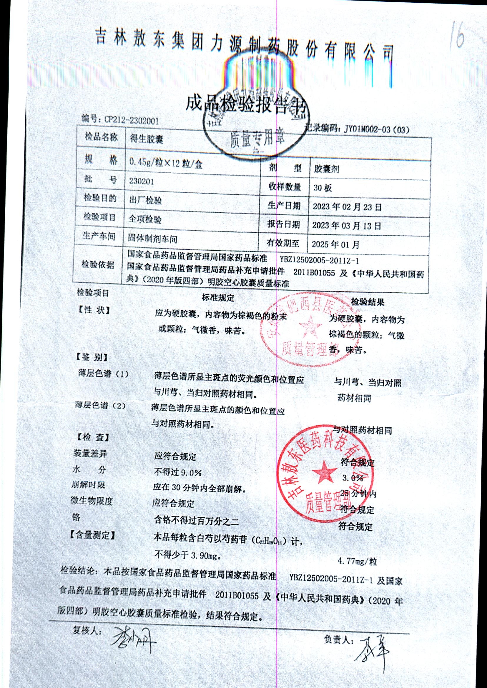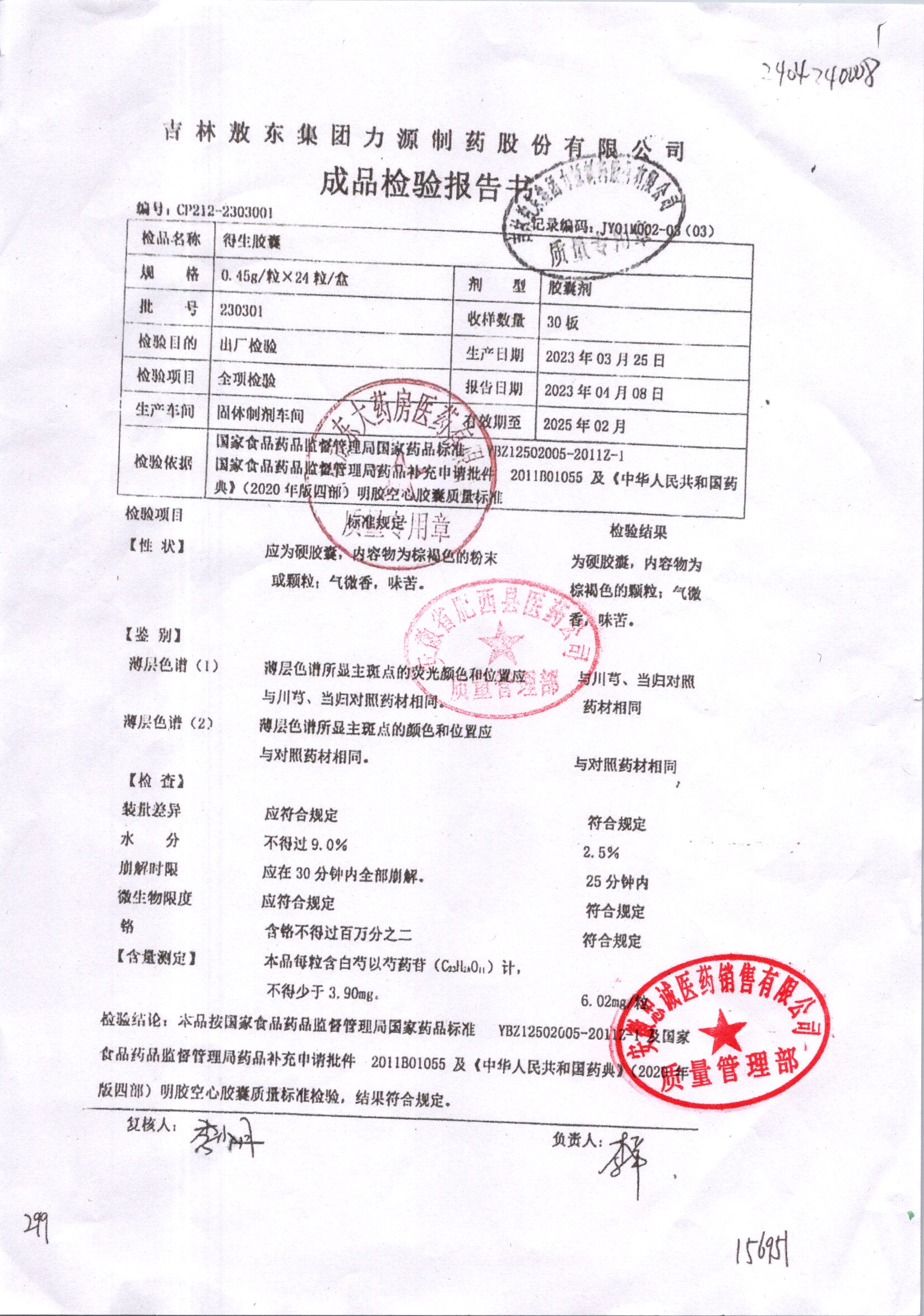 得生胶囊 | 0.45g*12粒 | 230301 | 查看详情 |