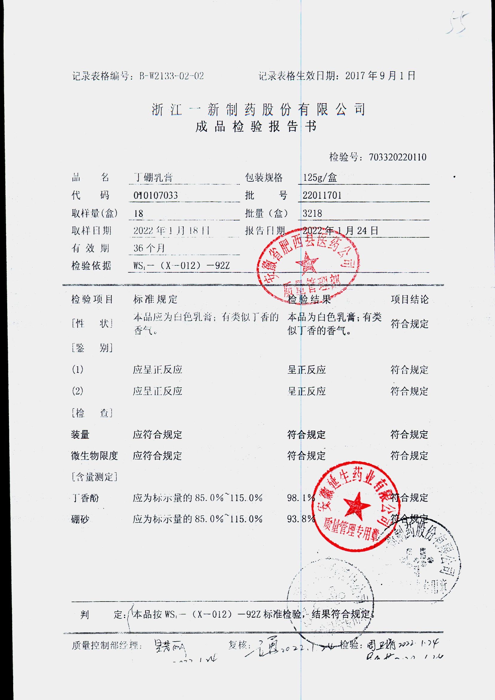 丁硼乳膏 | 125g | 22051101 | 查看详情 |