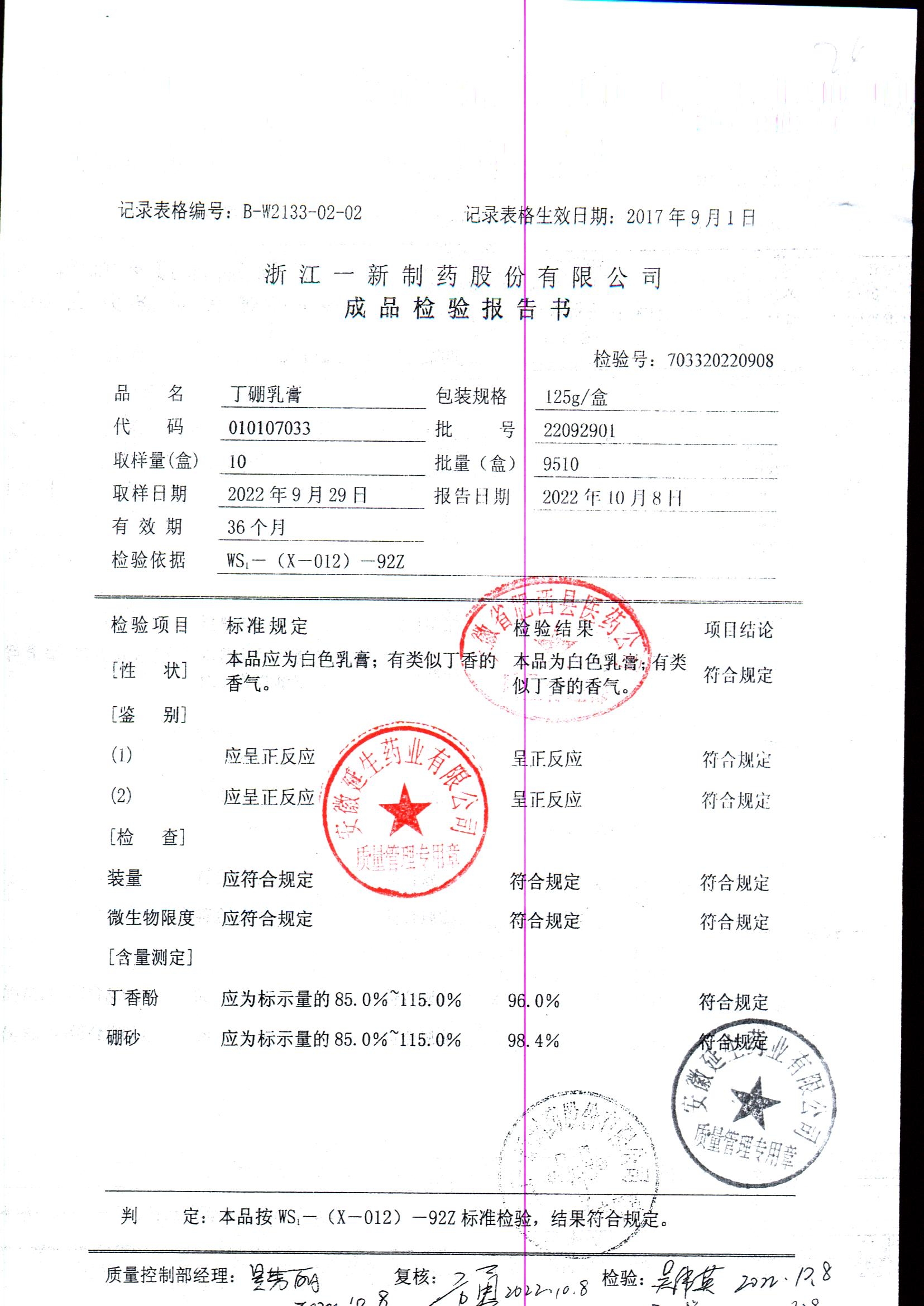 丁硼乳膏 | 125g | 23081102 | 查看详情 |