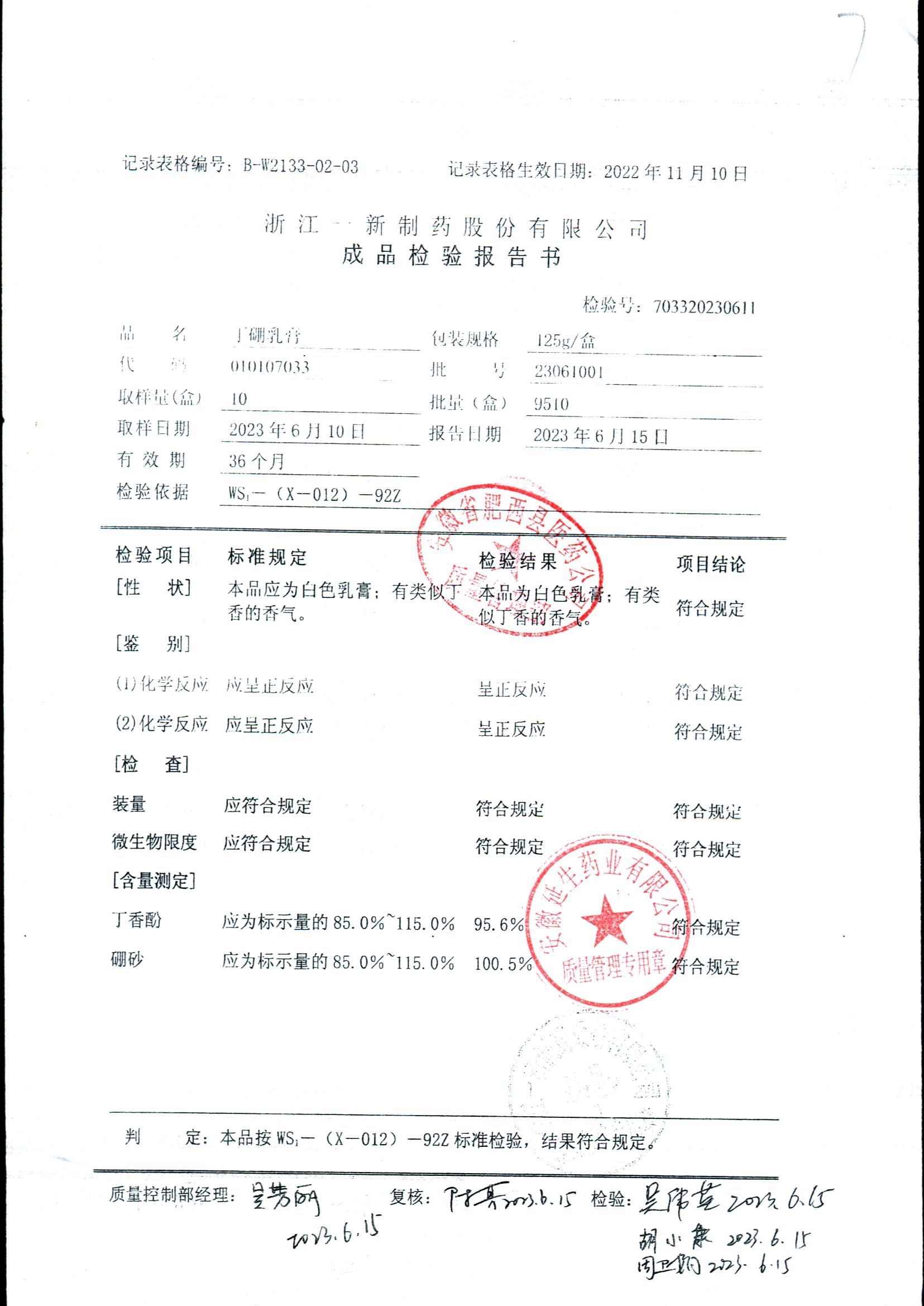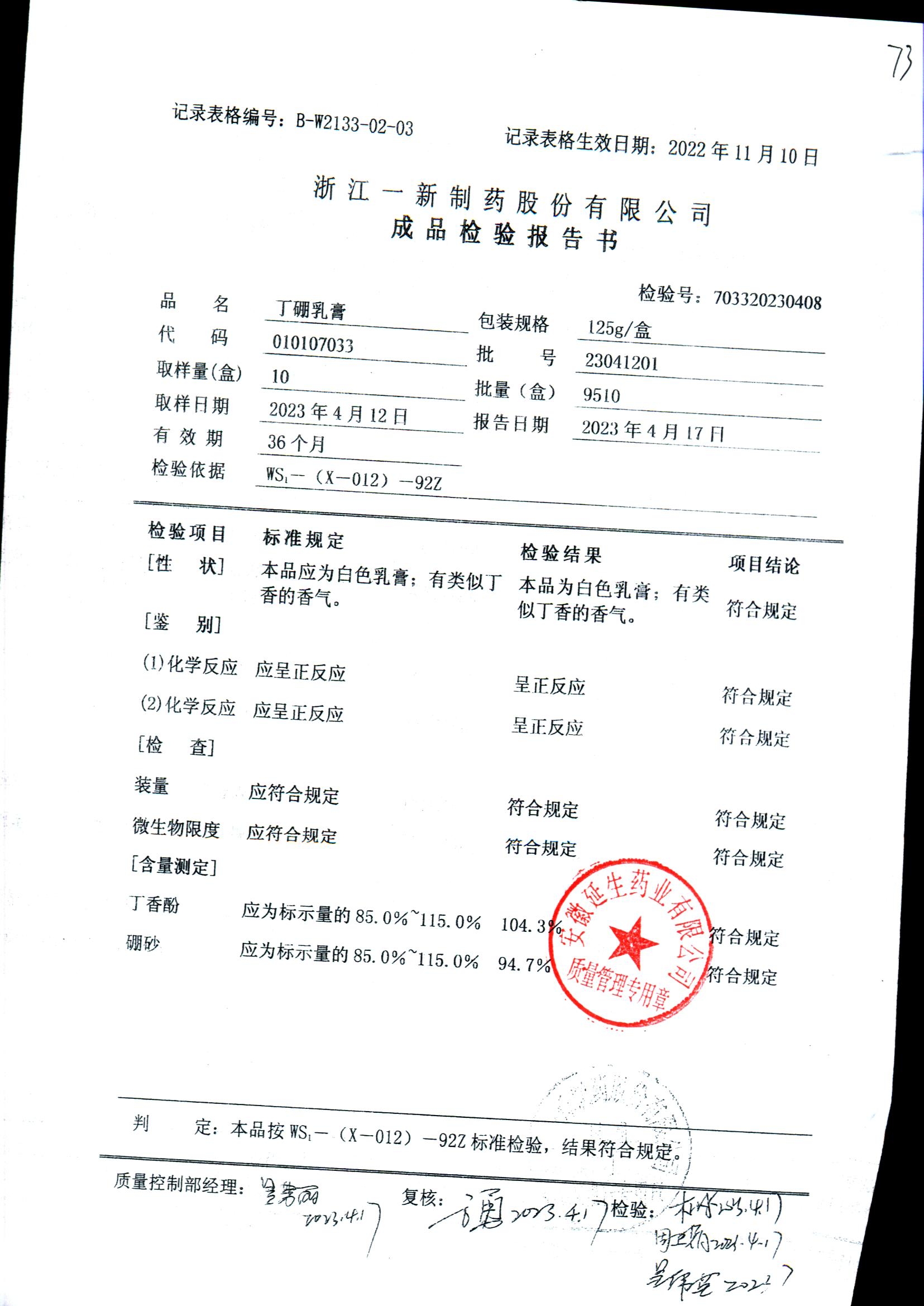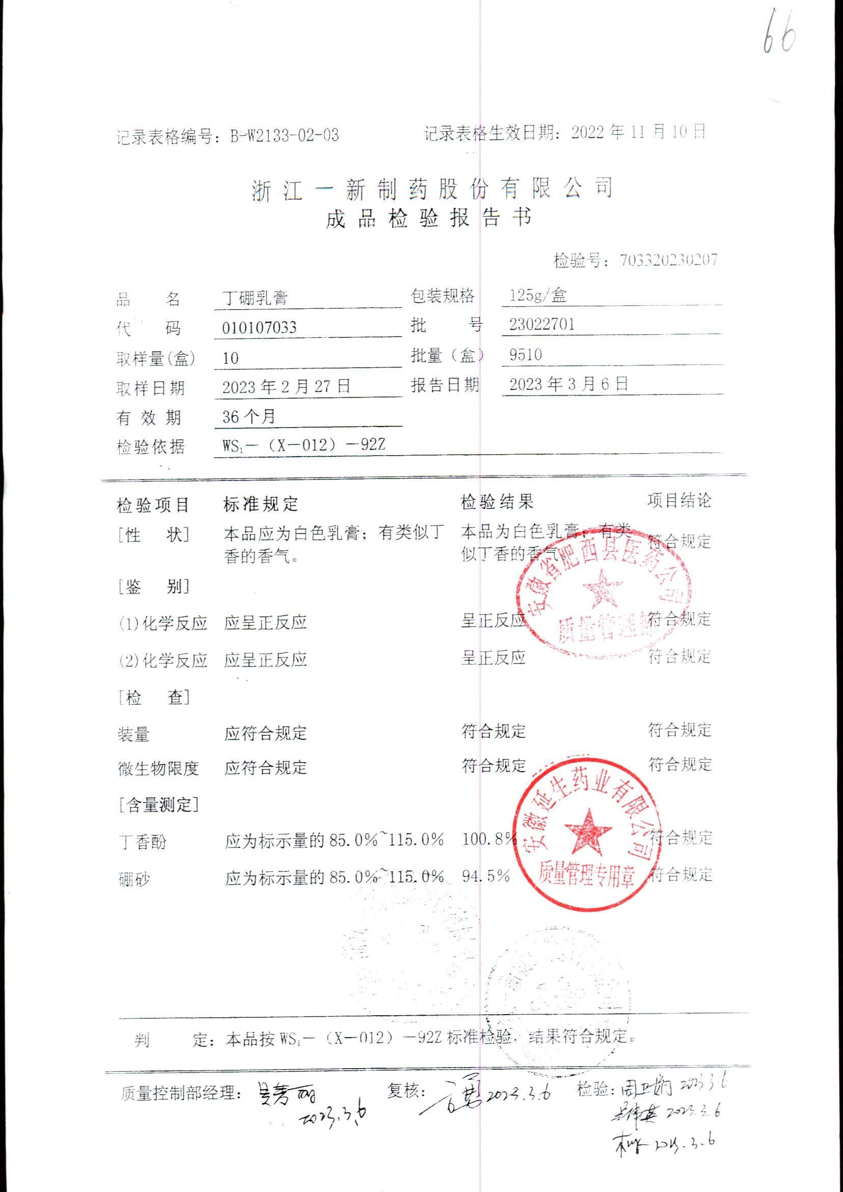 丁硼乳膏 | 125g | 23061001 | 查看详情 |