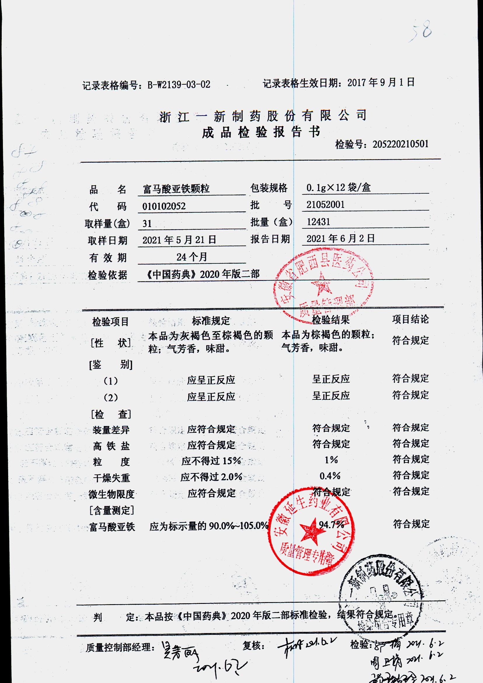 富马酸亚铁颗粒