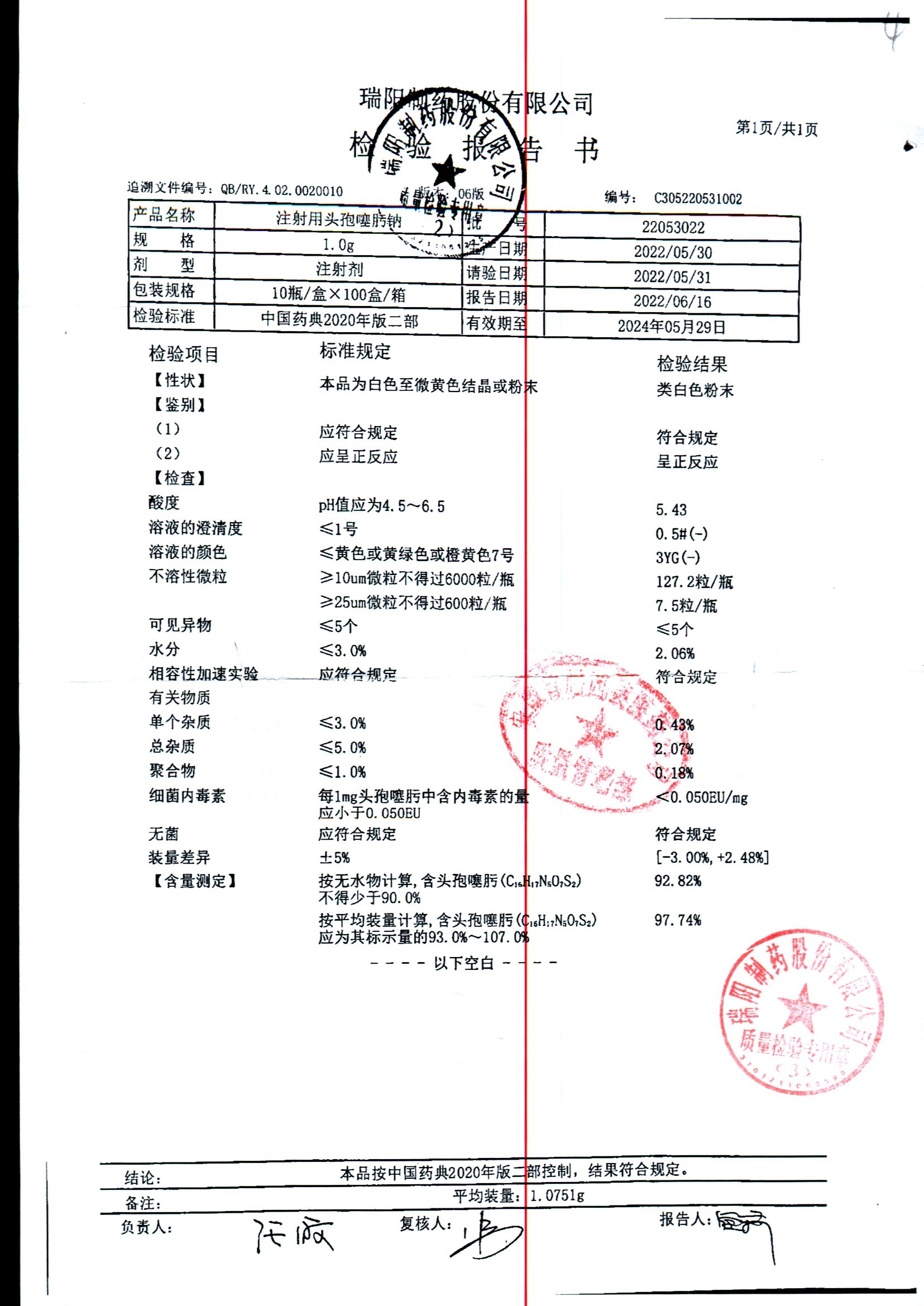 注射用头孢噻肟钠 | 1.0g*10瓶 | 22053022 | 查看详情 |