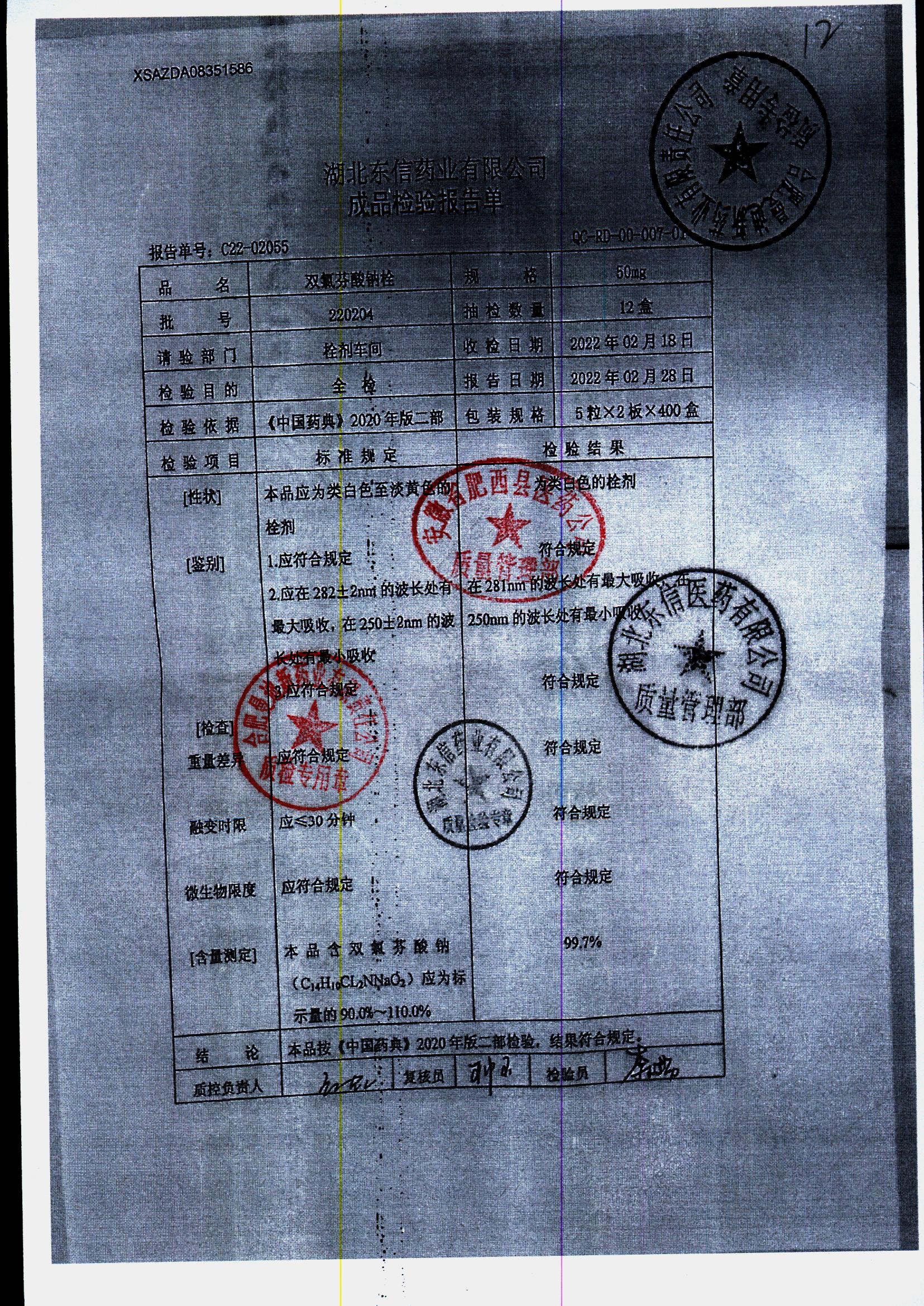双氯芬酸钠栓 | 50mg*10粒 | 220204 | 查看详情 |