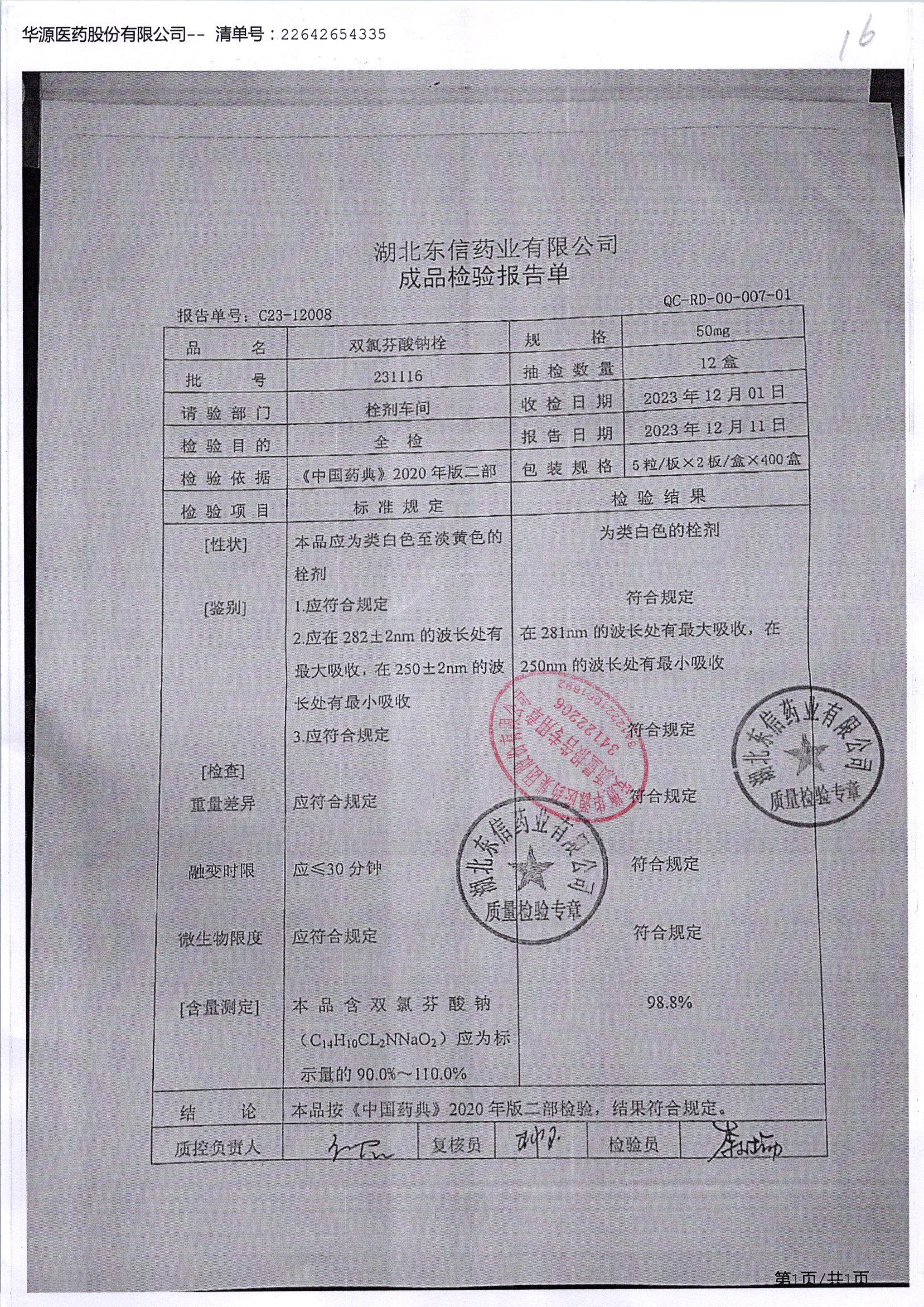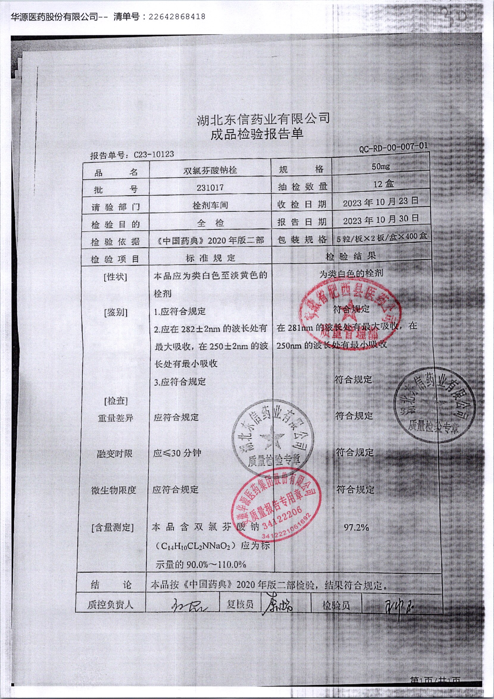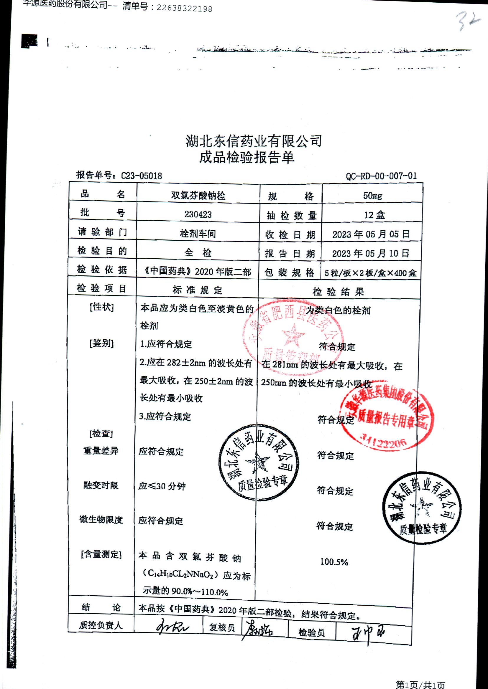 双氯芬酸钠栓 | 50mg*10粒 | 230423 | 查看详情 |