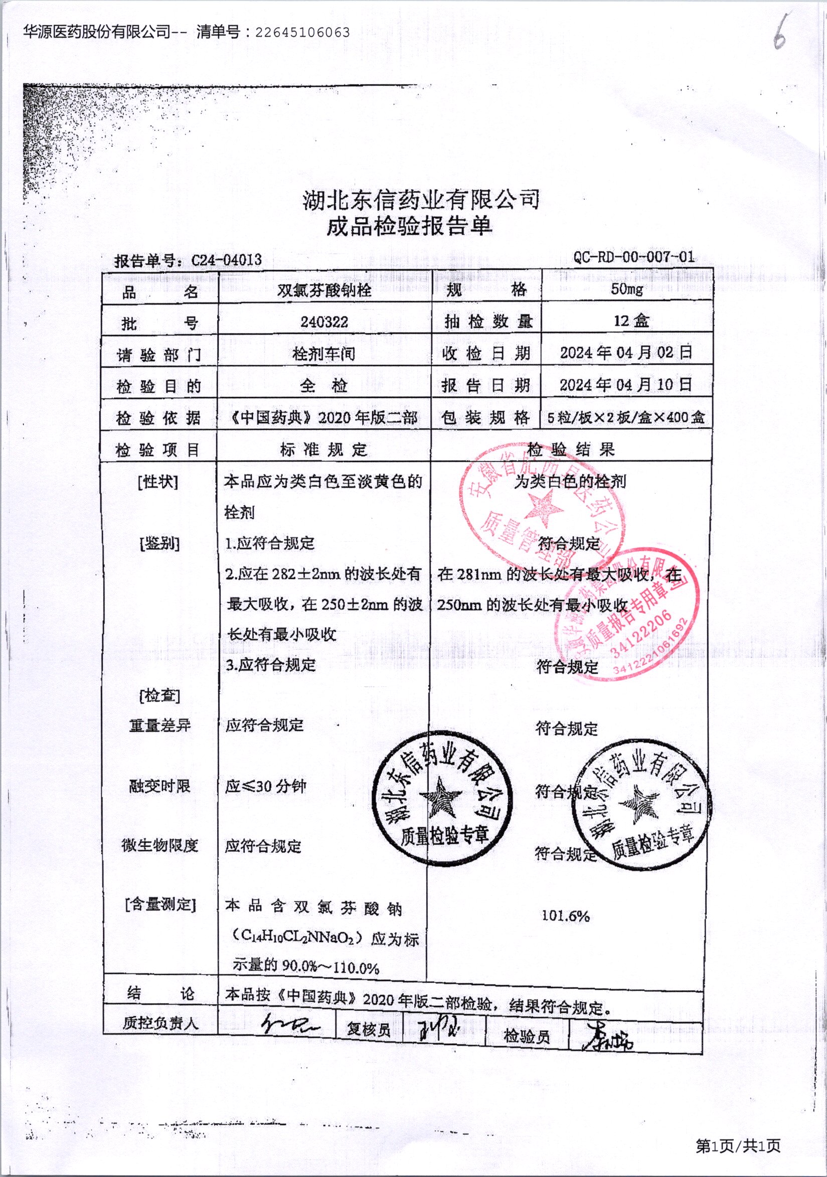 双氯芬酸钠栓 | 50mg*10粒 | 240510 | 查看详情 |
