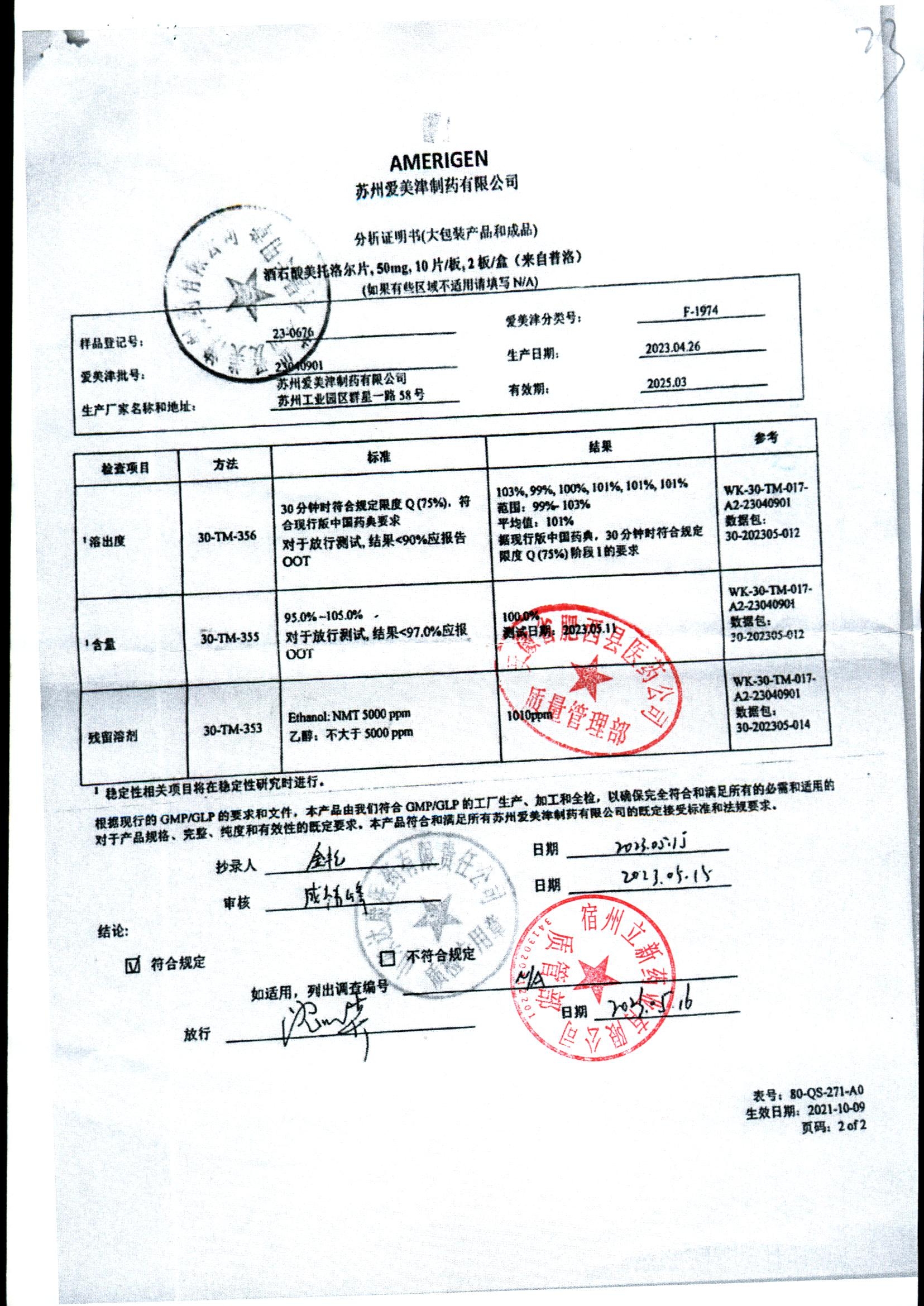 酒石酸美托洛尔片 | 50mg*20s | 23040901/2 | 查看详情 |
