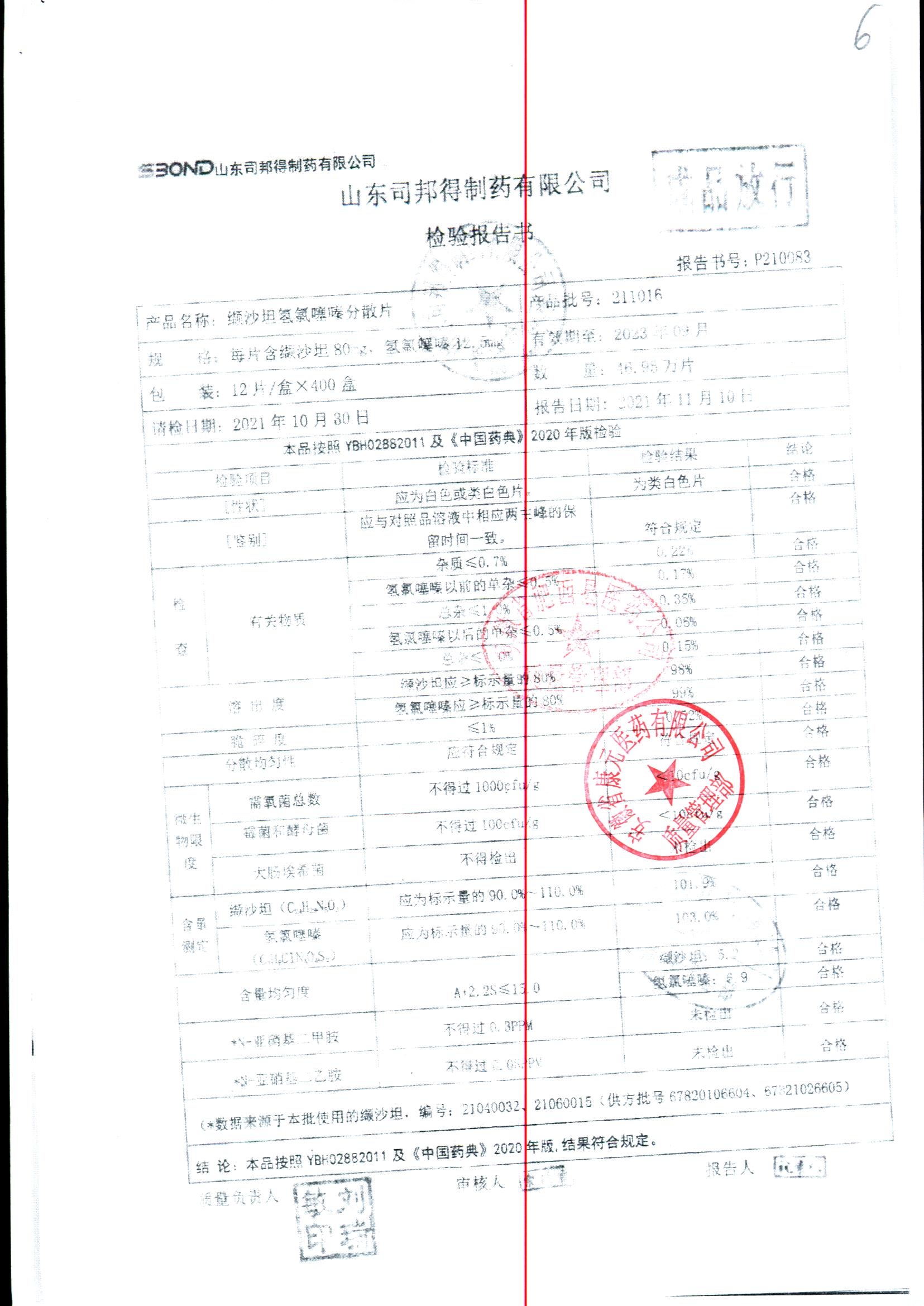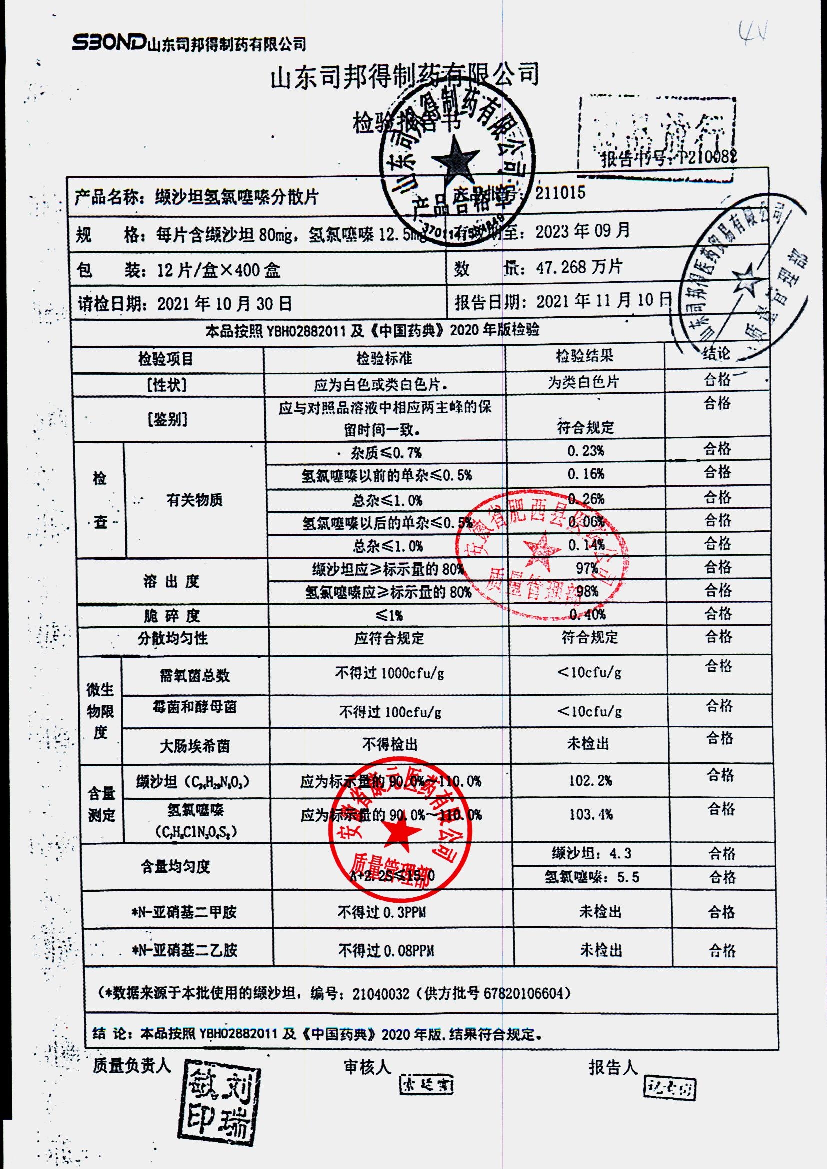 缬沙坦氢氯噻嗪分散片