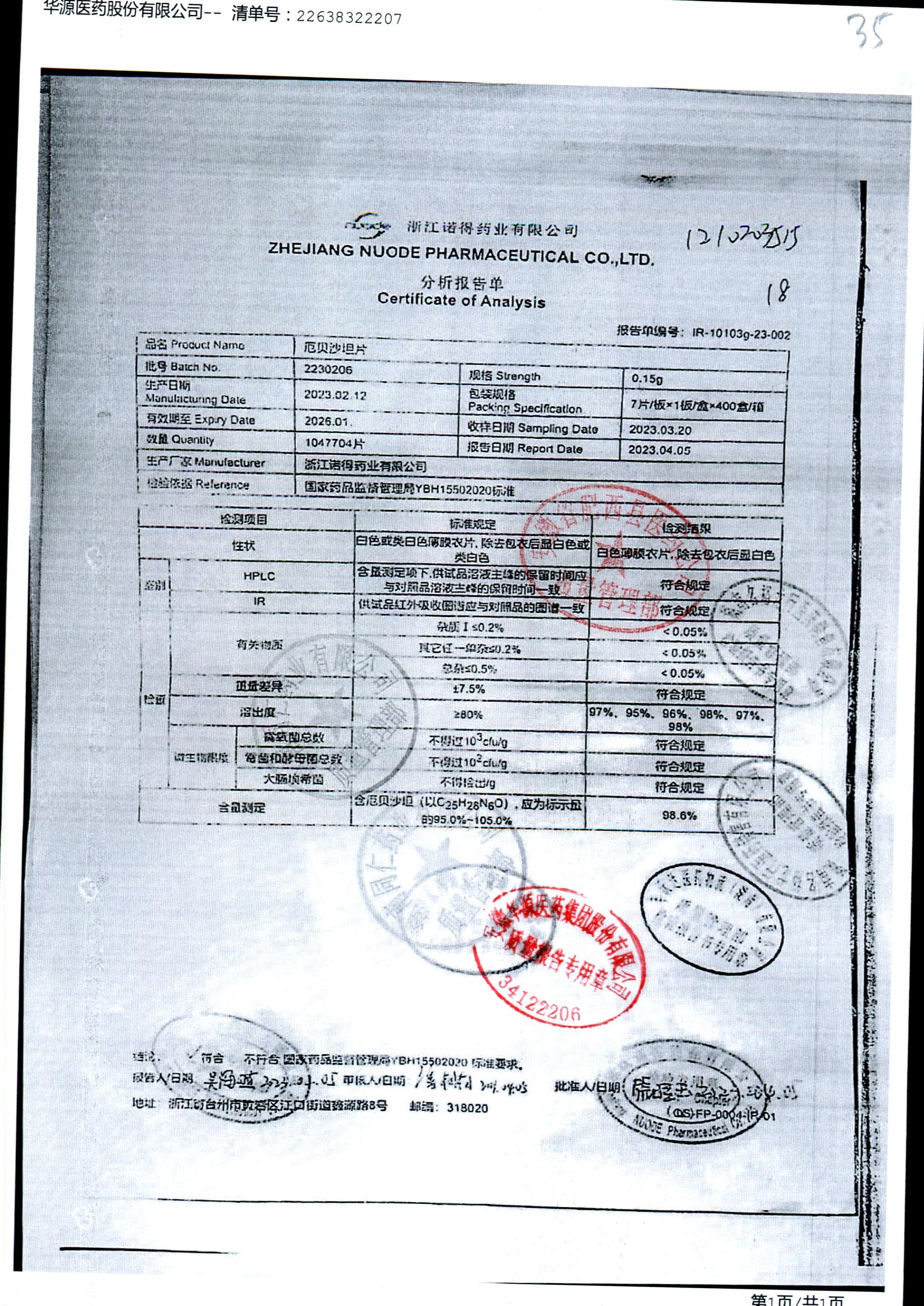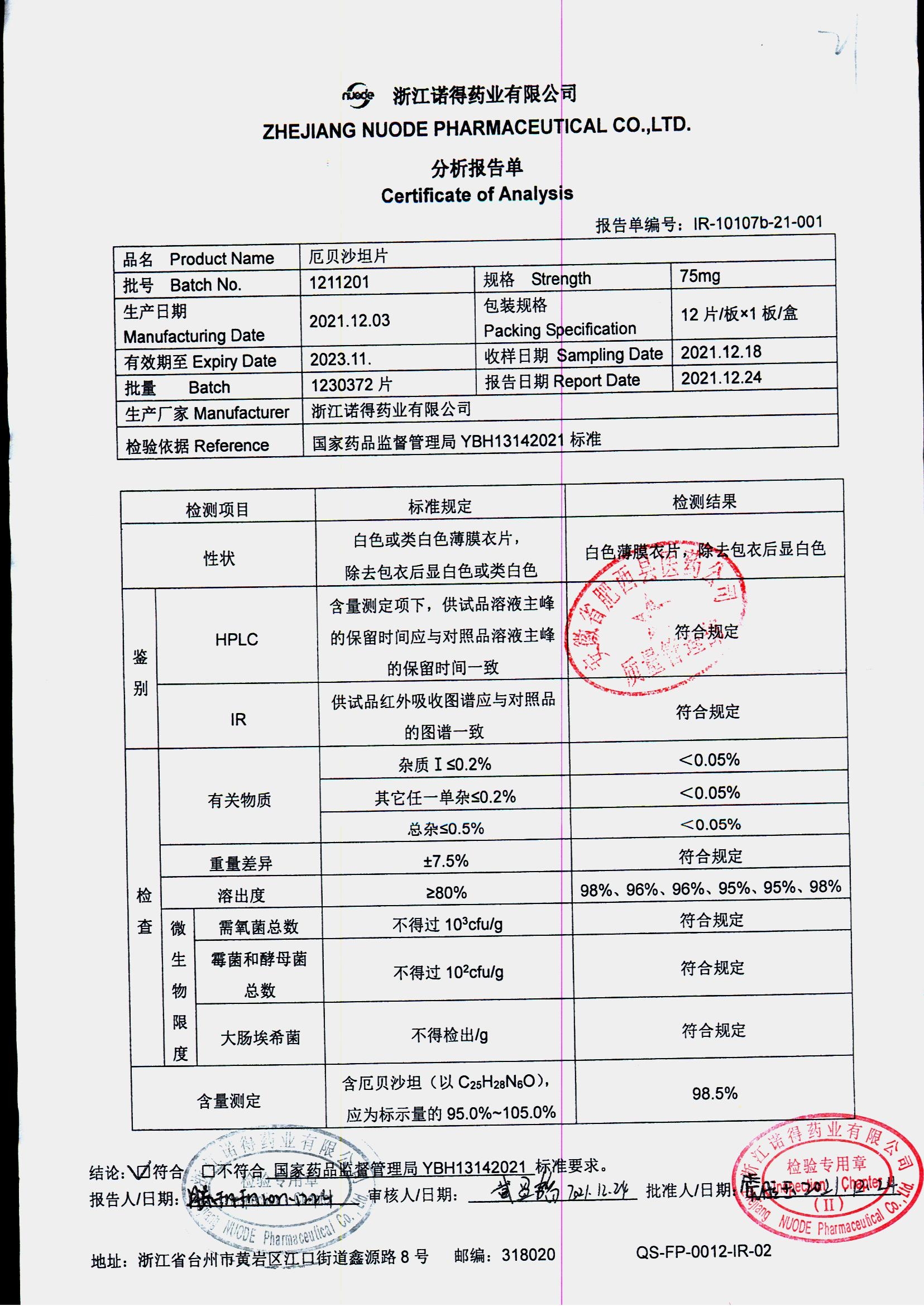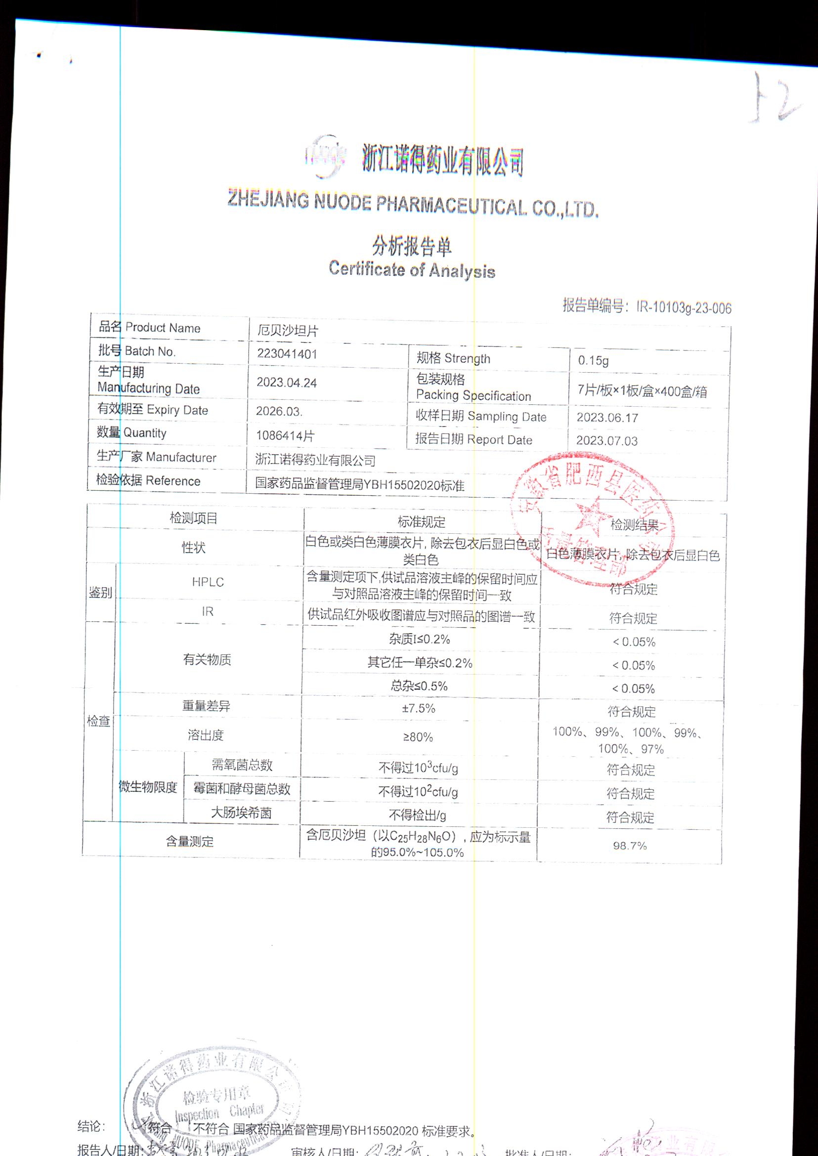 药检报告