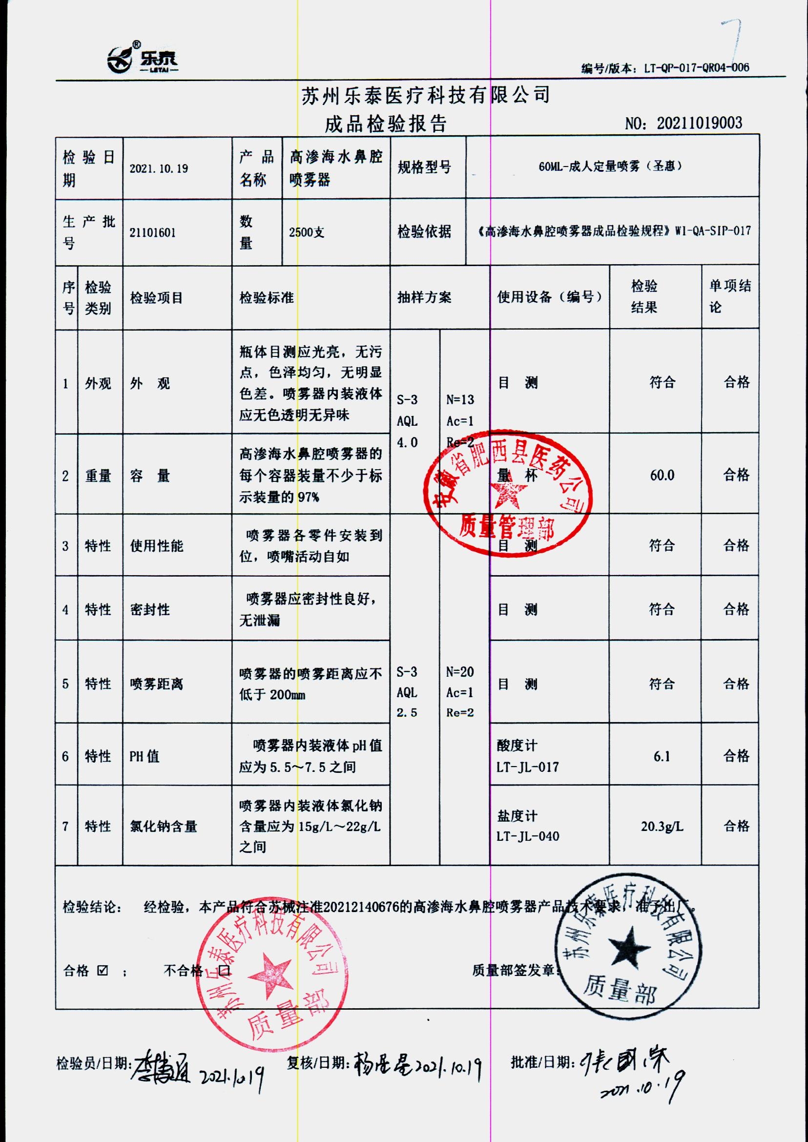 药检报告
