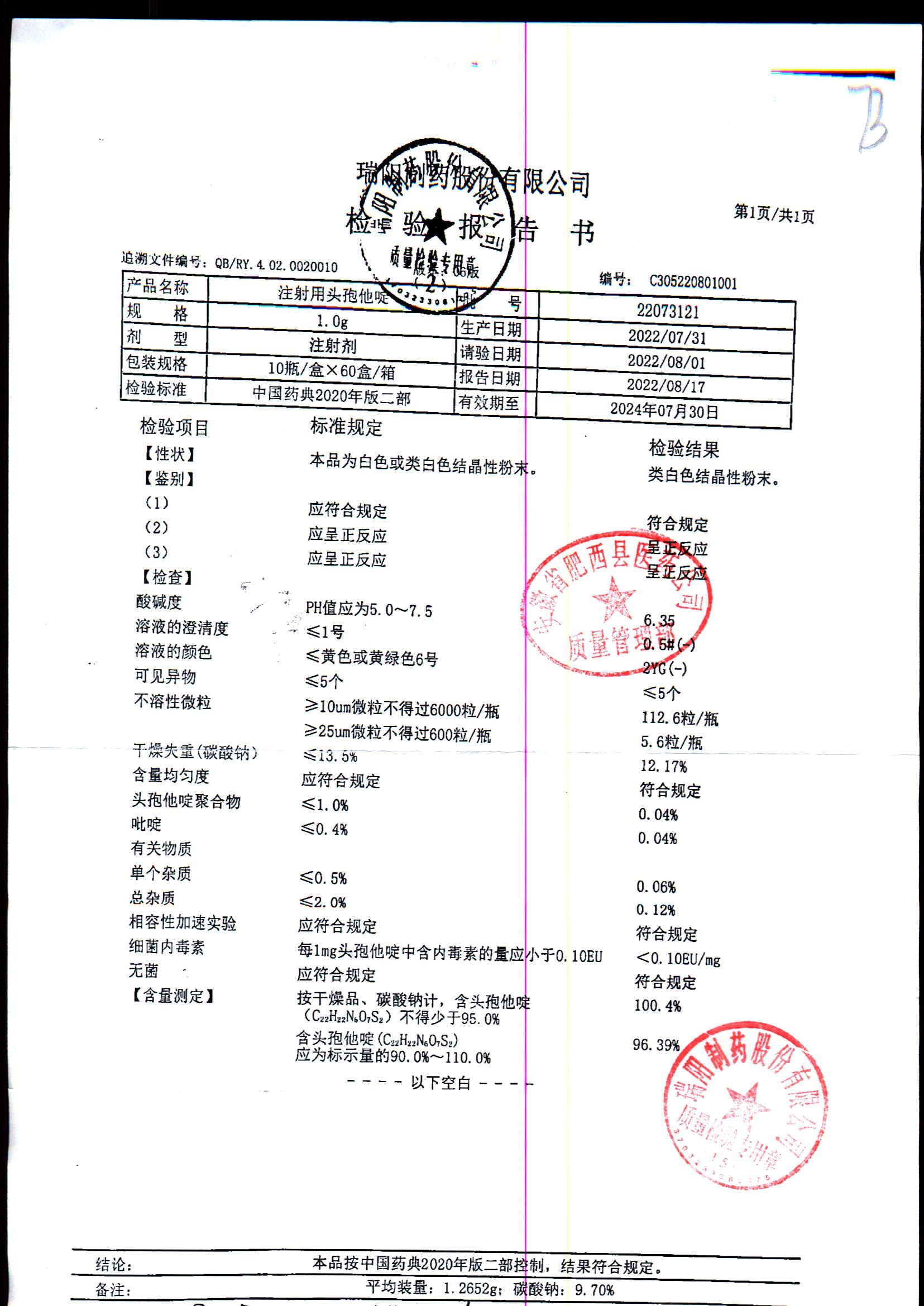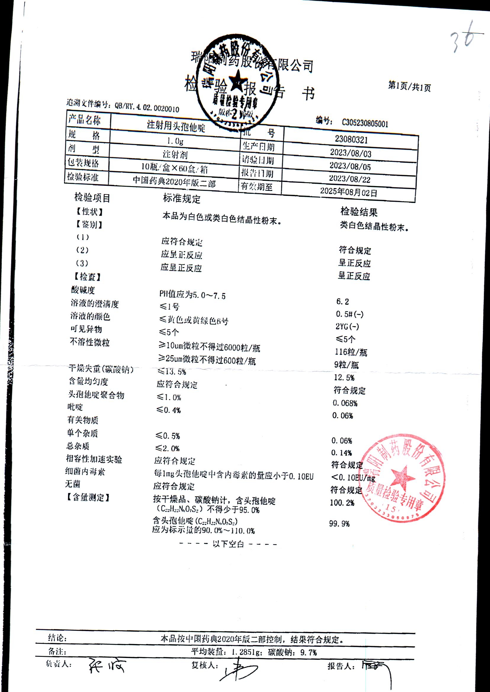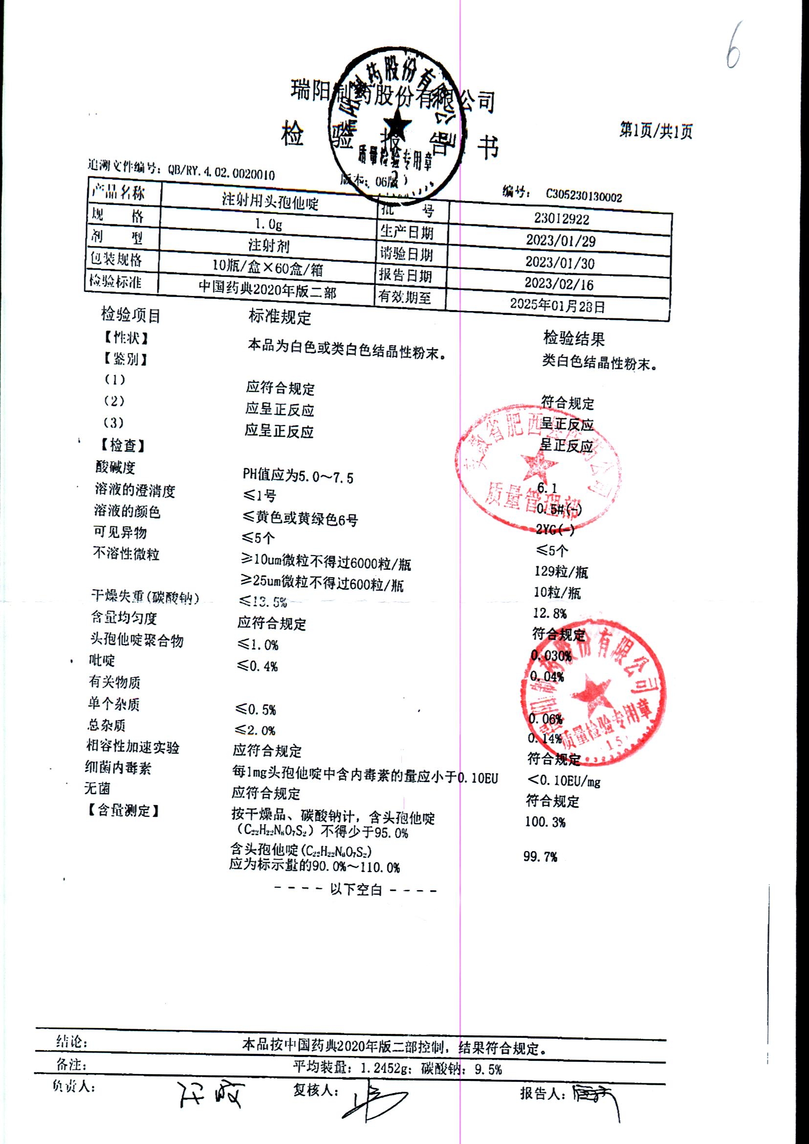 注射用头孢他啶 | 1.0g*10瓶 | 23070521 | 查看详情 |
