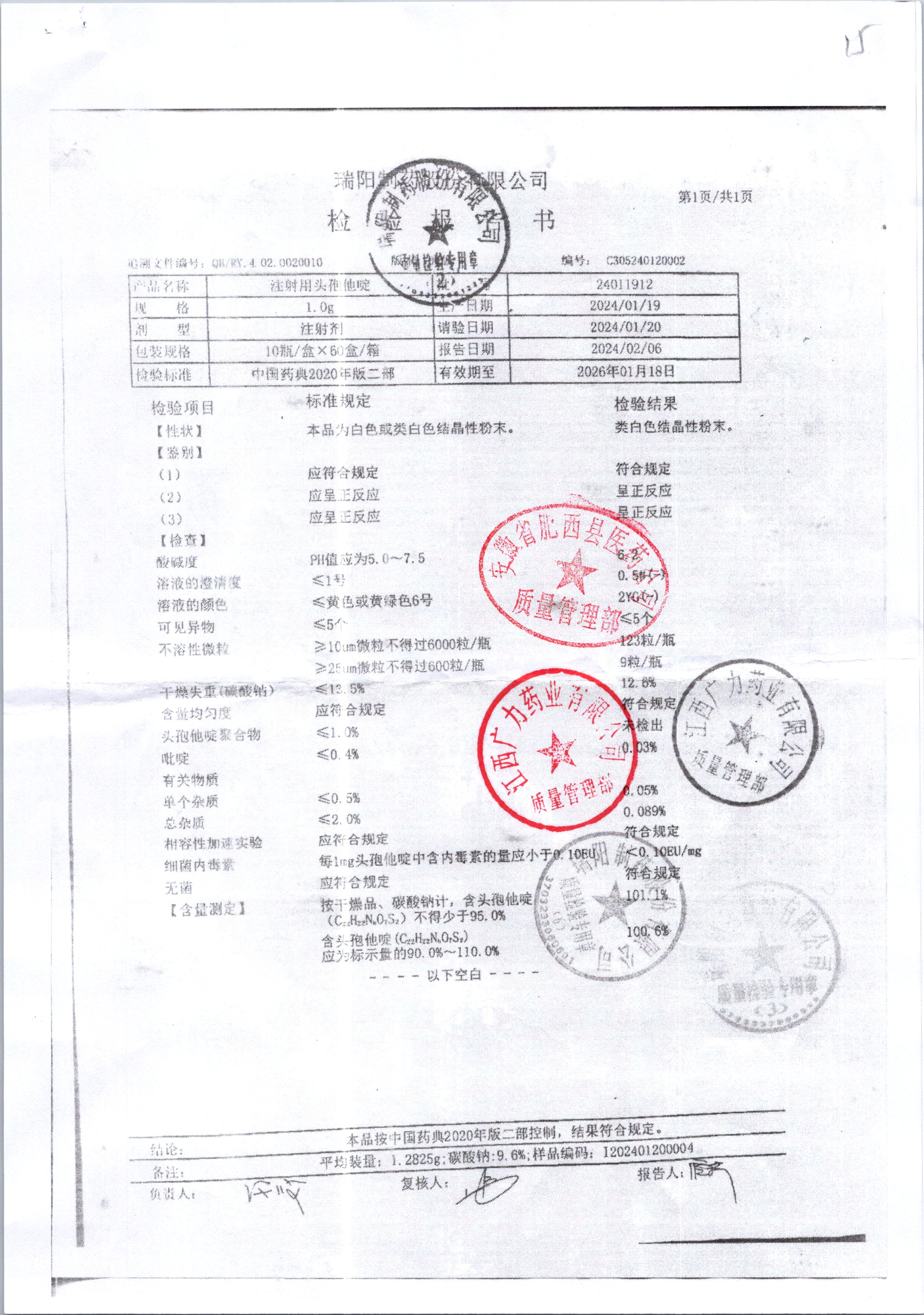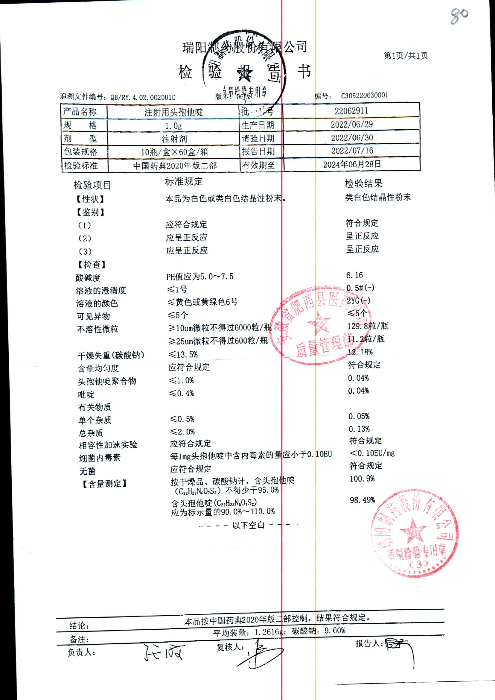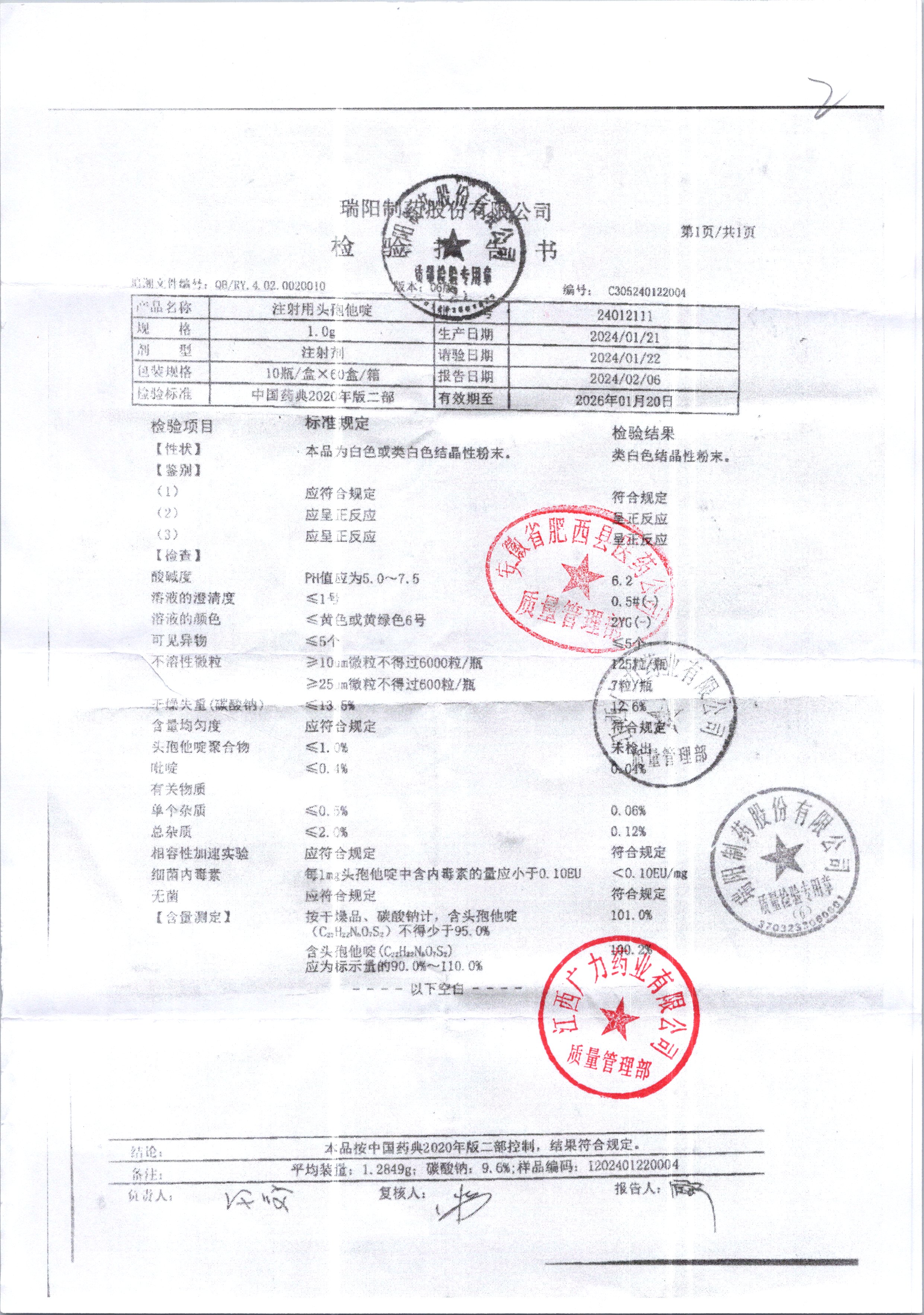 注射用头孢他啶 | 1.0g*10瓶 | 23070521 | 查看详情 |