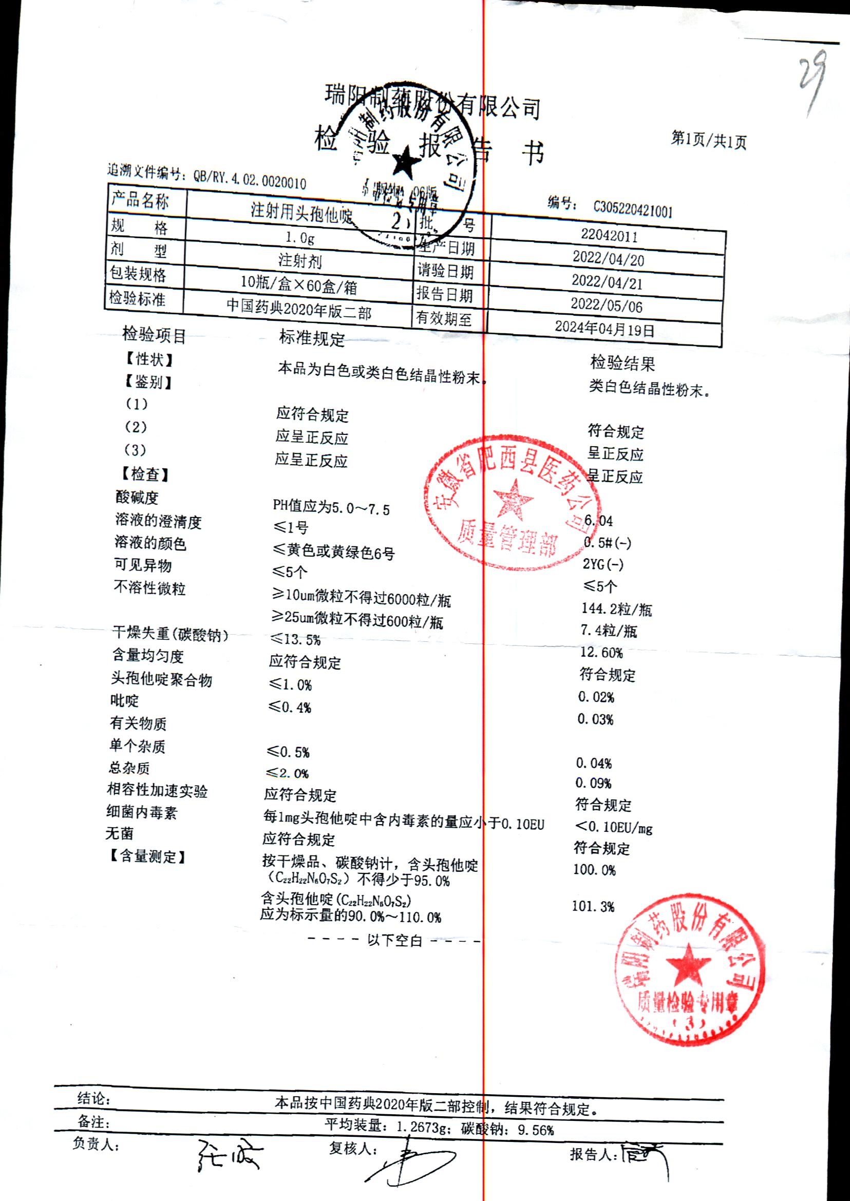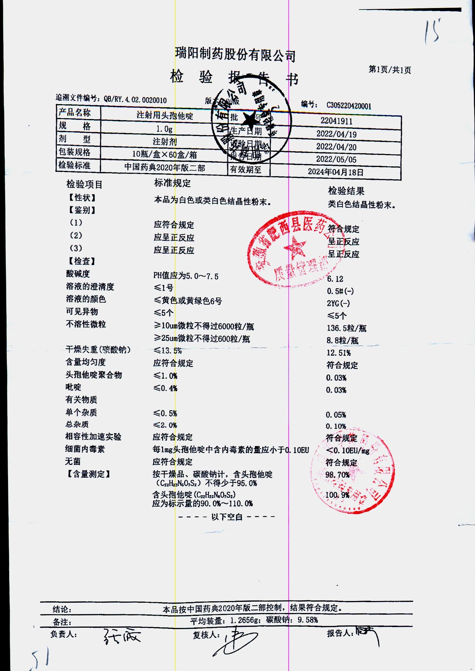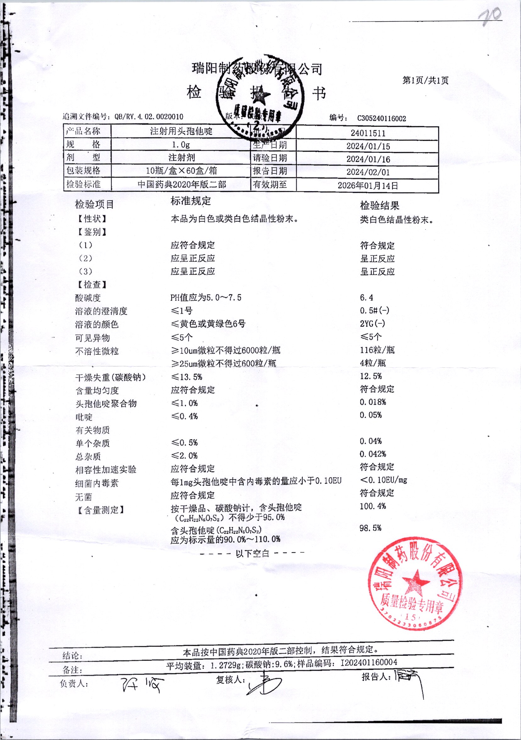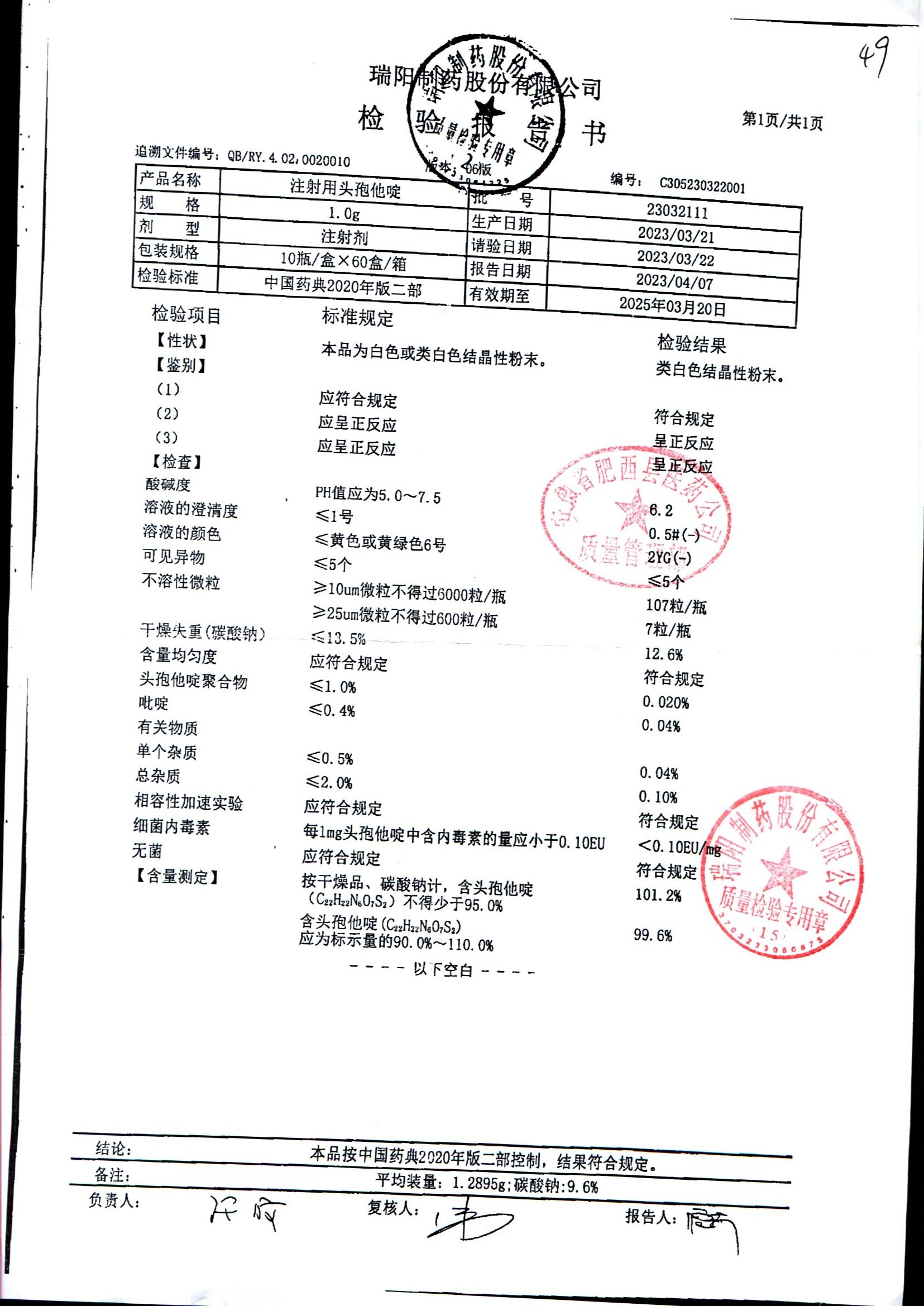 注射用头孢他啶 | 1.0g*10瓶 | 23060421 | 查看详情 |