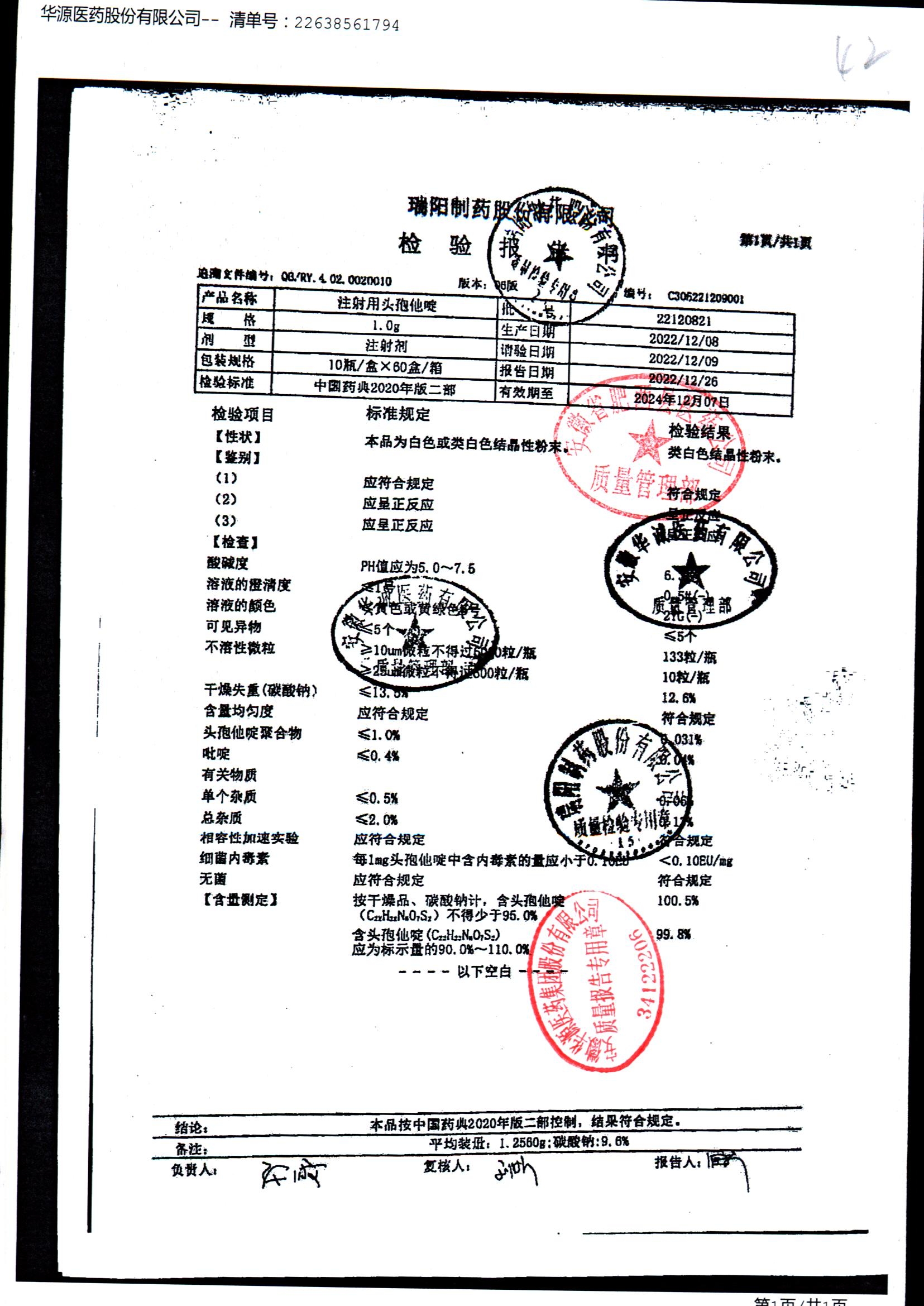 注射用头孢他啶 | 1.0g*10瓶 | 22120821 | 查看详情 |