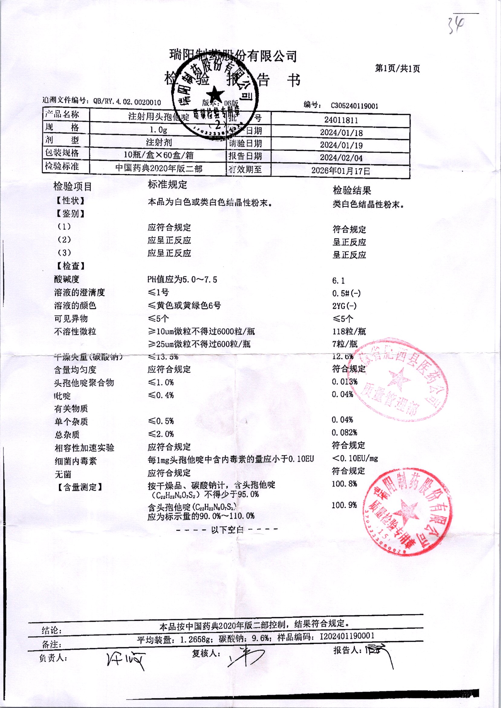 注射用头孢他啶 | 1.0g*10瓶 | 24011811 | 查看详情 |