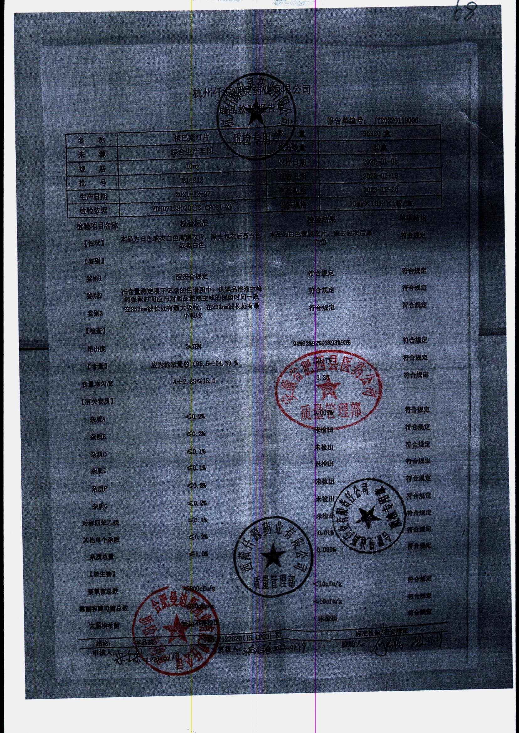 药检报告