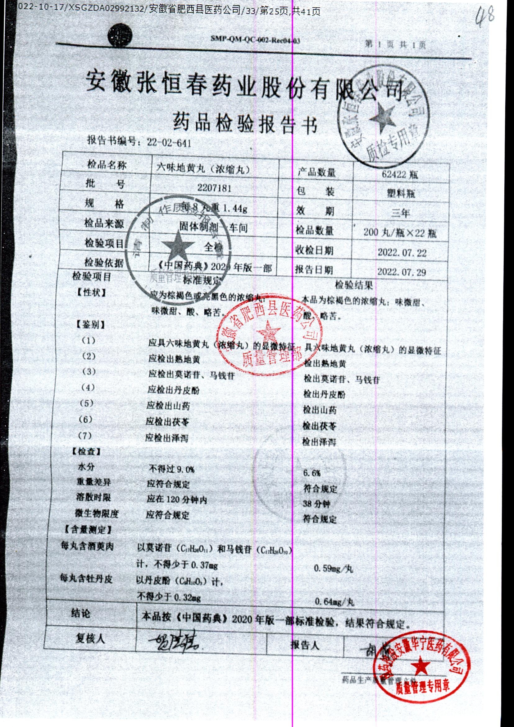 六味地黄丸 | 1.44g*200丸 | 2205122 | 查看详情 |