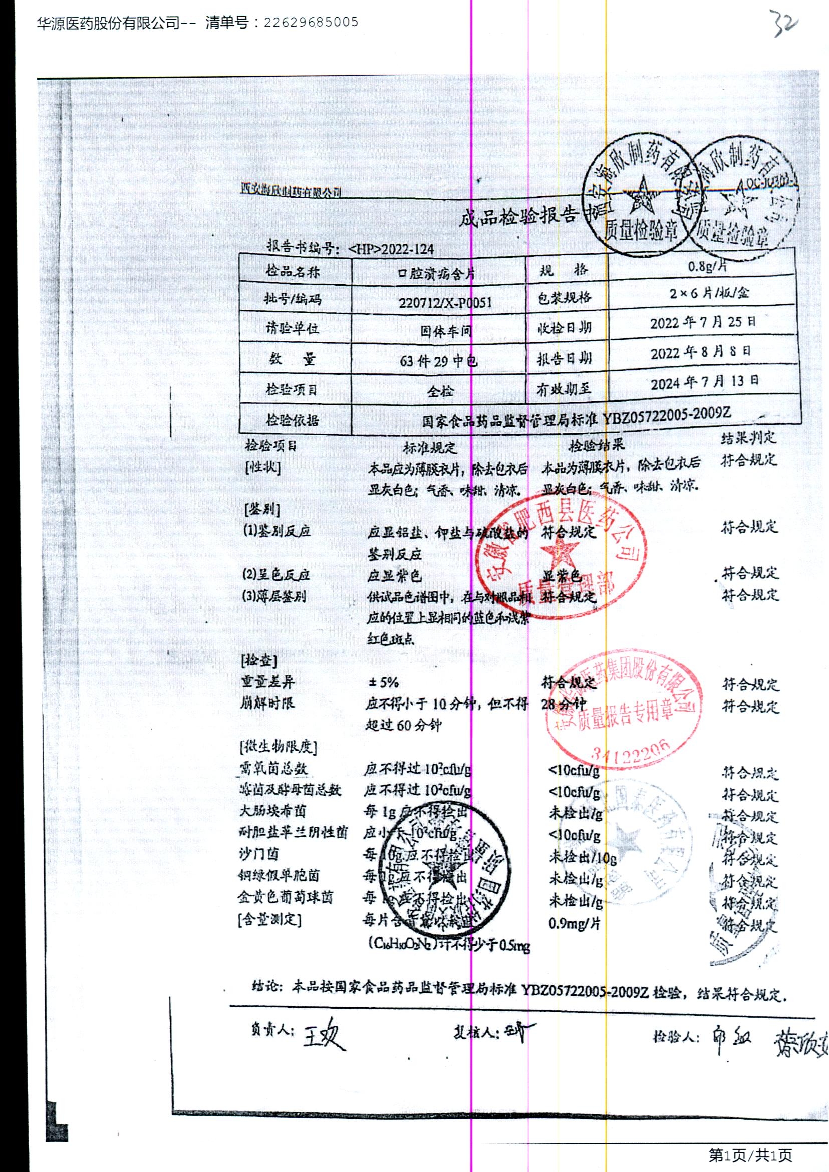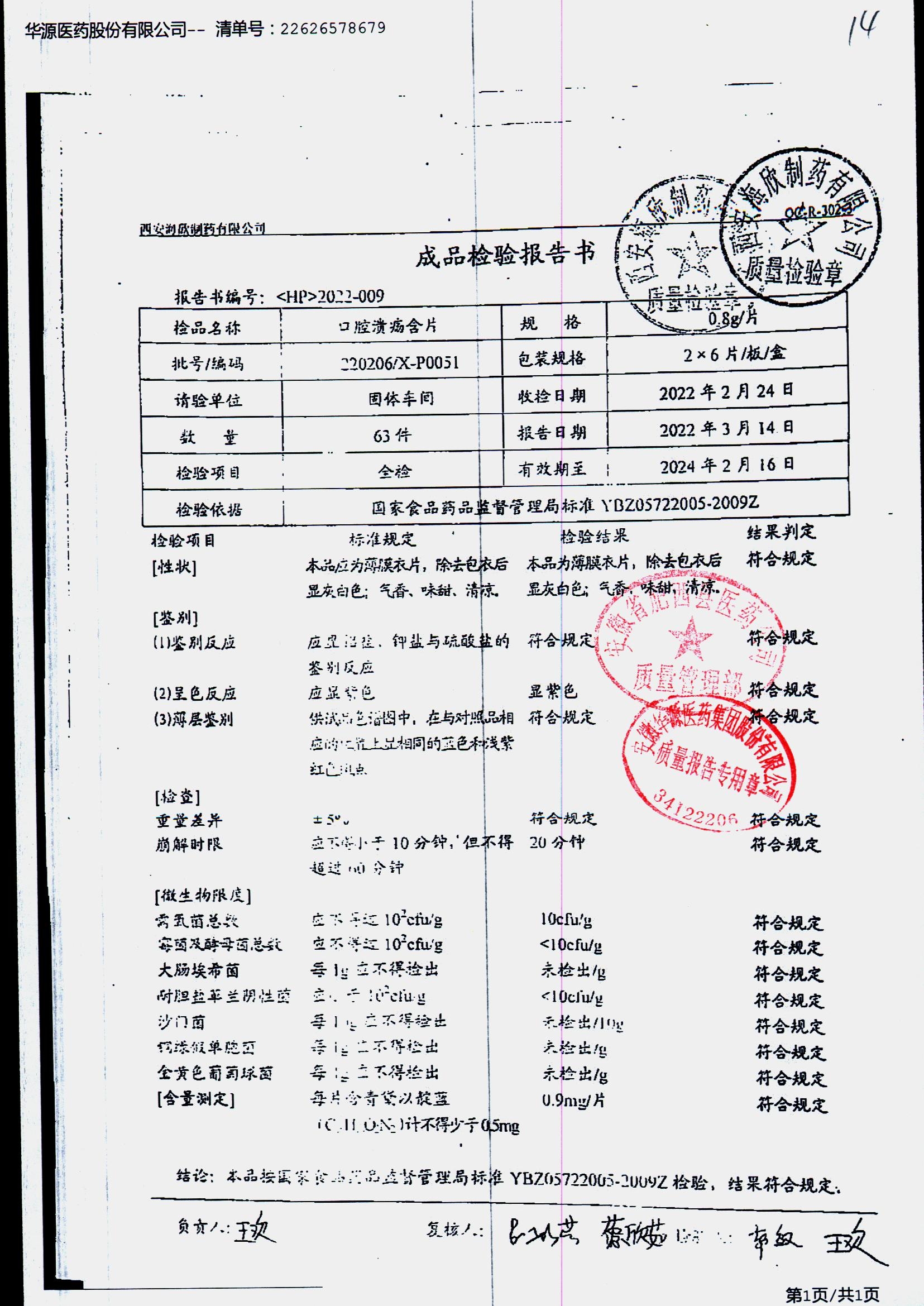 药检报告