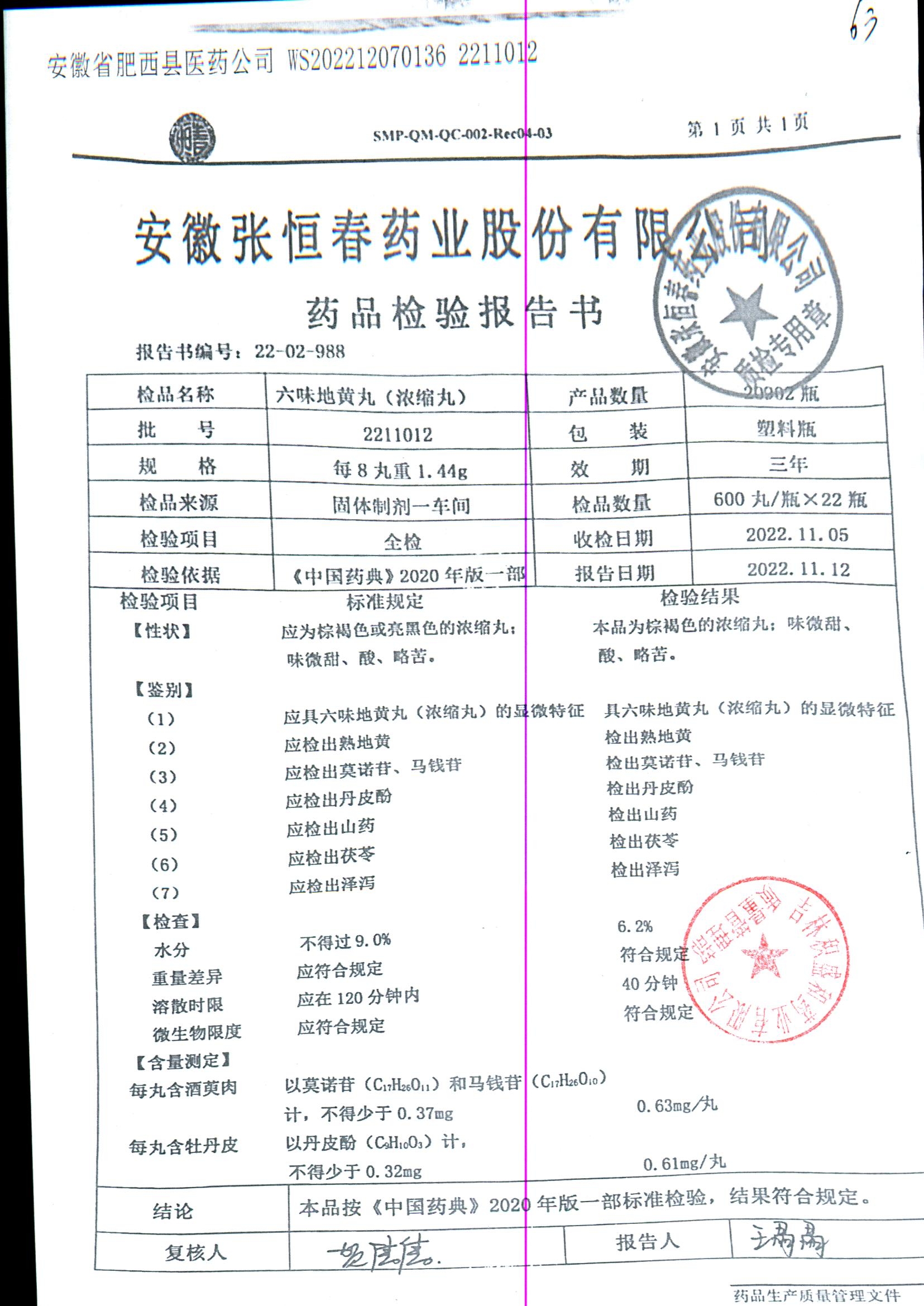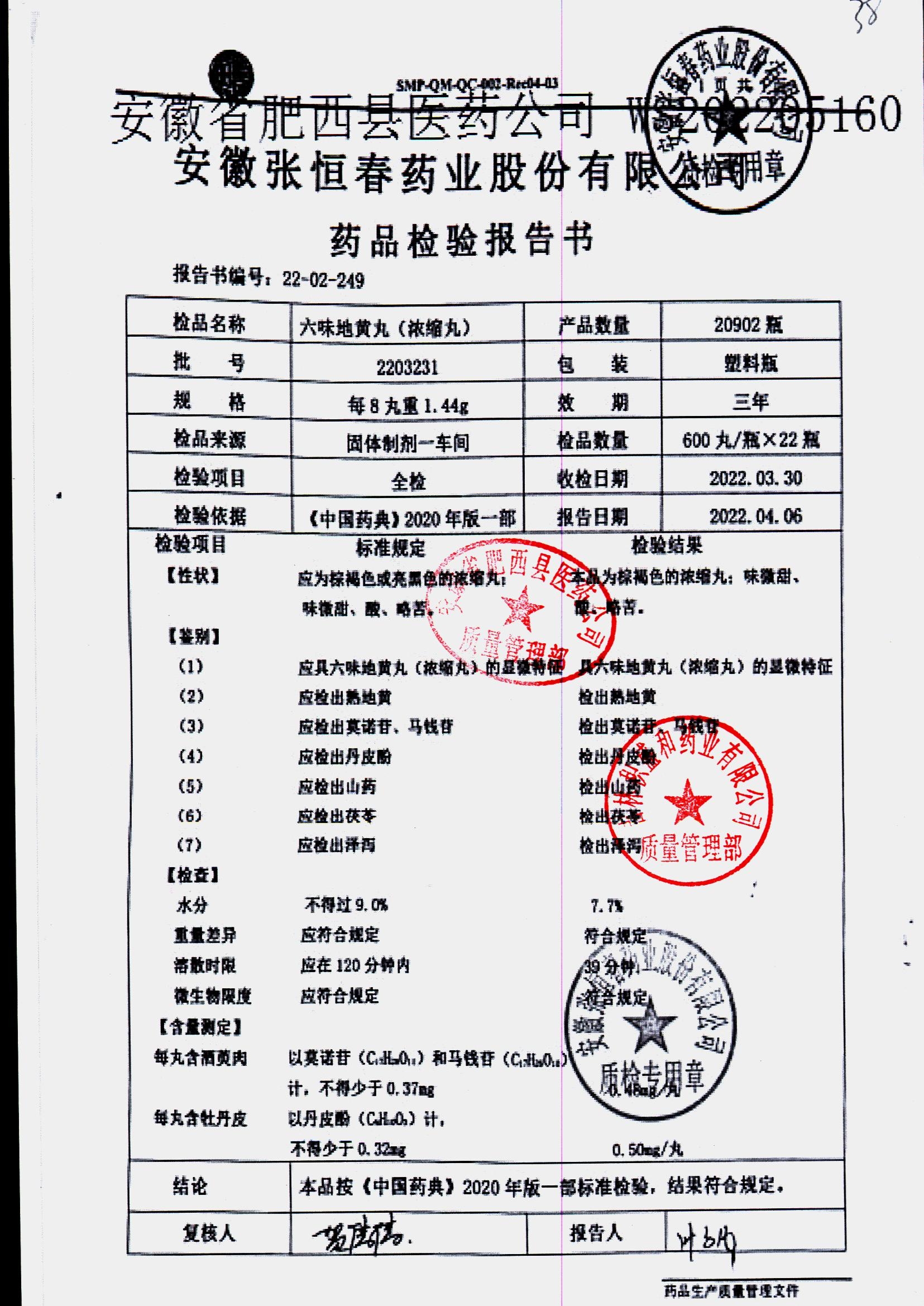 六味地黄丸(浓缩丸) | 1.44g*600丸 | 2203231 | 查看详情 |