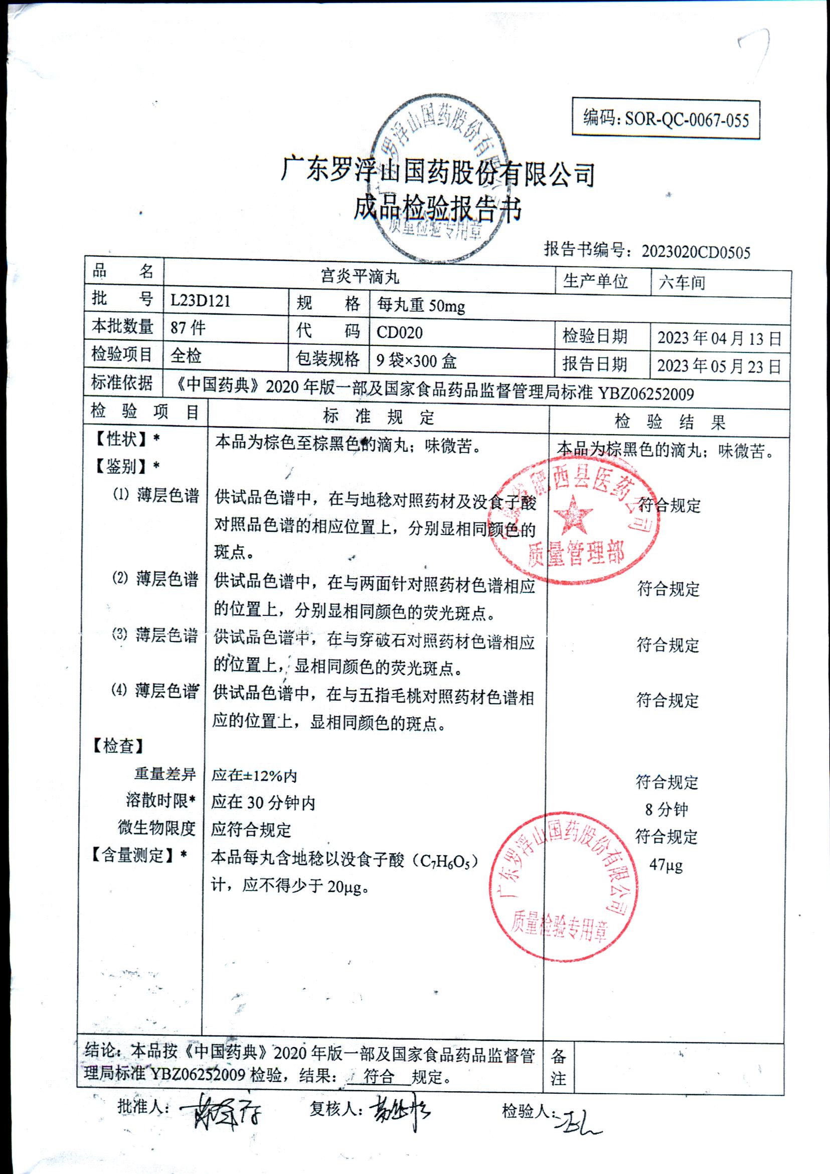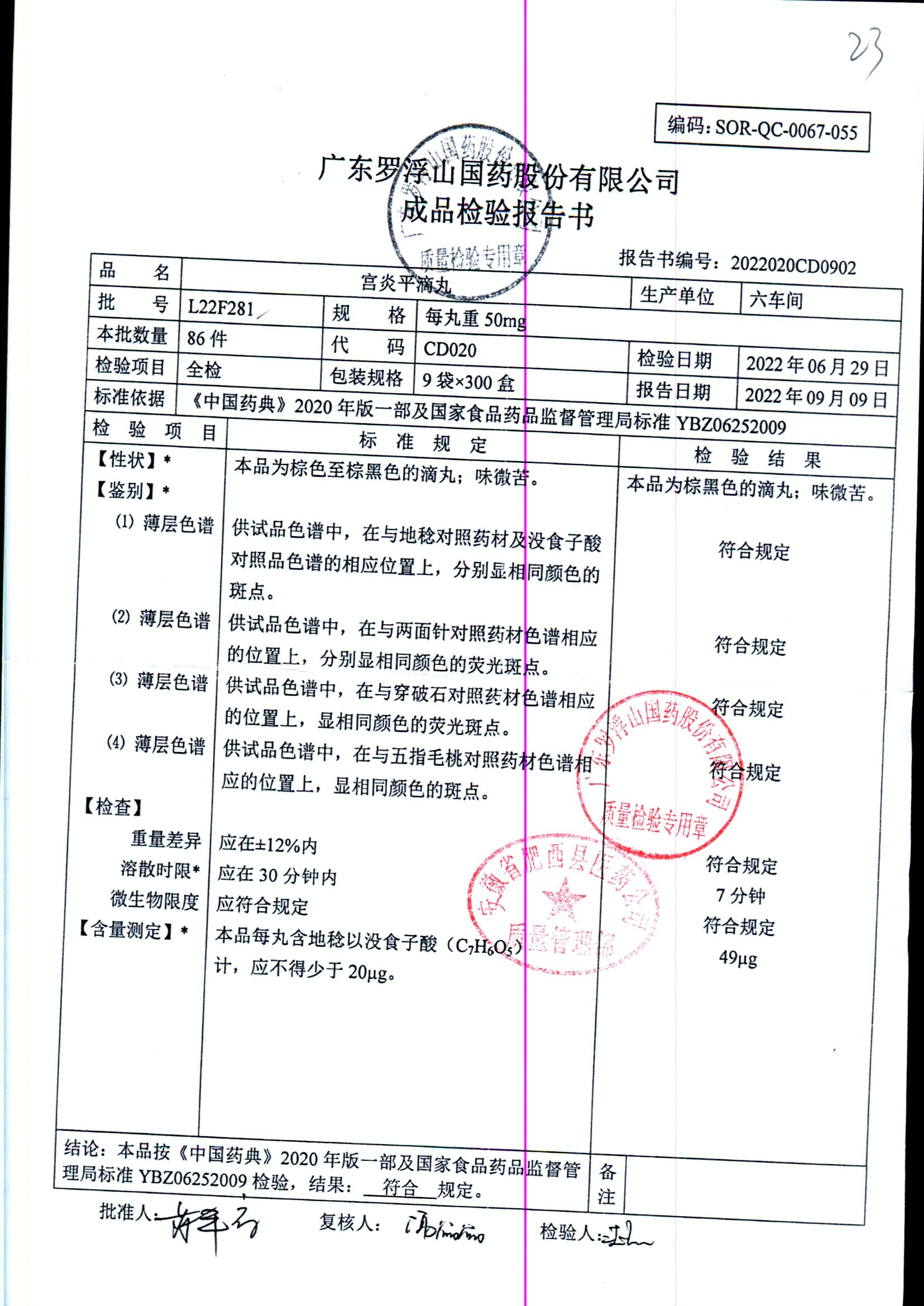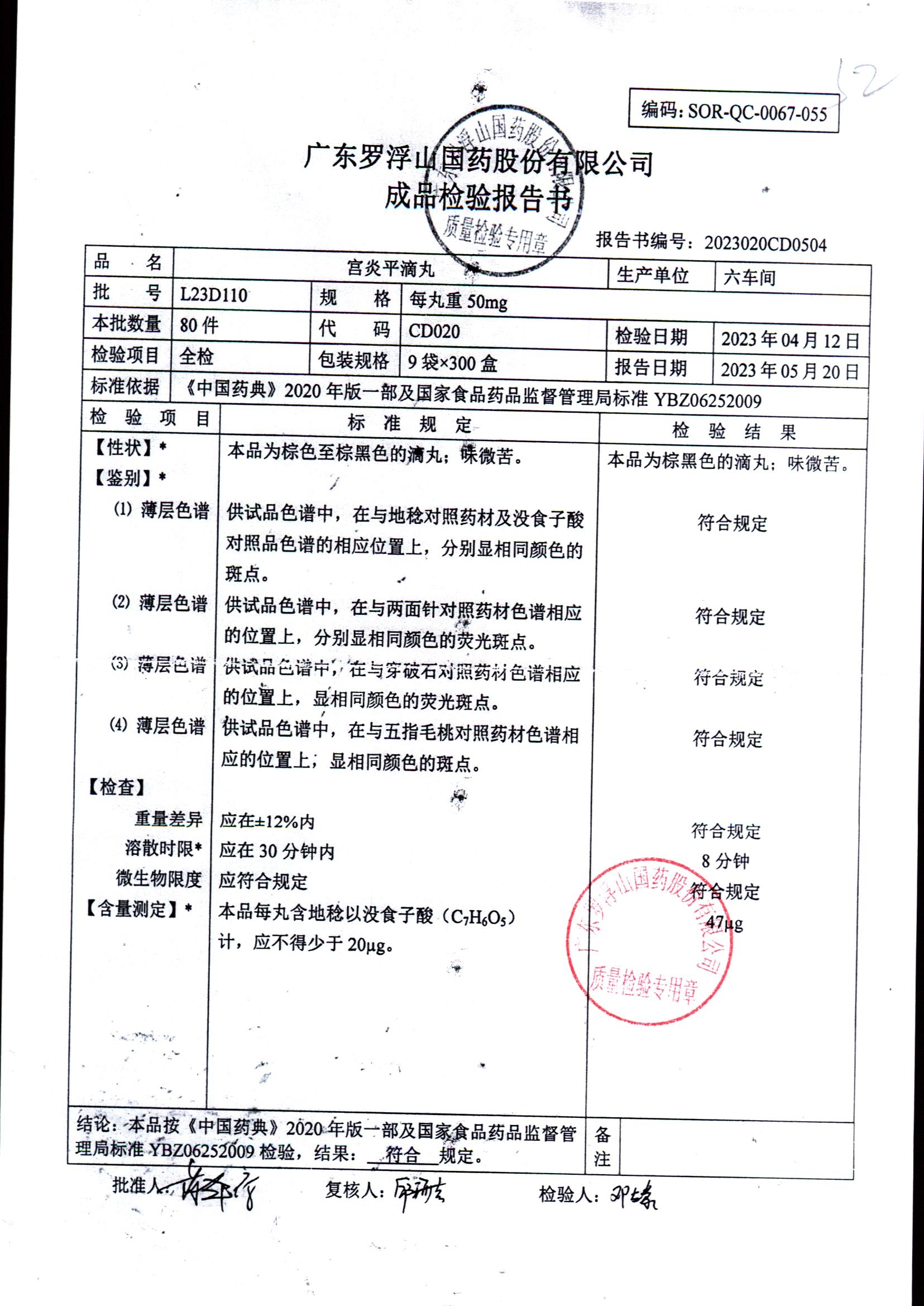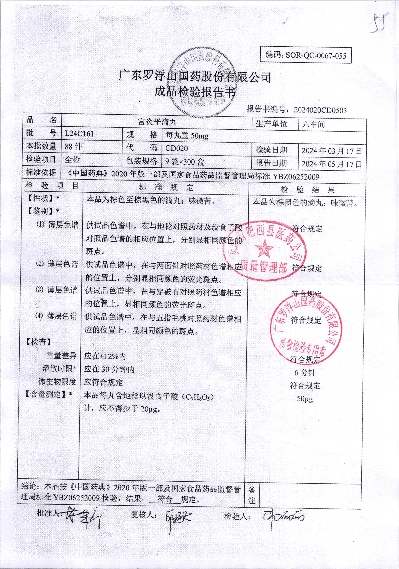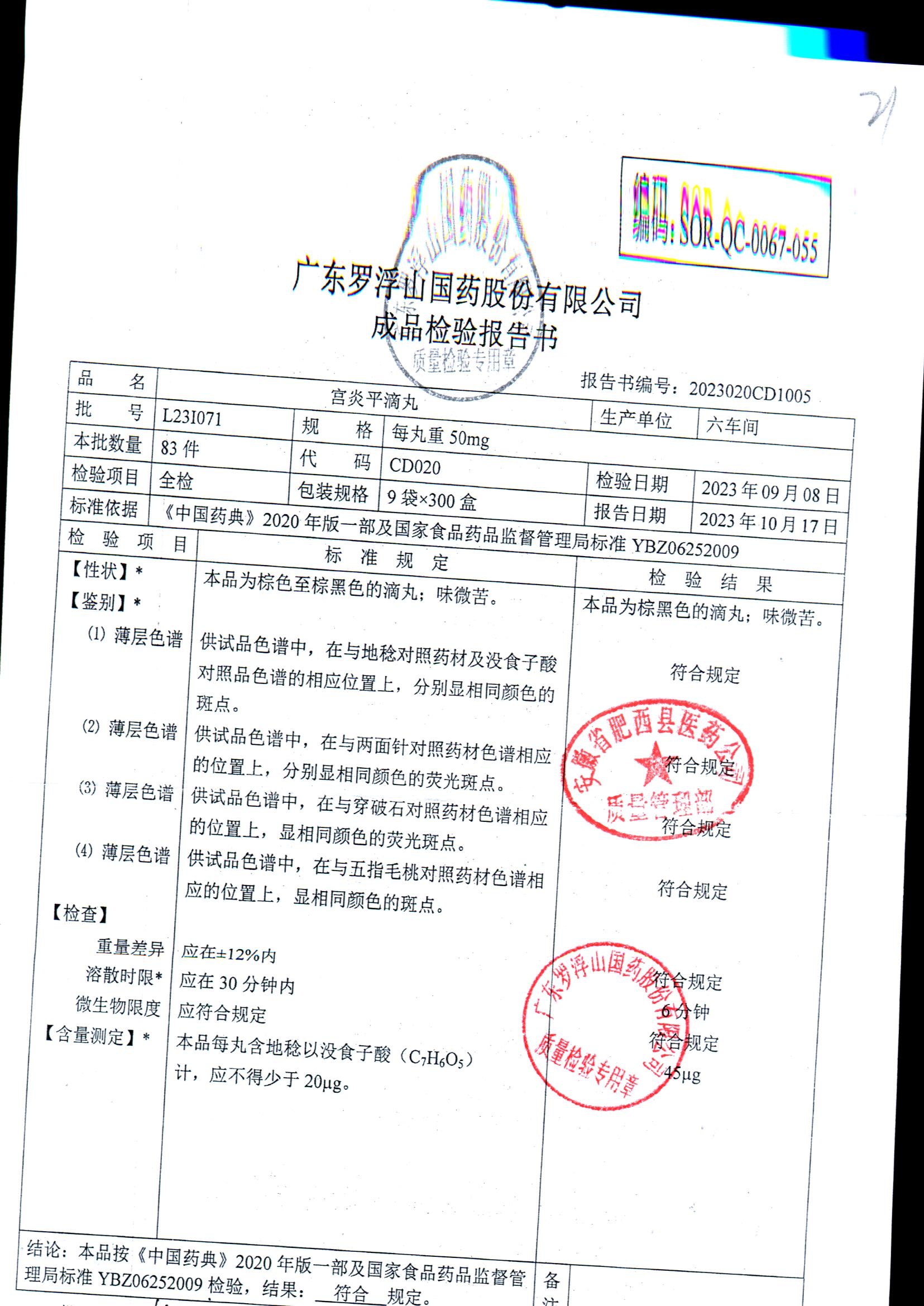 宫炎平滴丸 | 50mg*9袋 | L221111 | 查看详情 |