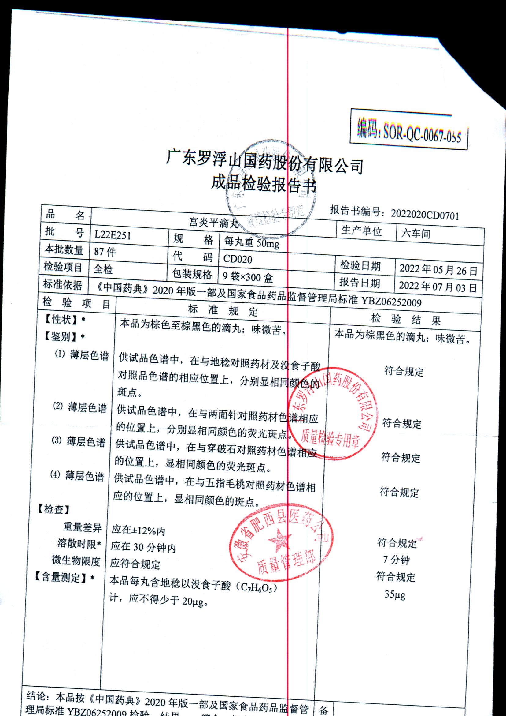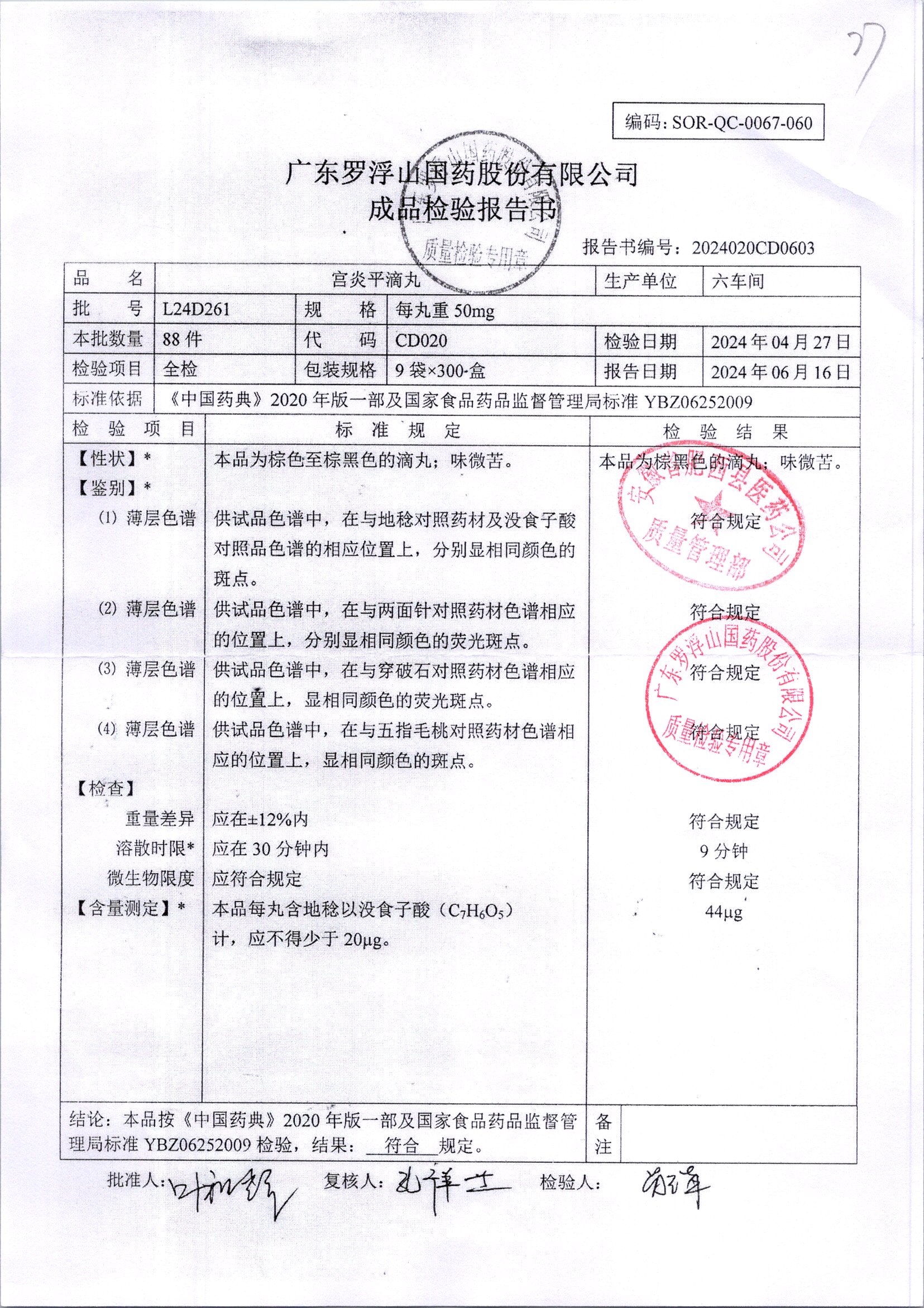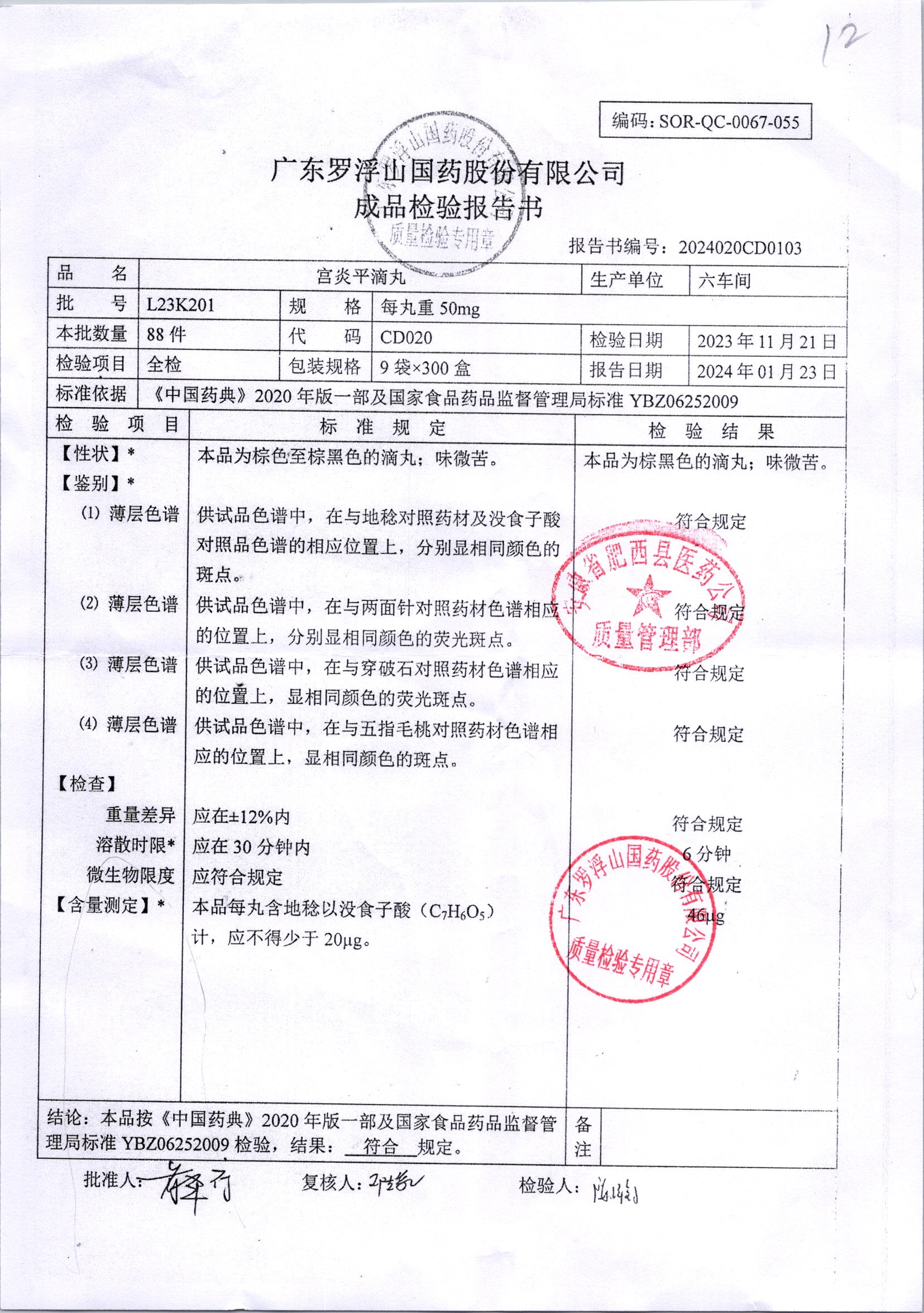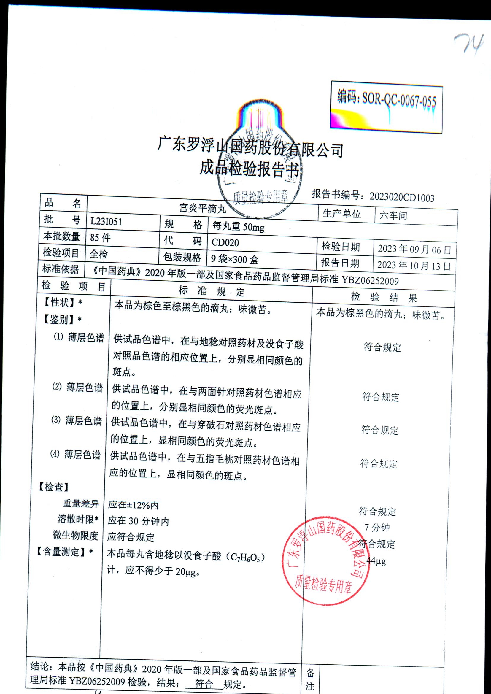 宫炎平滴丸 | 50mg*9袋 | L221111 | 查看详情 |