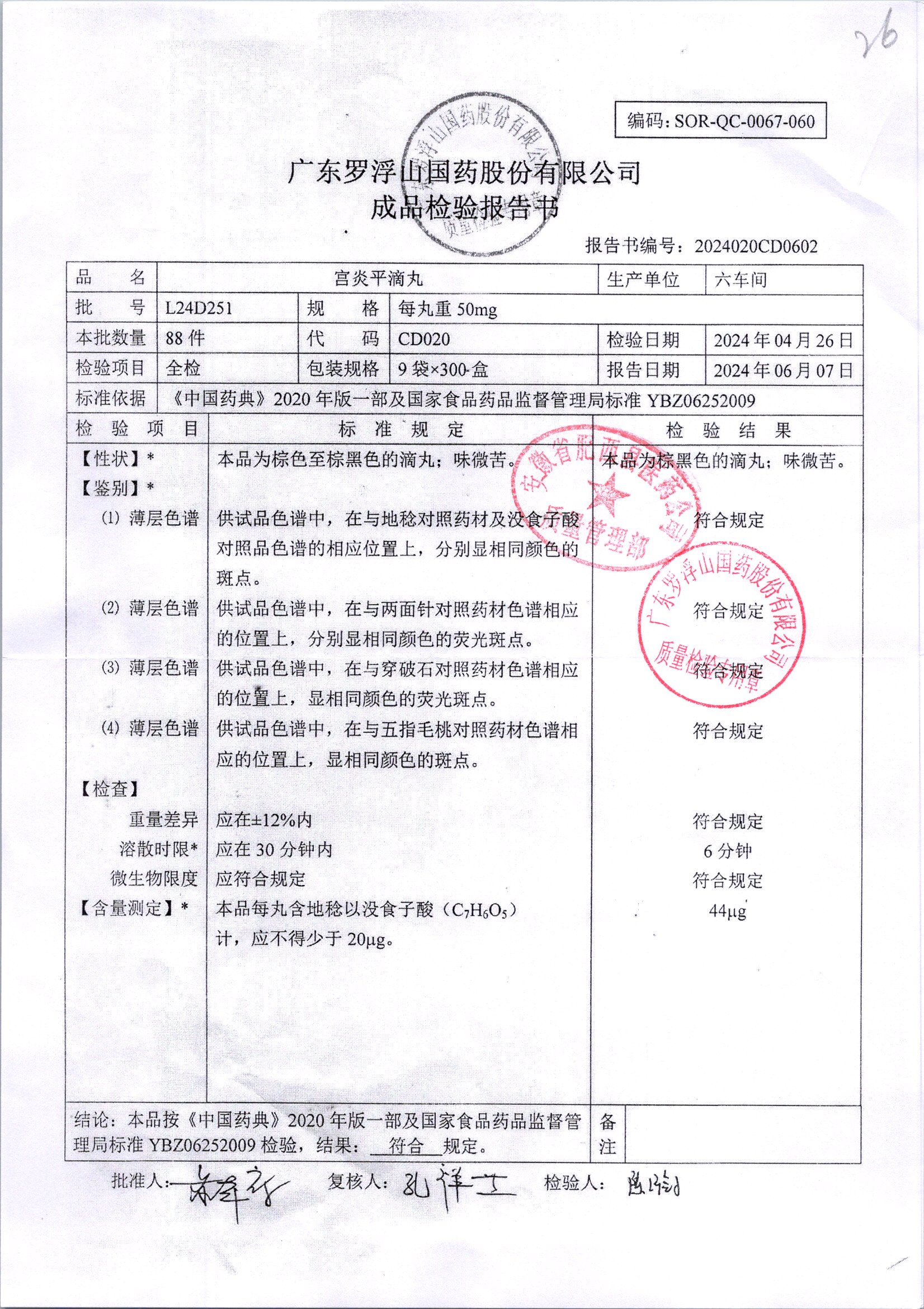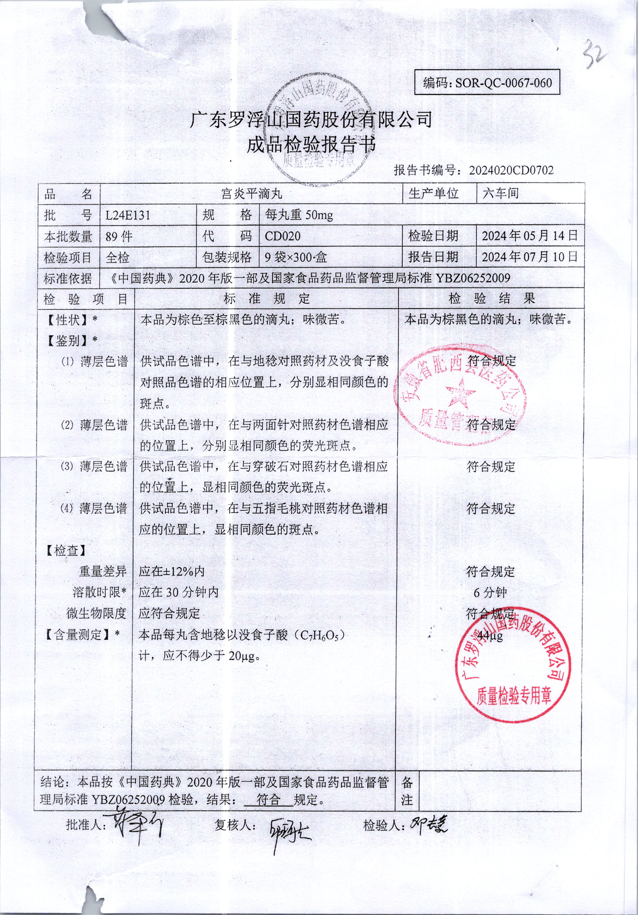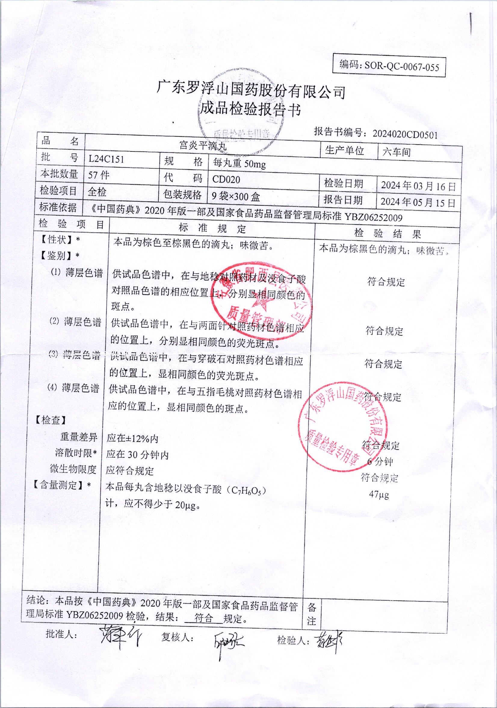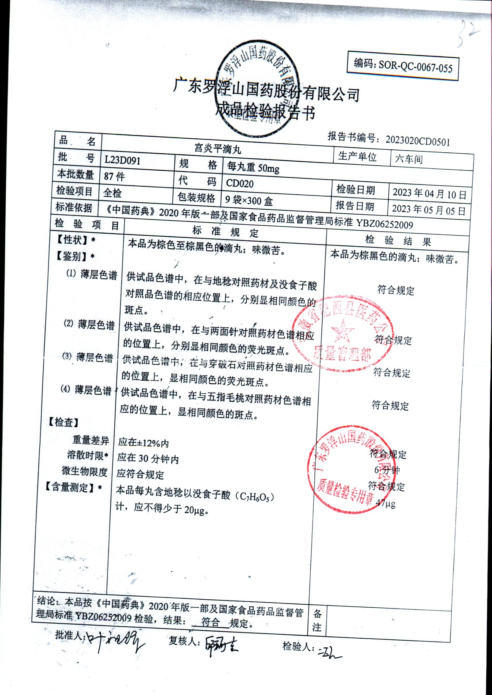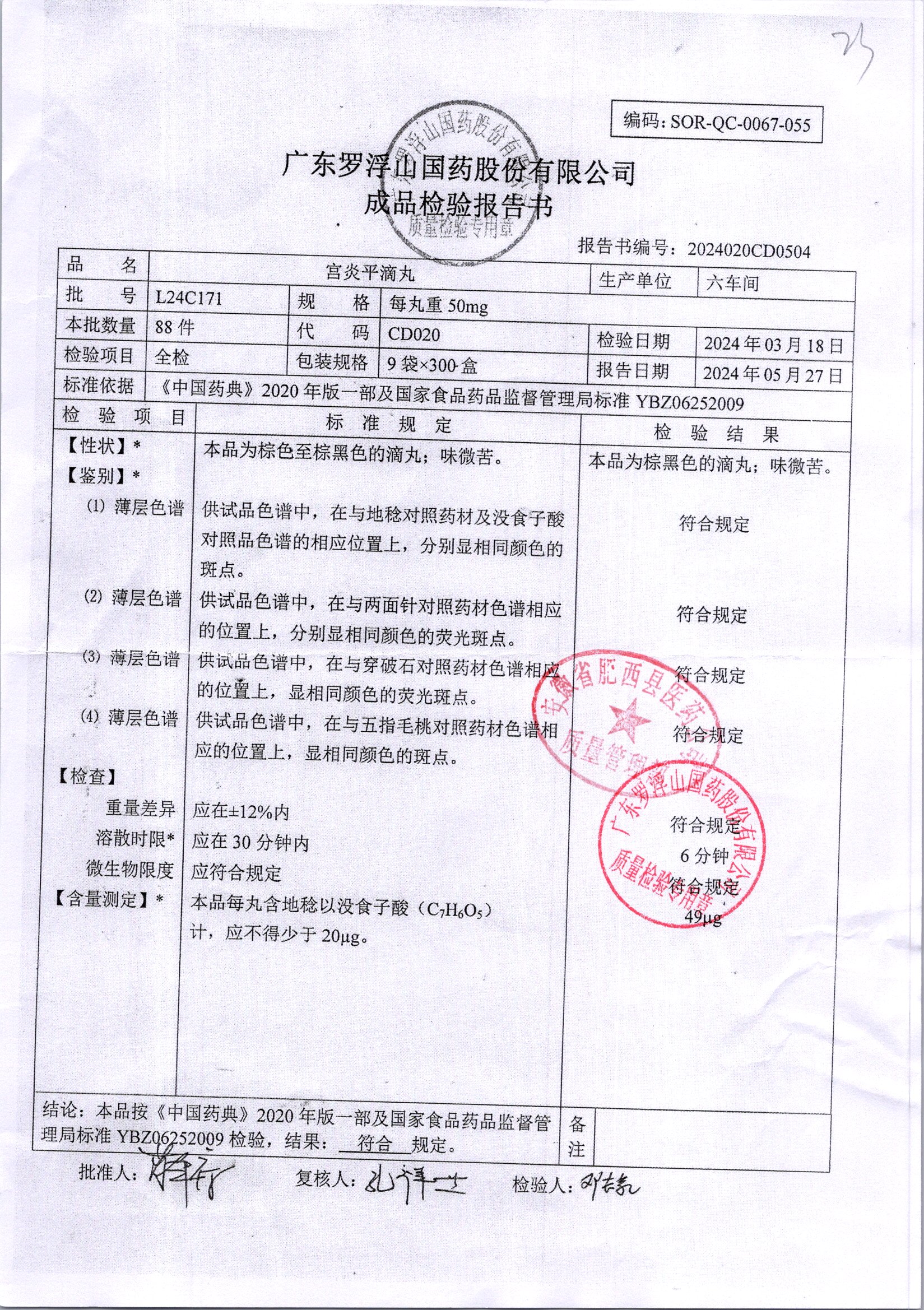 宫炎平滴丸 | 50mg*9袋 | L221111 | 查看详情 |