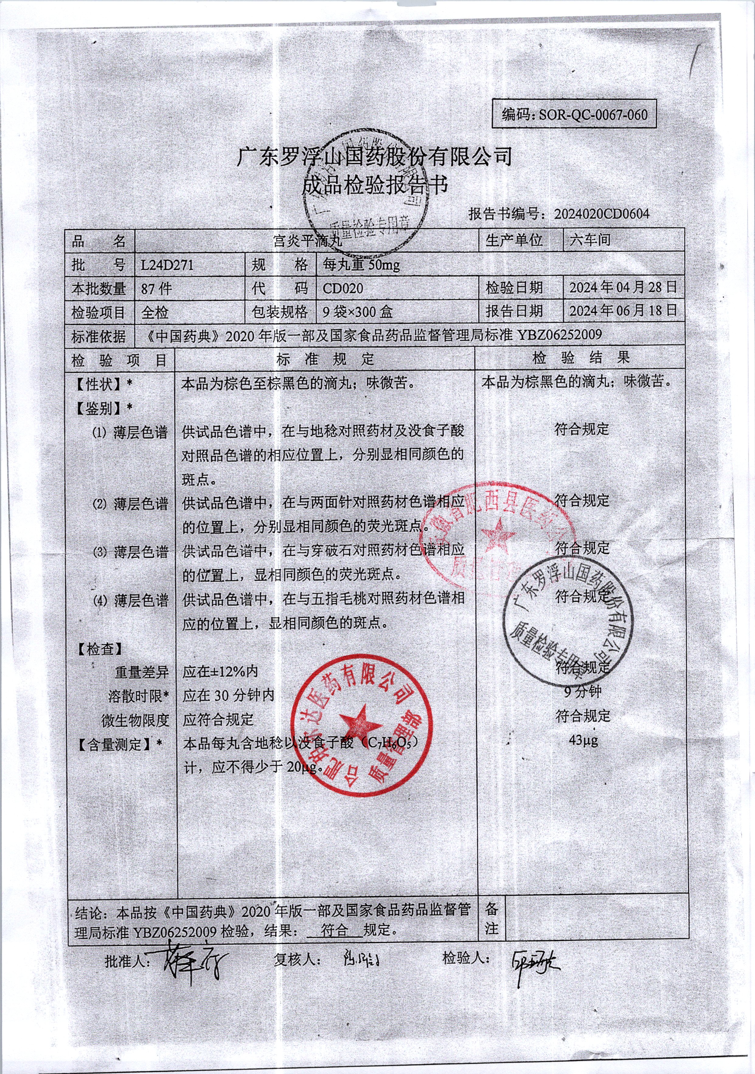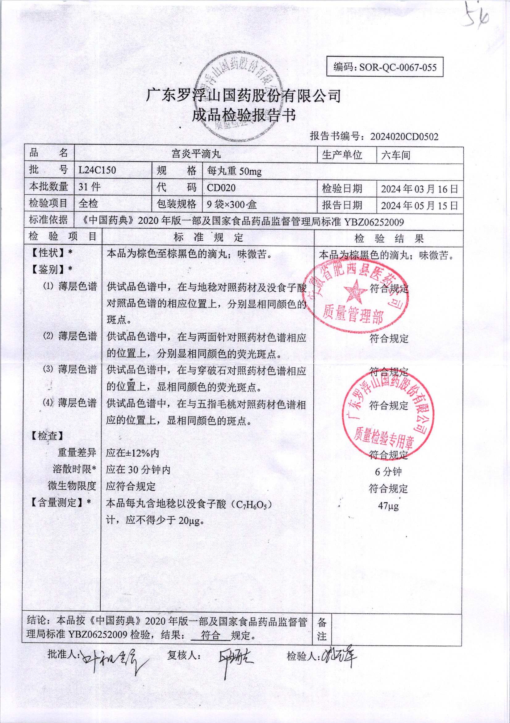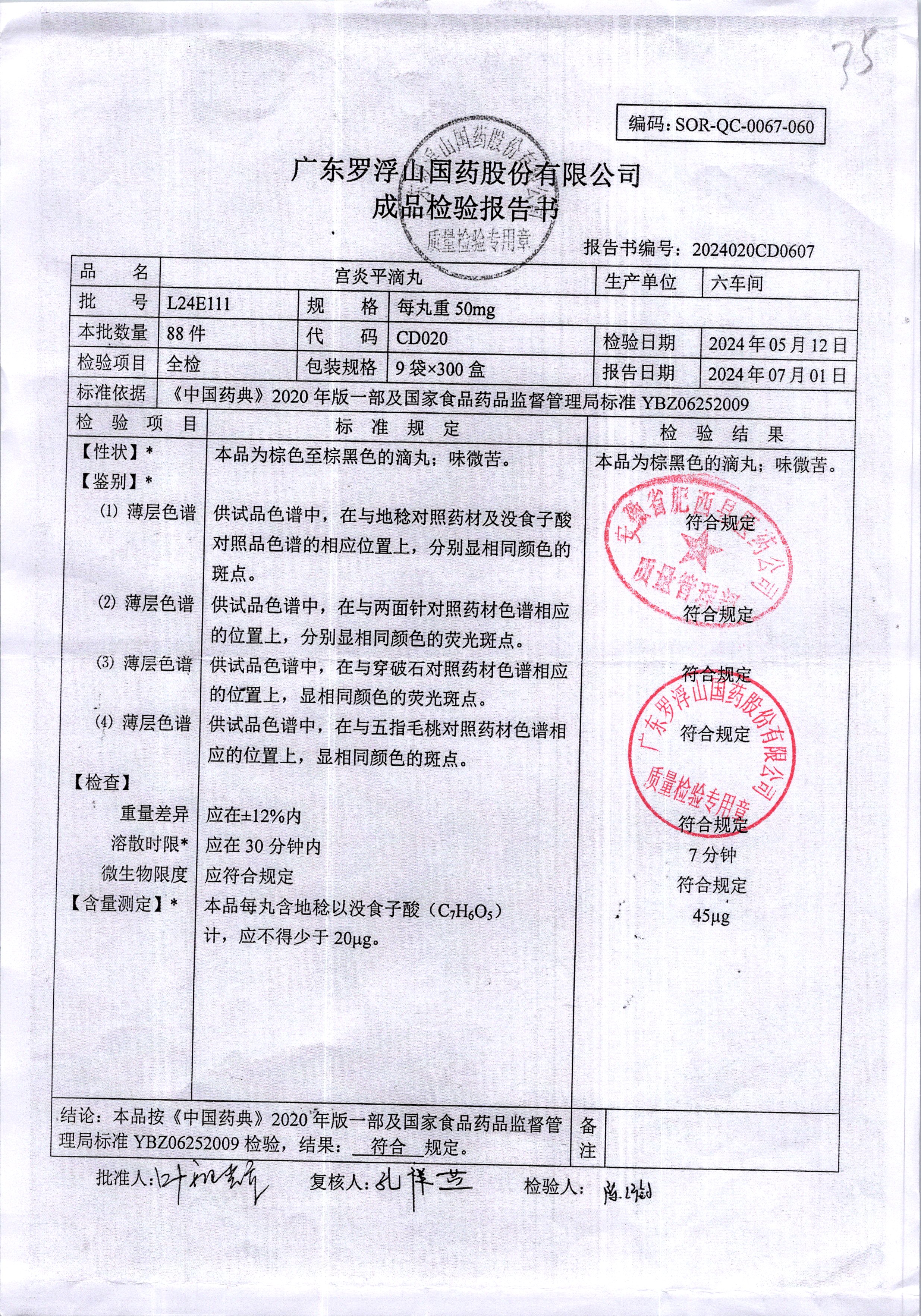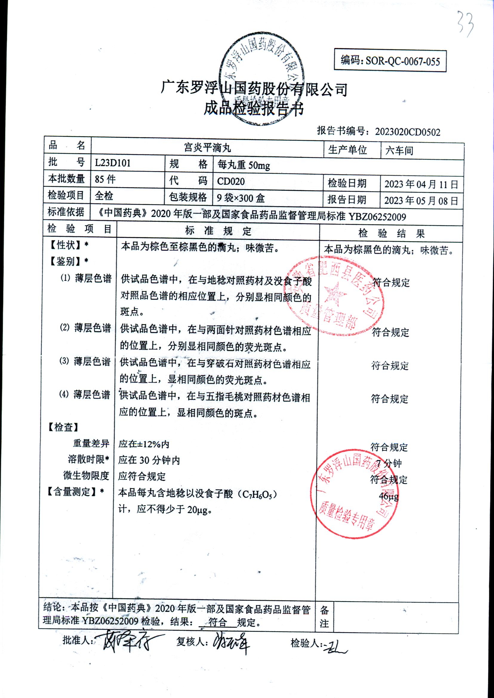 宫炎平滴丸 | 50mg*9袋 | L221111 | 查看详情 |