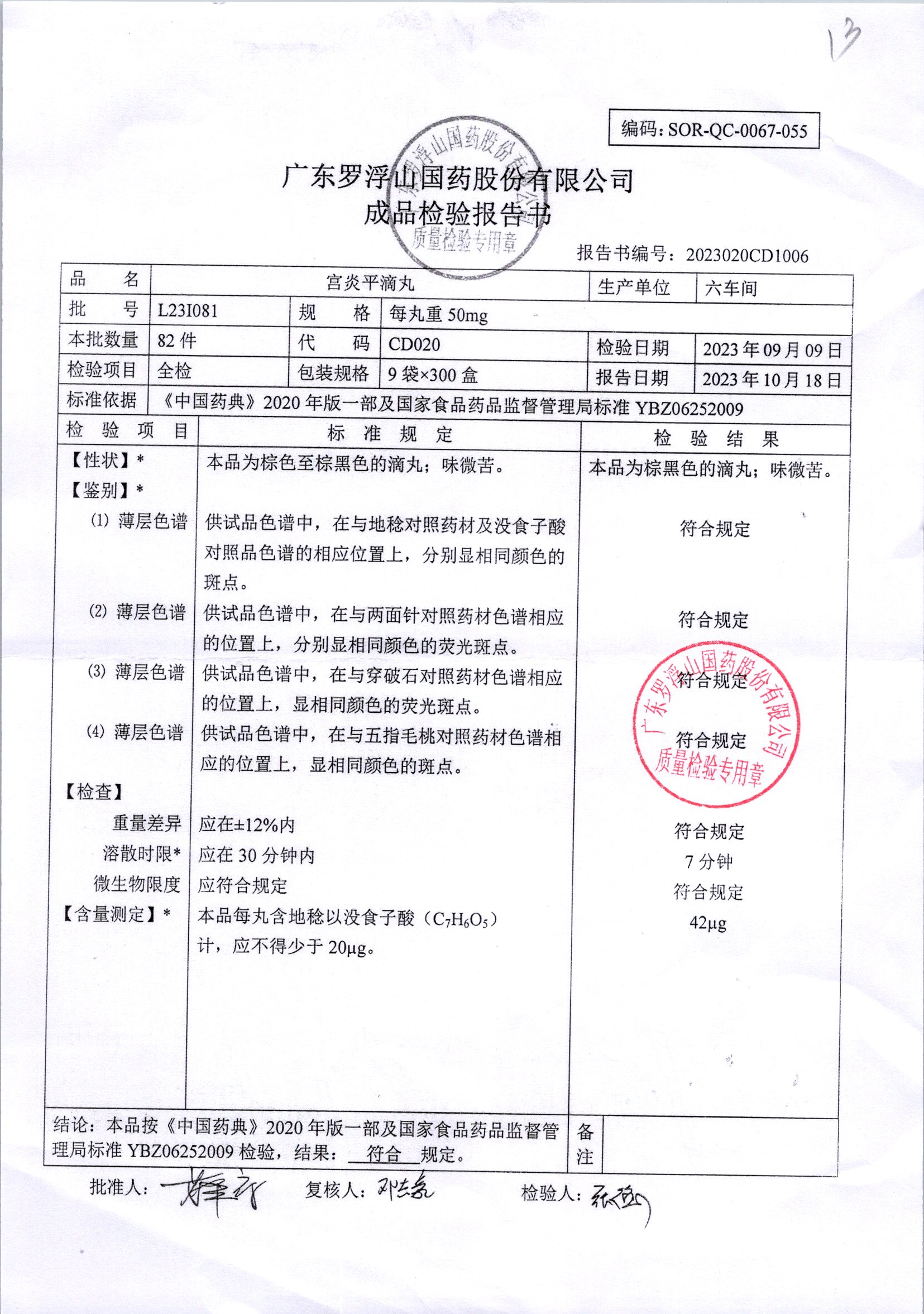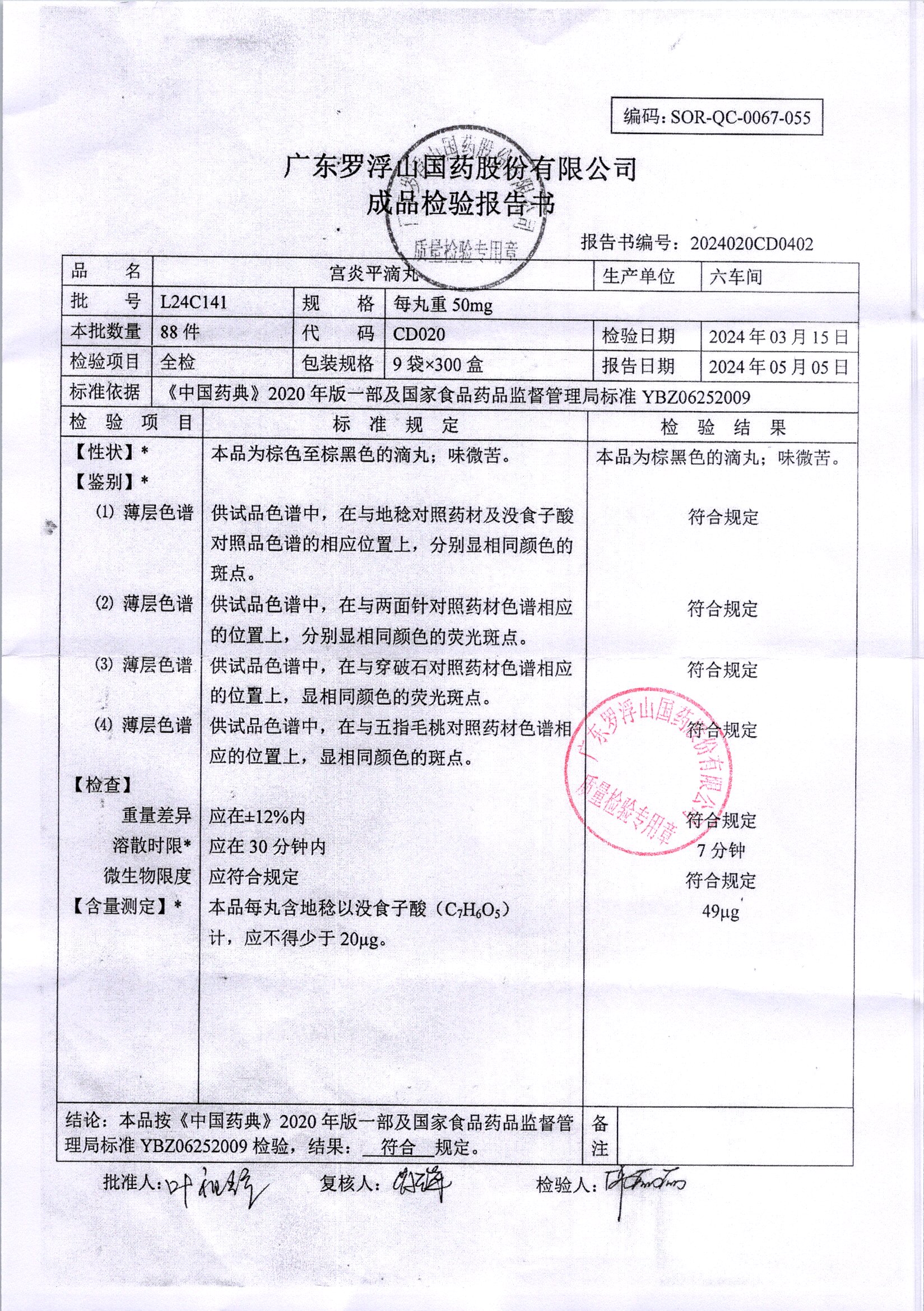 宫炎平滴丸 | 50mg*9袋 | L22F281 | 查看详情 |