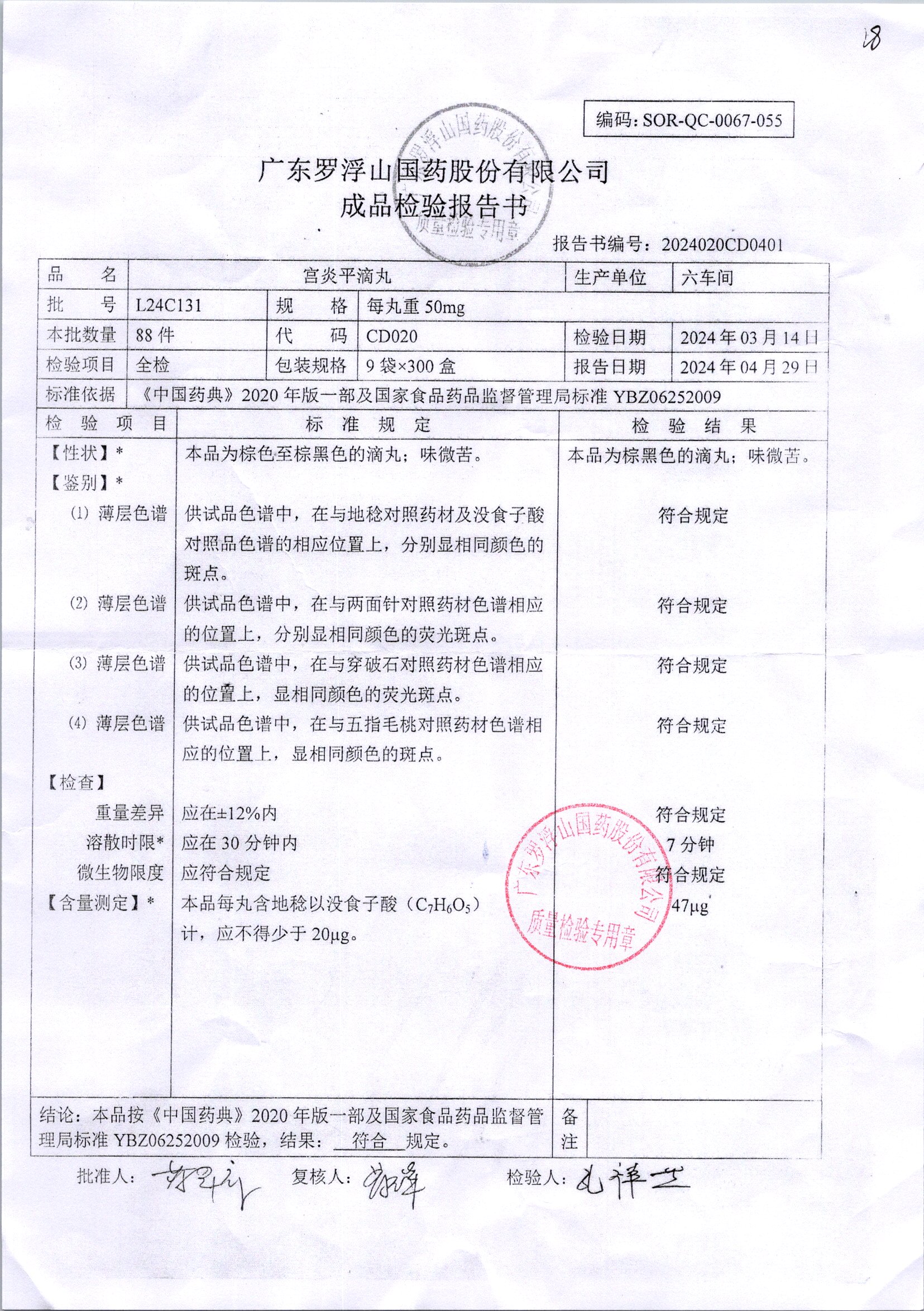 宫炎平滴丸 | 50mg*9袋 | L24C171 | 查看详情 |