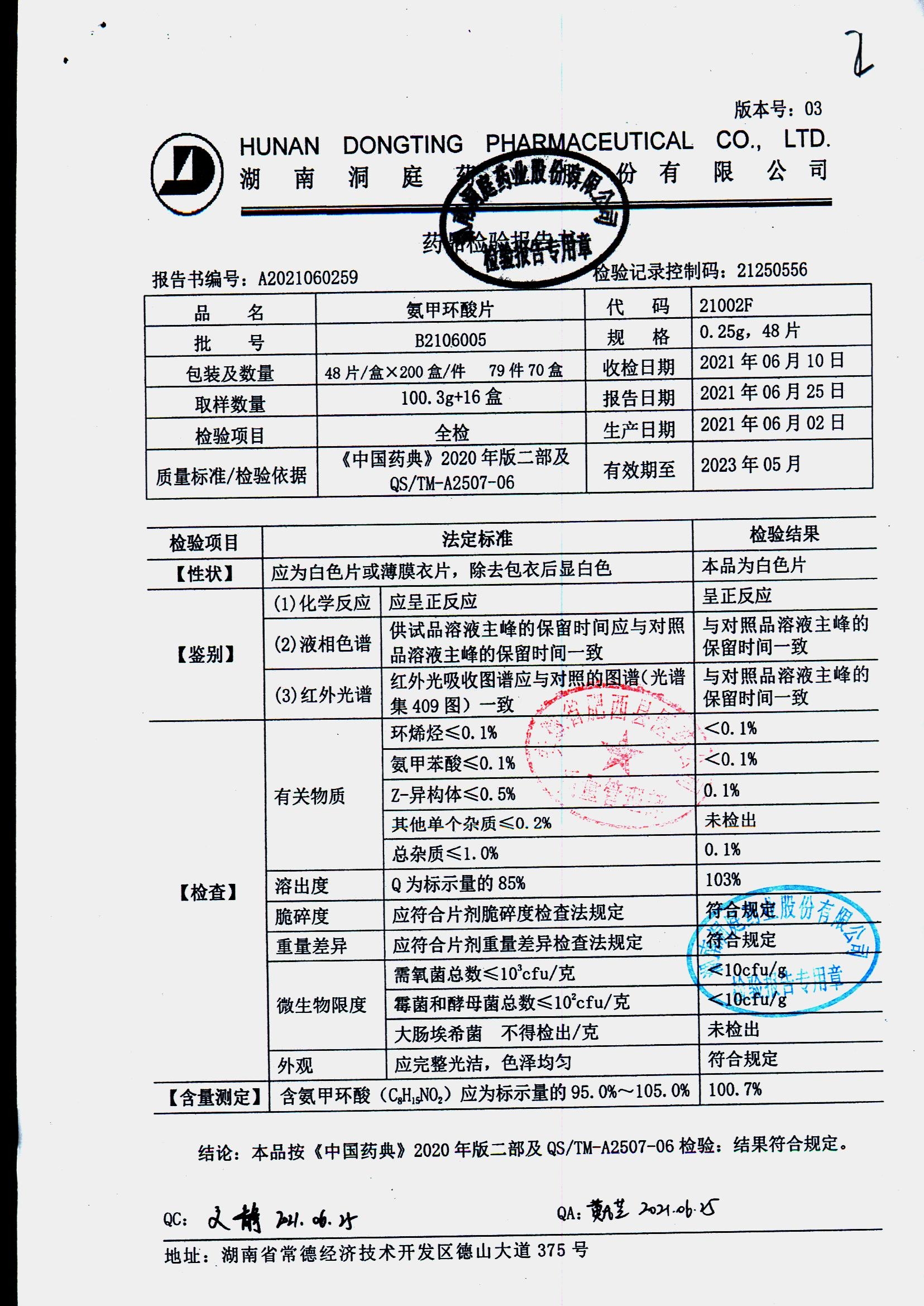 氨甲环酸片 | 0.25g*48片 | B2106005 | 查看详情 |