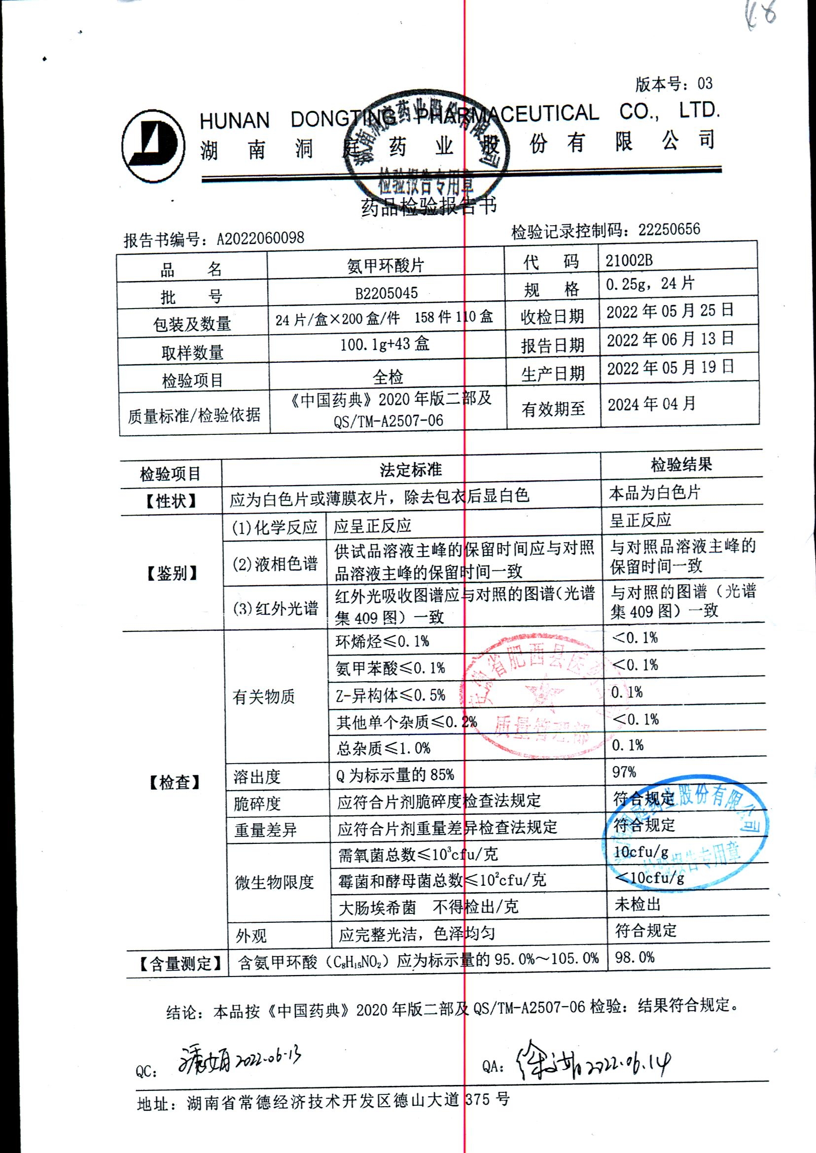 氨甲环酸片 | 0.25g*48片 | B2205045 | 查看详情 |