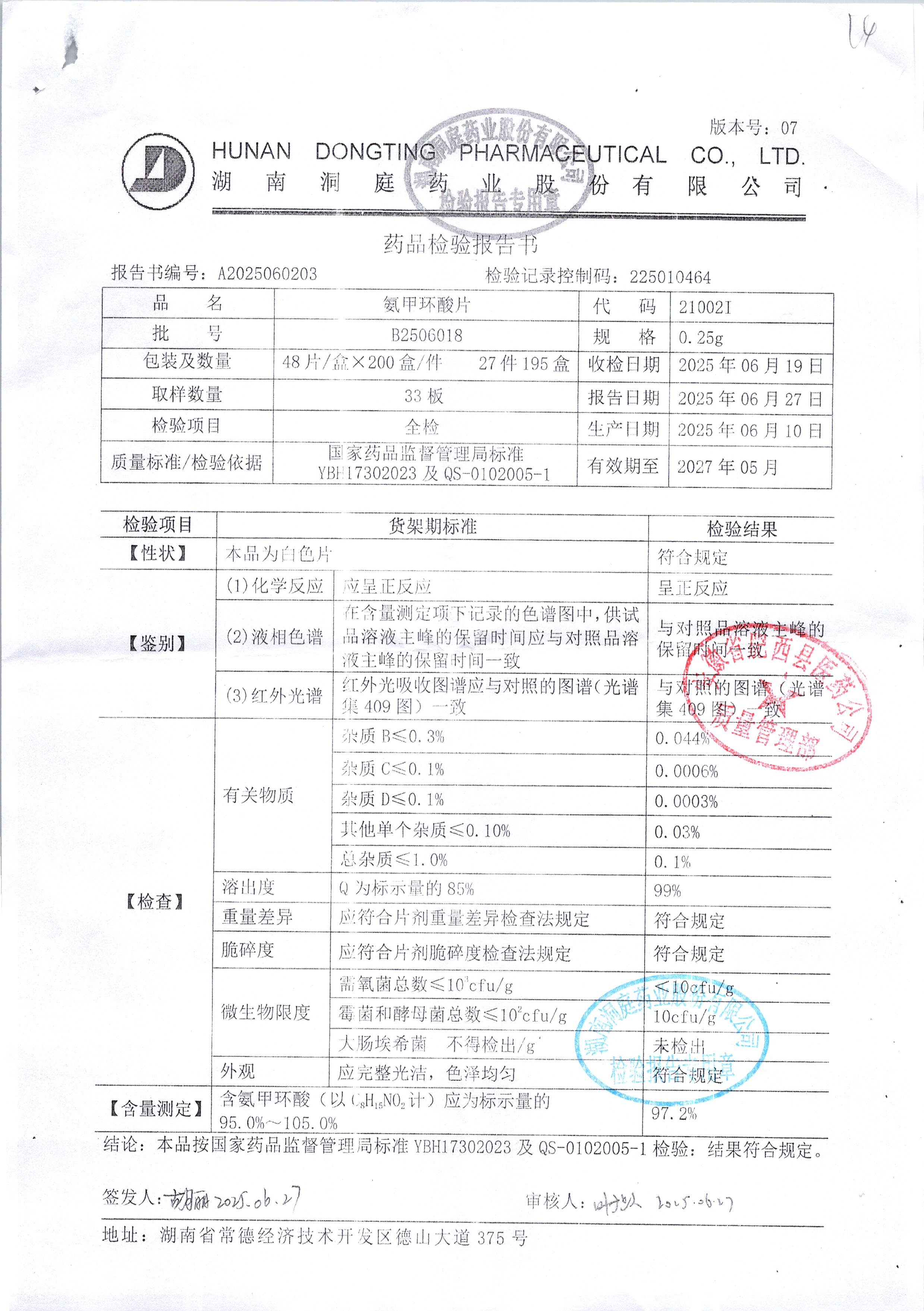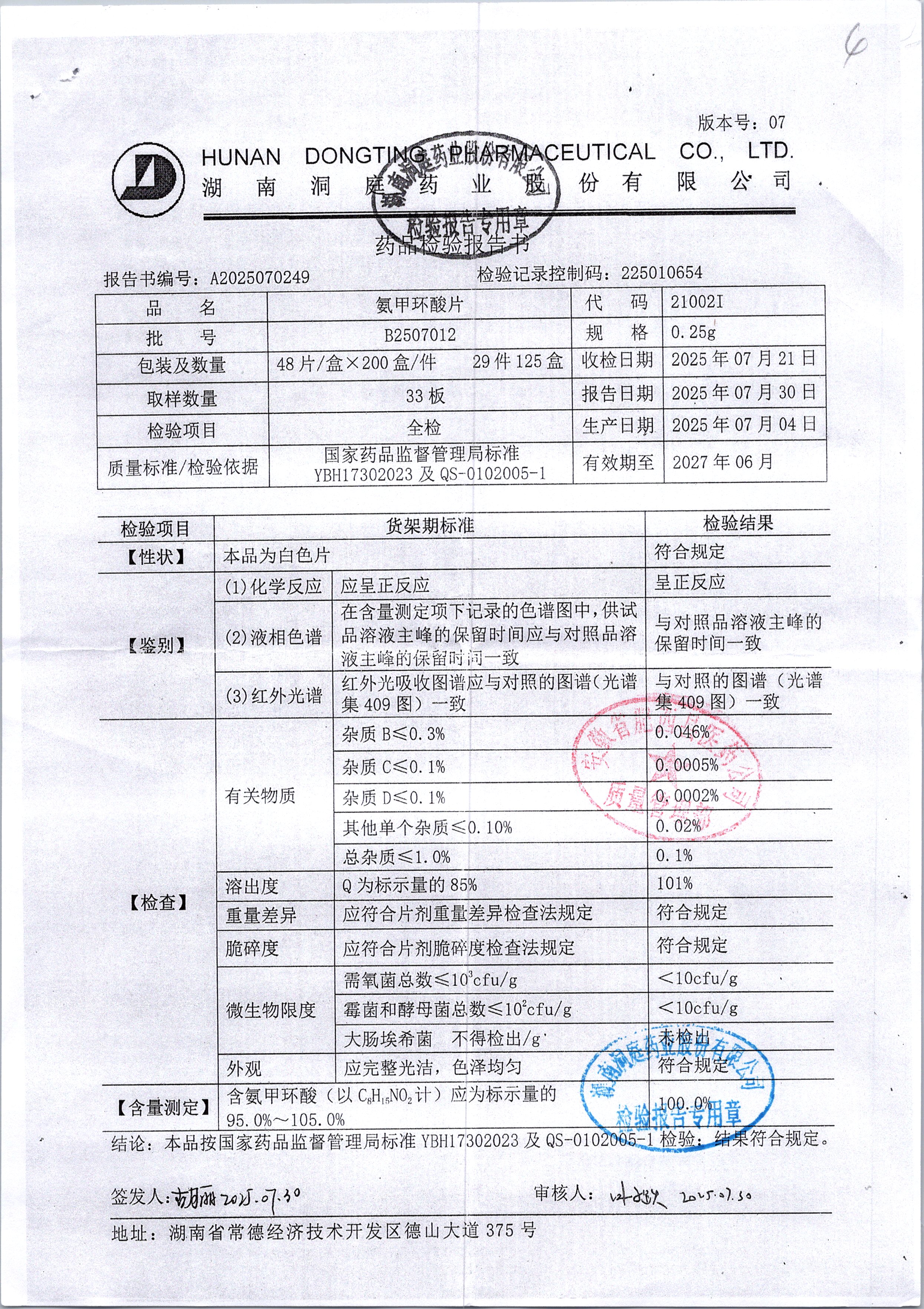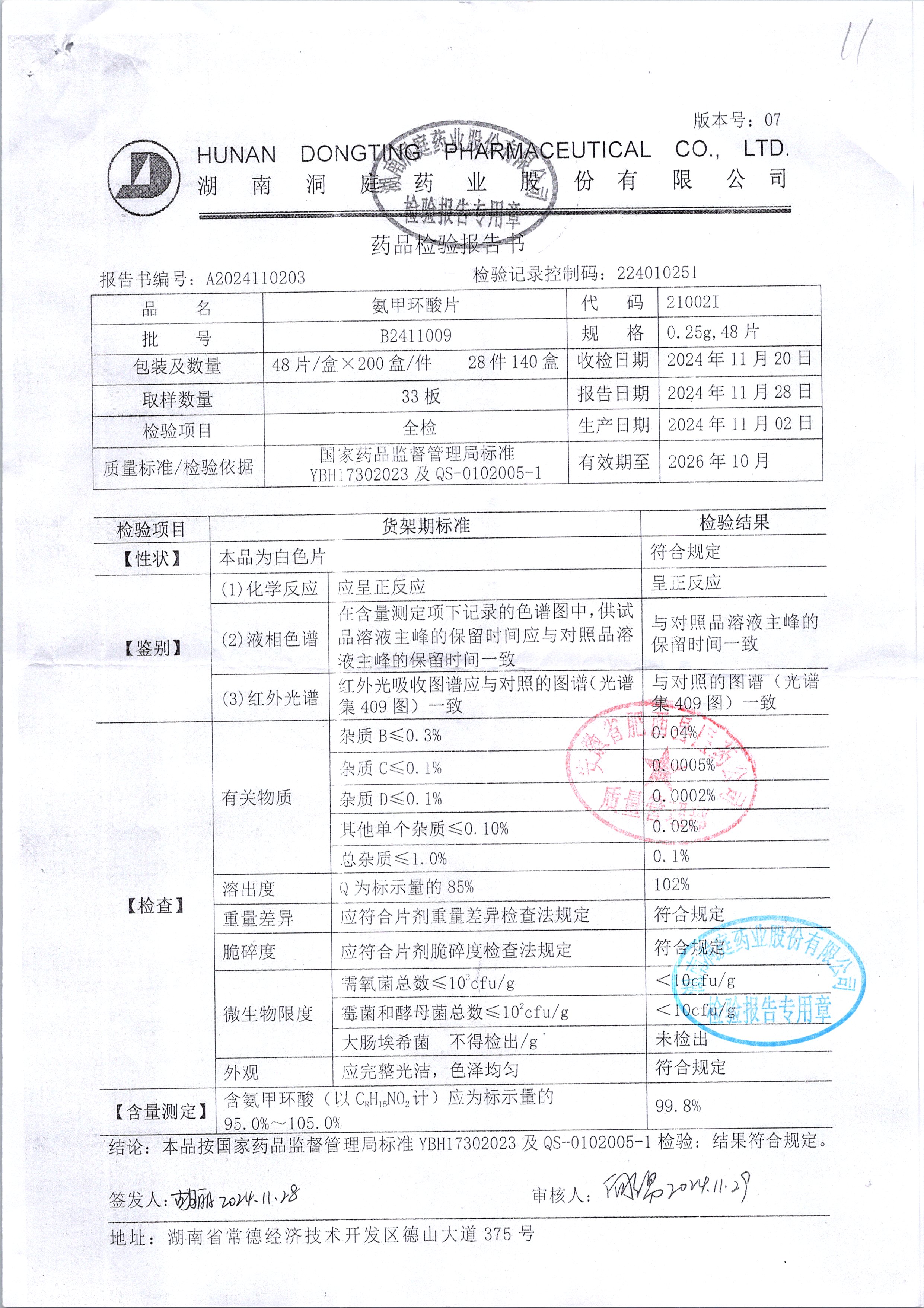 氨甲环酸片 | 0.25g*48片 | B2411009 | 查看详情 |