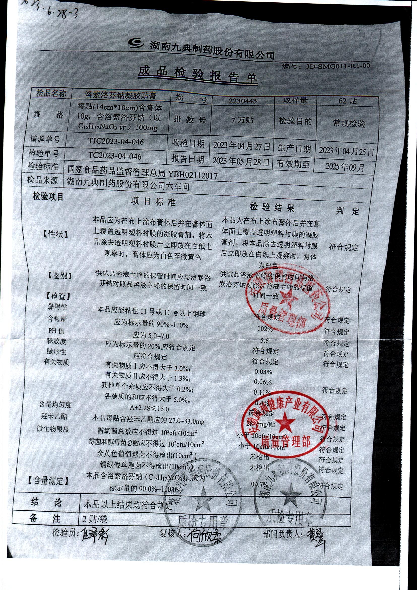 洛索洛芬钠凝胶贴膏 | 100mg*14cm*10cm | 2230443 | 查看详情 |
