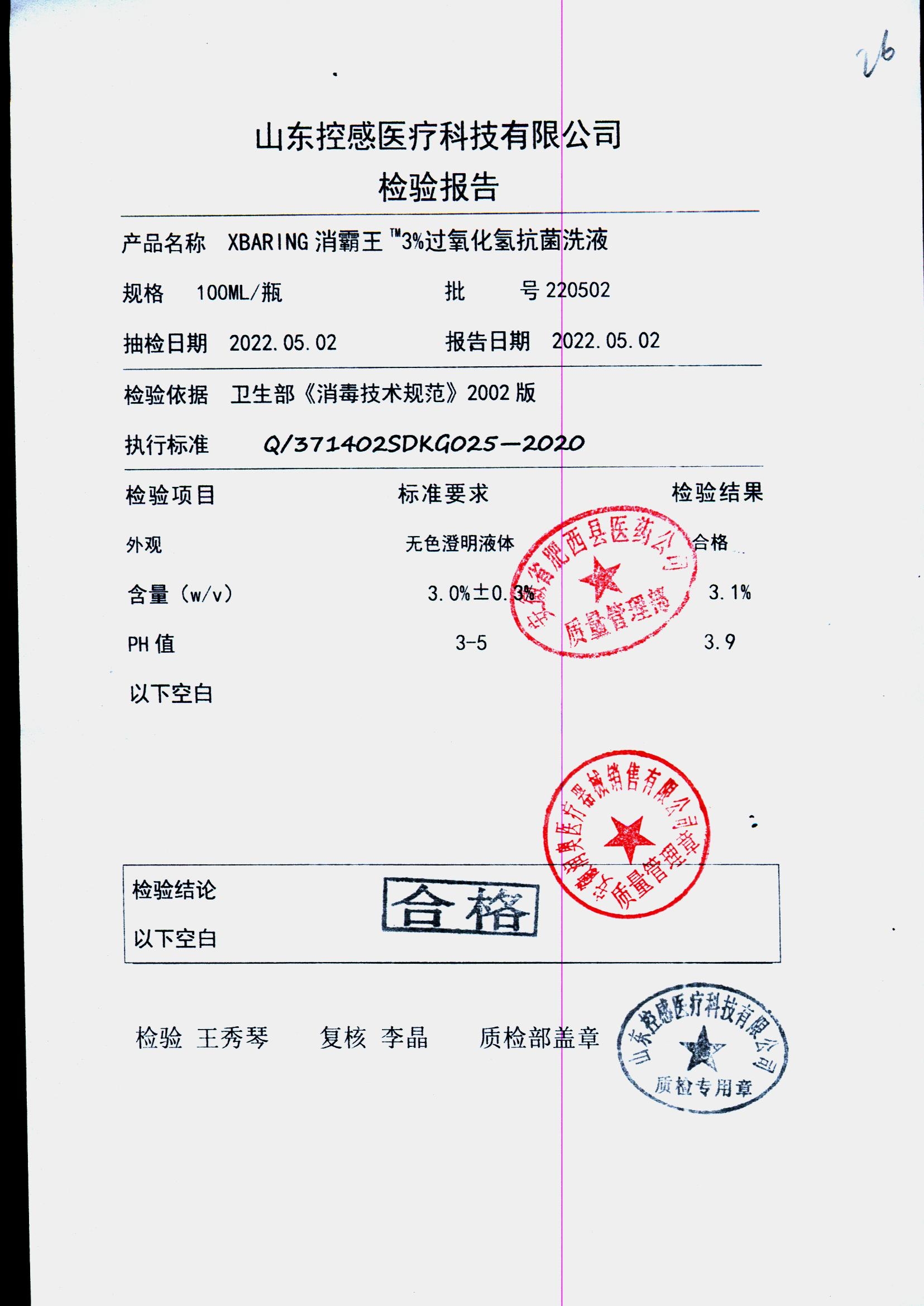 XBARING消霸王3%过氧化氢抗菌洗液 | 100ml | 220702 | 查看详情 |