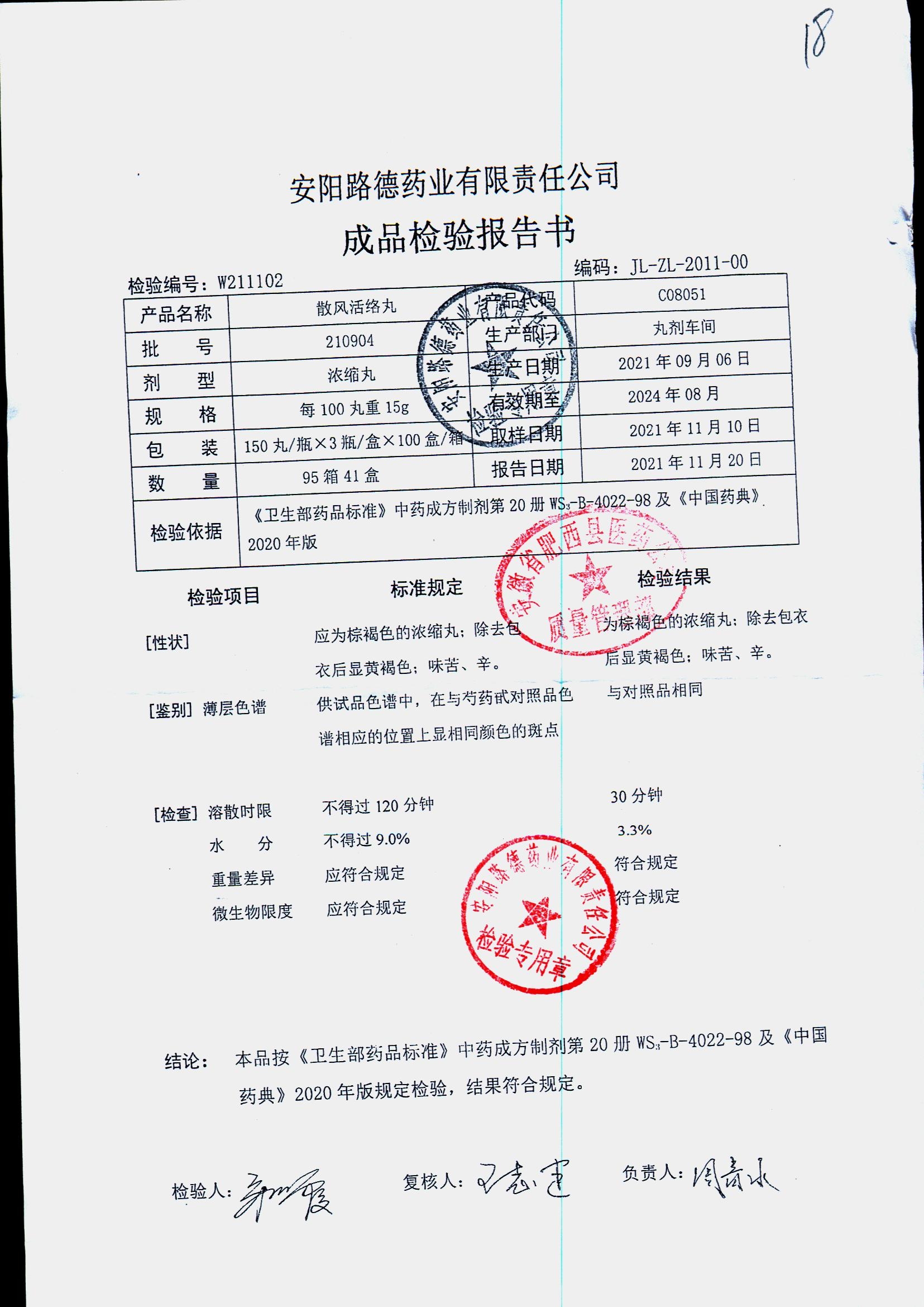 药检报告