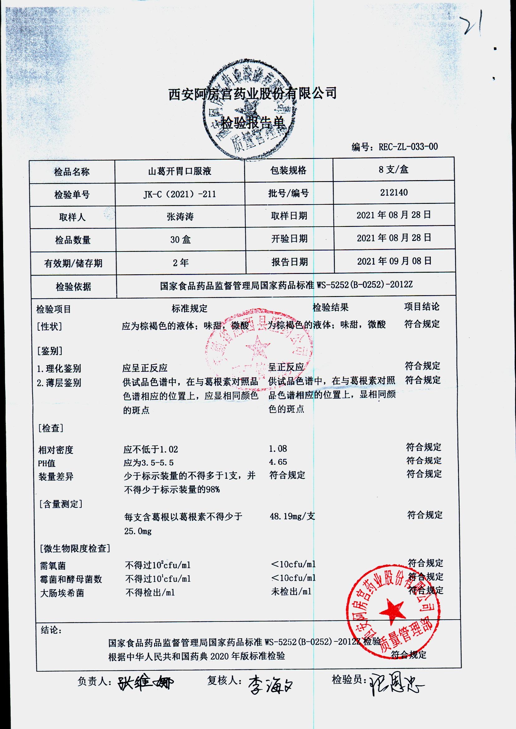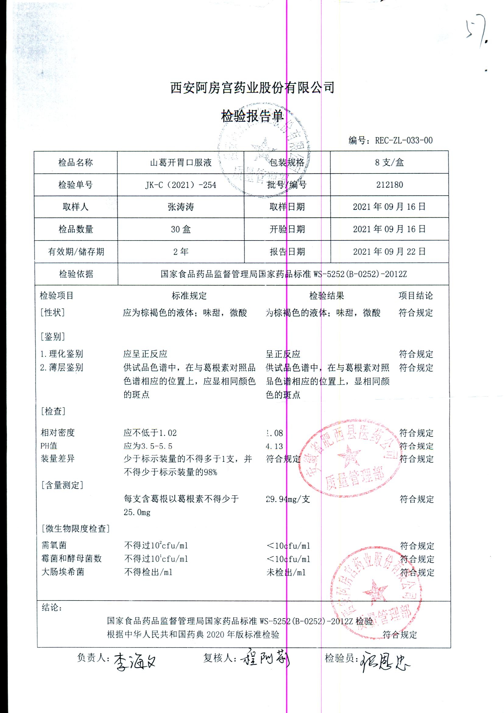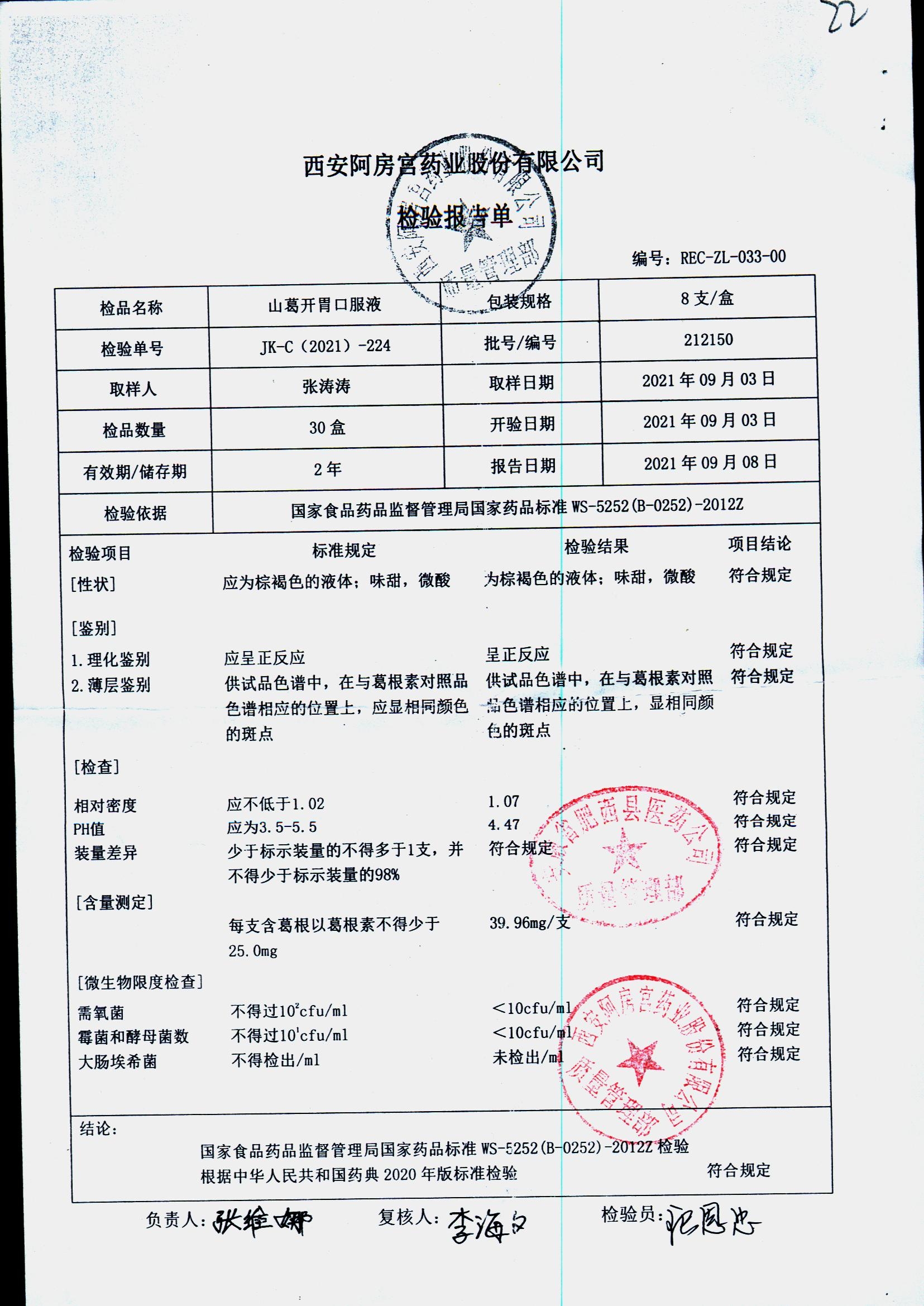 山葛开胃口服液 | 8支 | 222020 | 查看详情 |