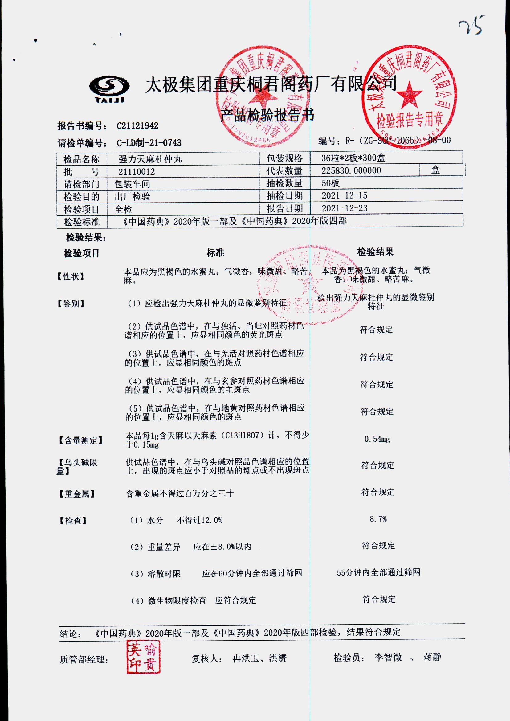 强力天麻杜仲丸 | 36粒*2板 | 21120013 | 查看详情 |